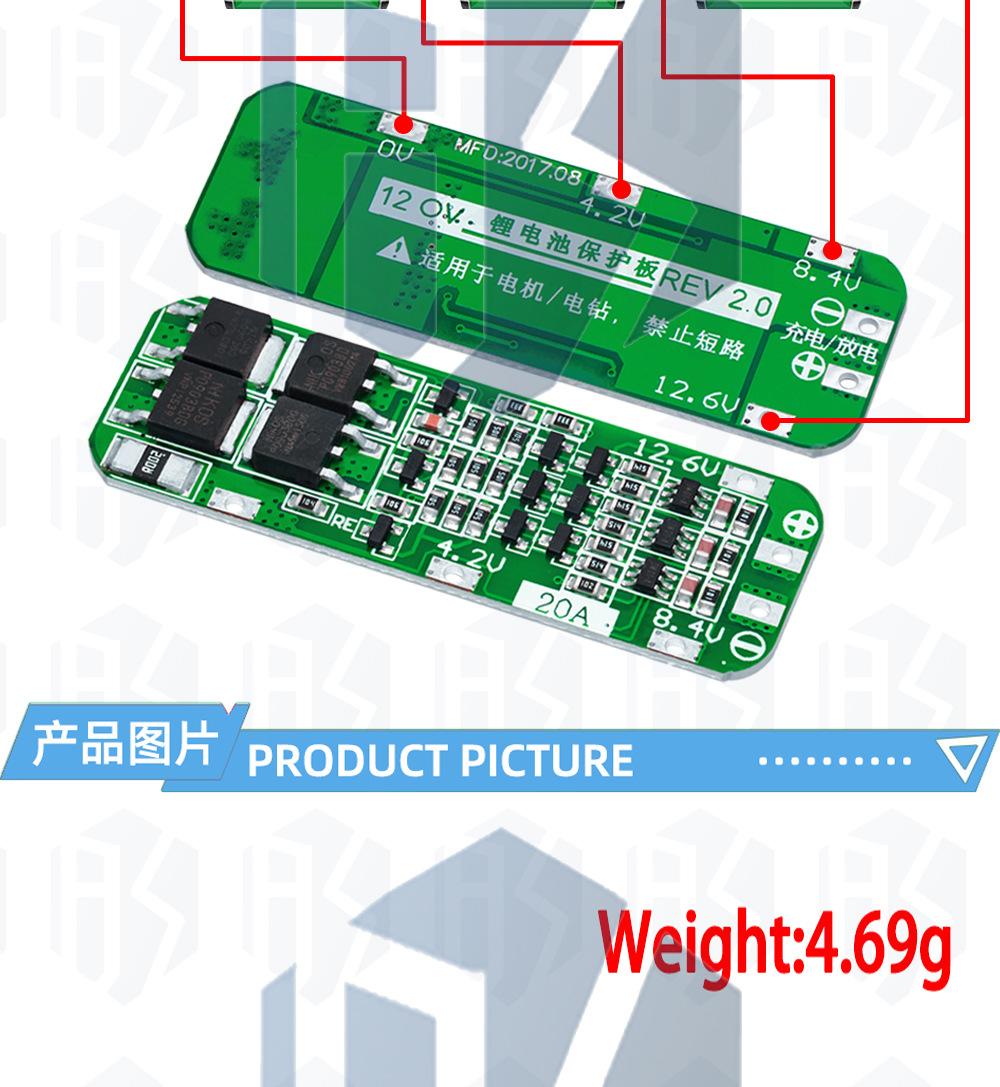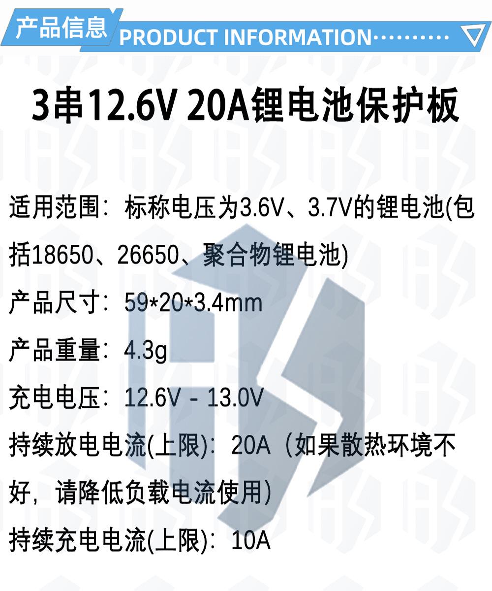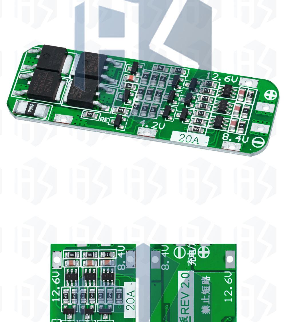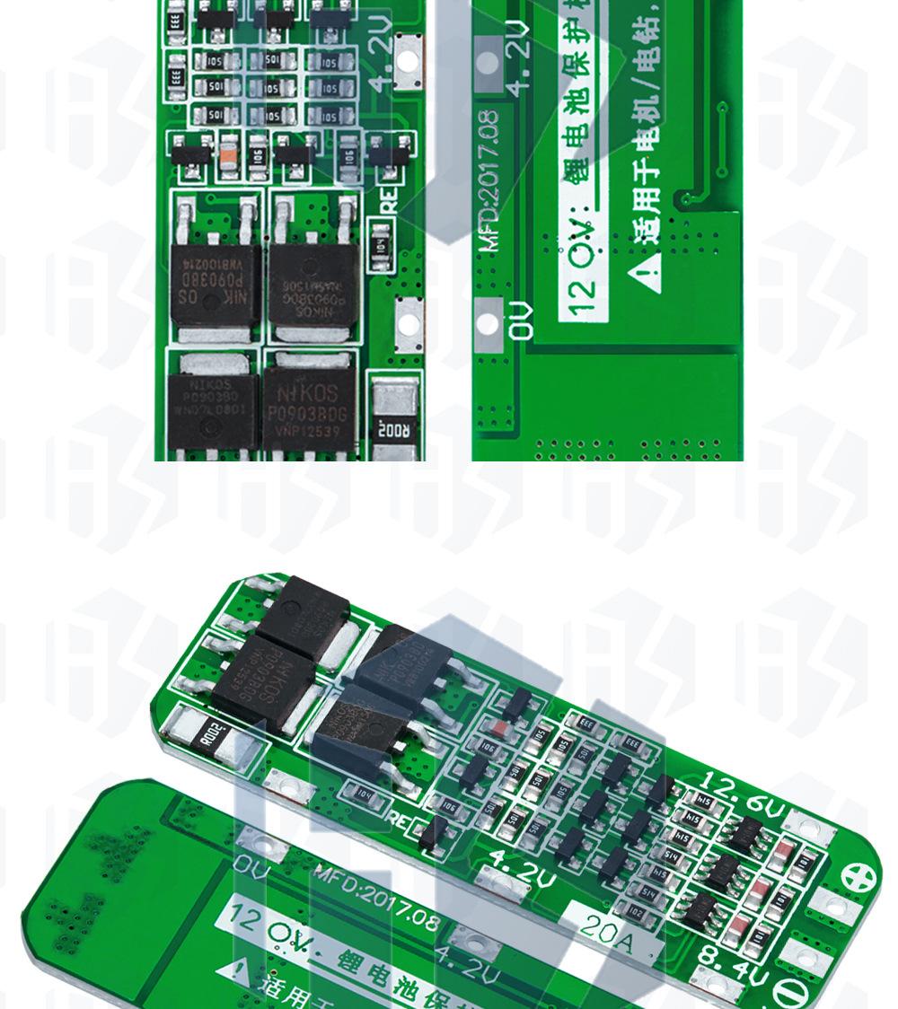 Placa de protección de carga de batería de litio 18650 de 3 cuerdas, 11,1 V, 12,6 V, que puede iniciar un taladro eléctrico con una corriente de 20 A.