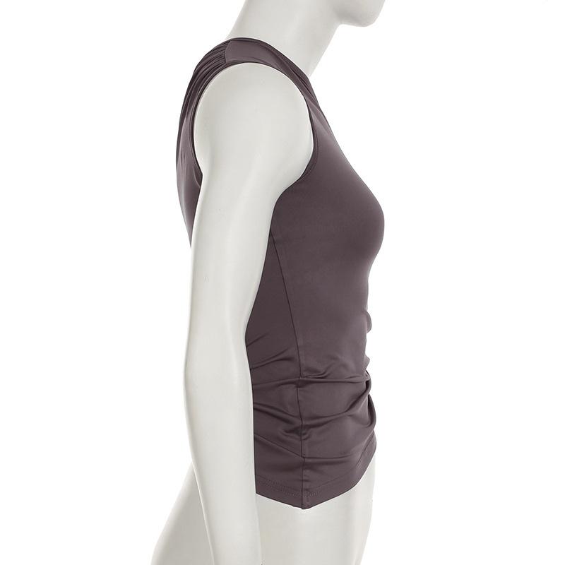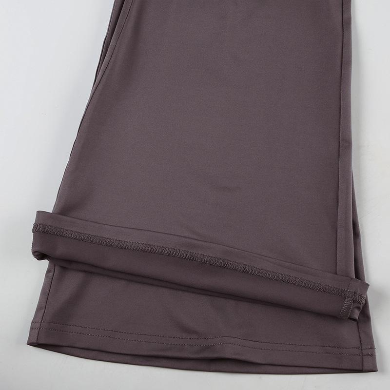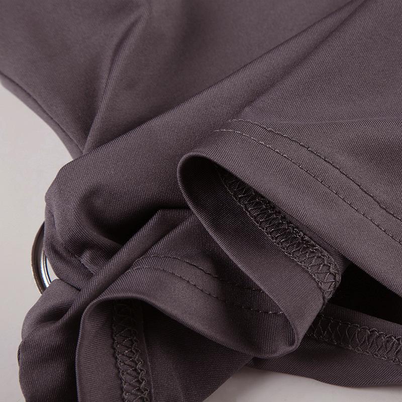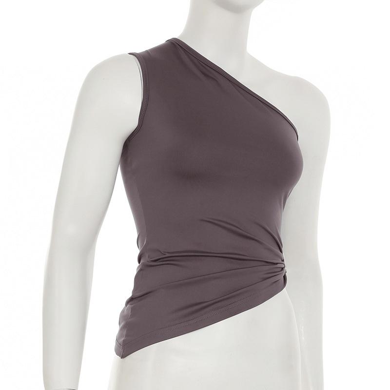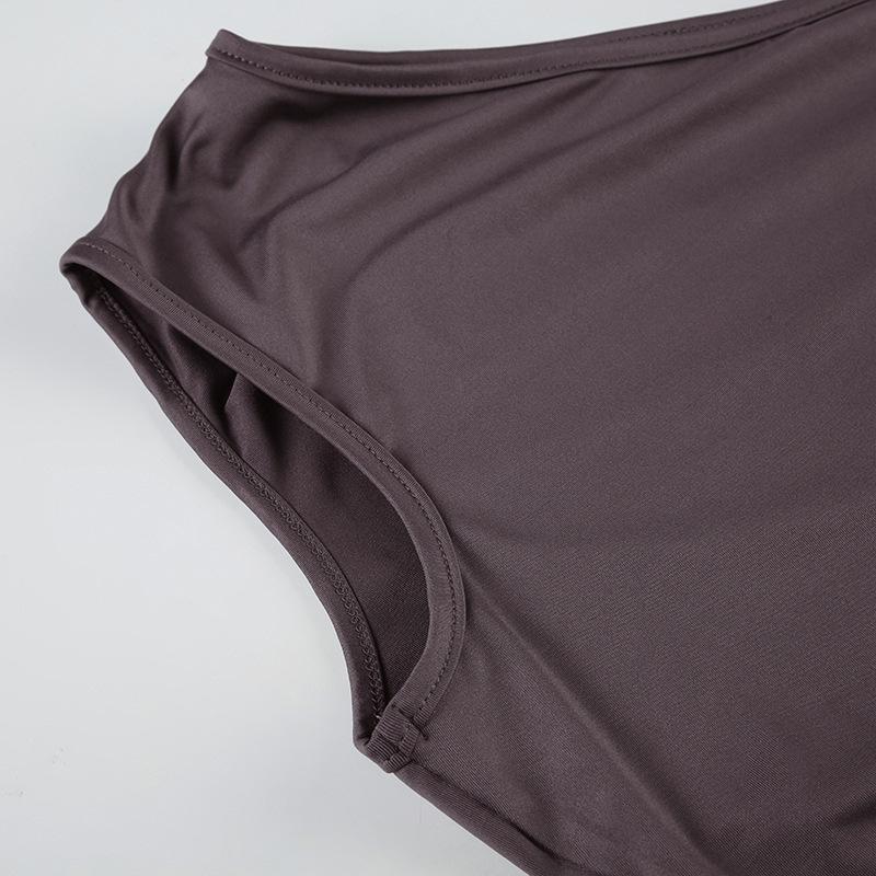 2025 Primavera/Verano Nuevo Estilo Casual Urbano Escote Asimétrico Un Hombro Anillo Metálico Chaleco Fruncido Set de Pantalones Largos Micro Acampanados