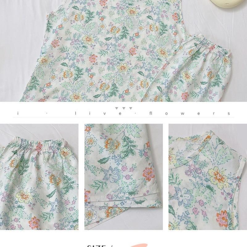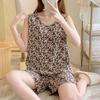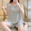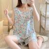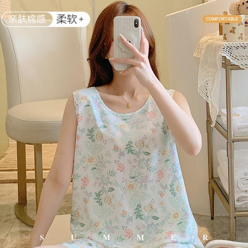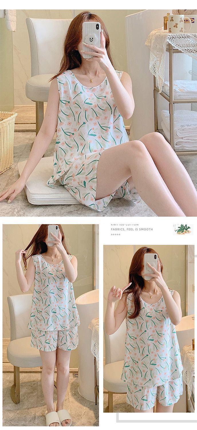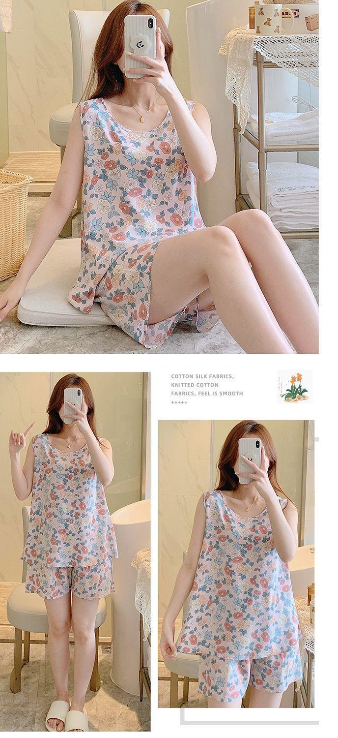 Pijamas de Algodón Seda de Verano para Mujer Chaleco de Verano sin Mangas Conjunto de Dos Piezas Algodón Seda Algodón Artificial para Mujer Talla Grande Traje de Verano
