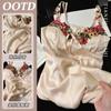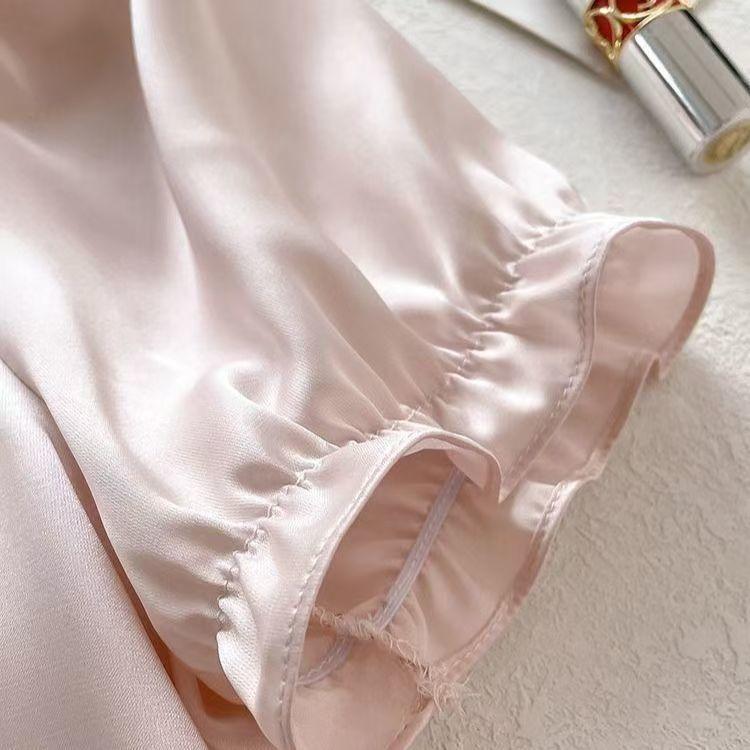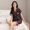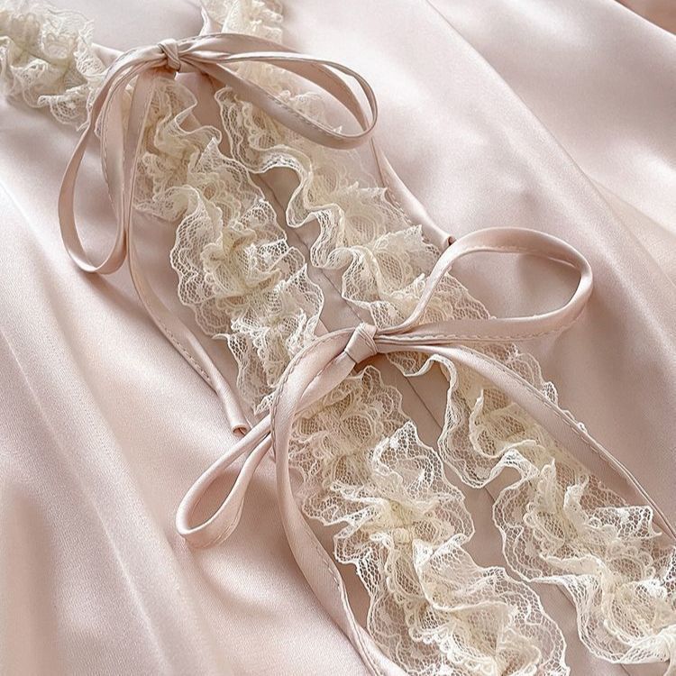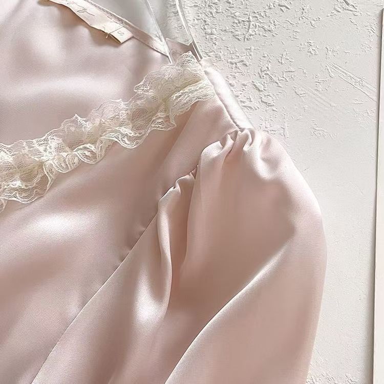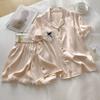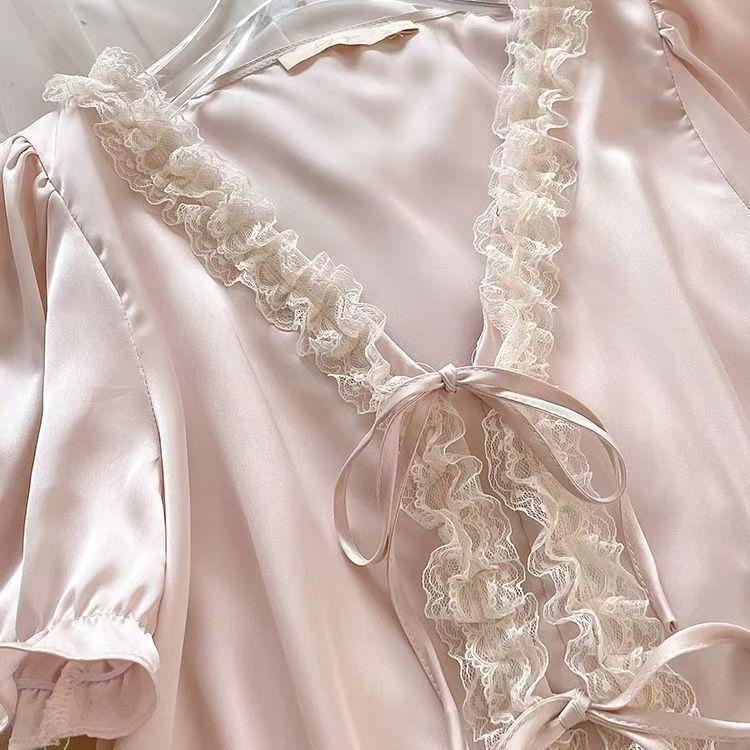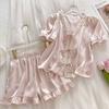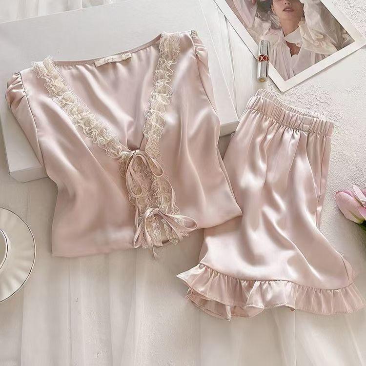 2025 Pijama de Seda de Hielo de Deseo Puro para Niñas Verano Cuello en V Encaje Suelto Manga Corta Set de Ropa para el Hogar de Mujer