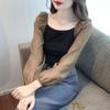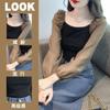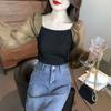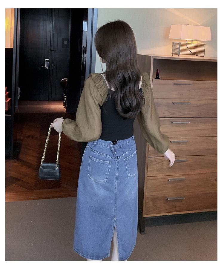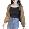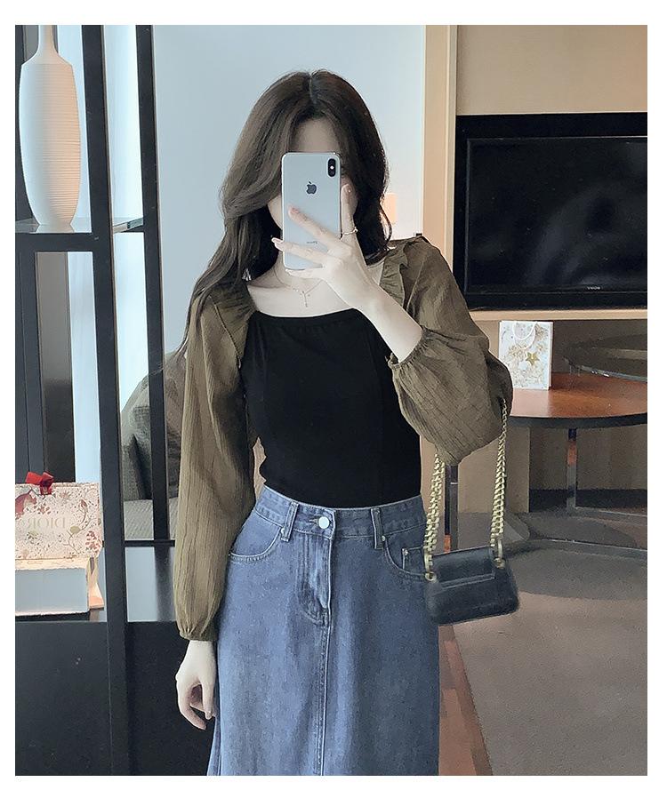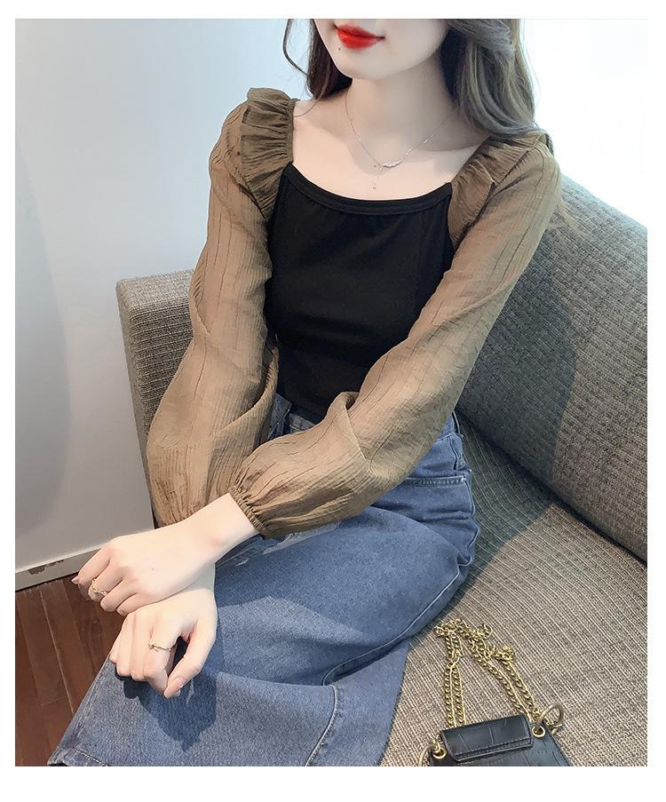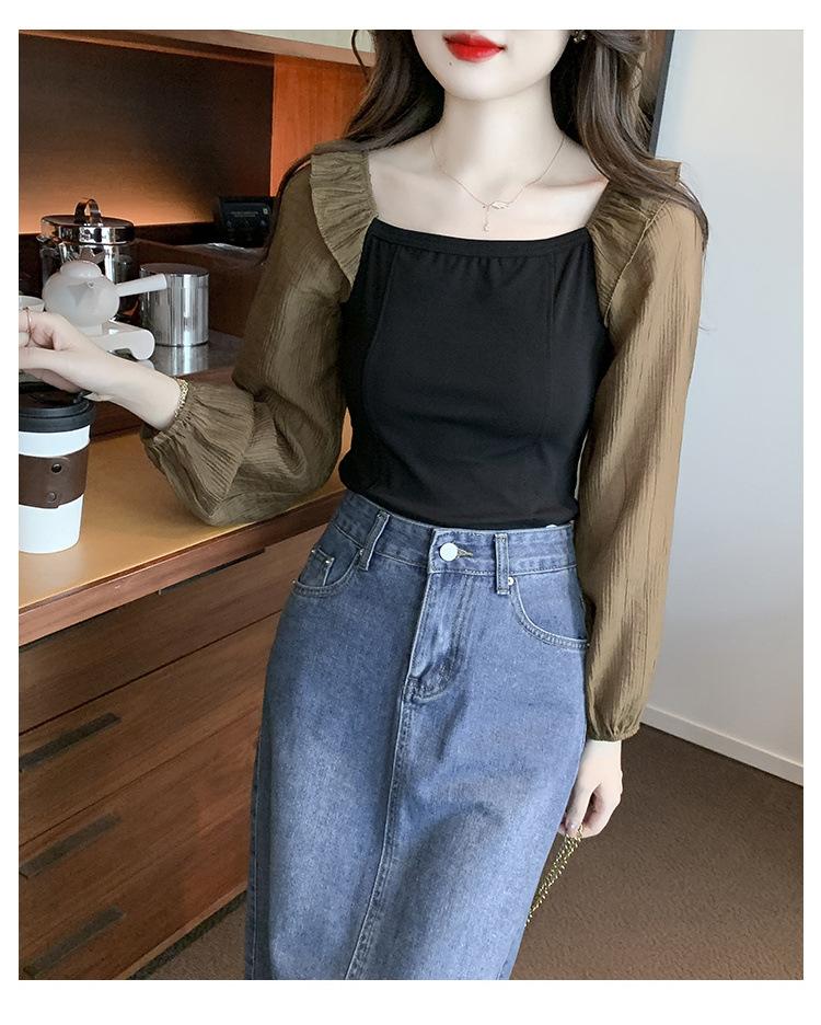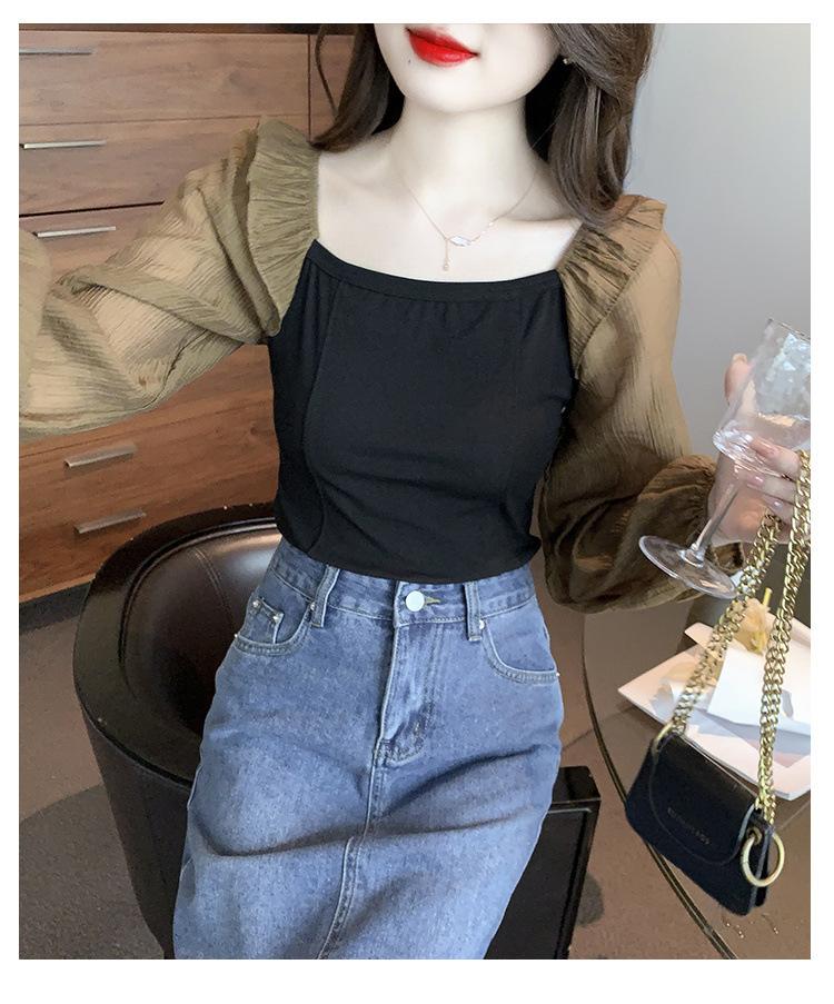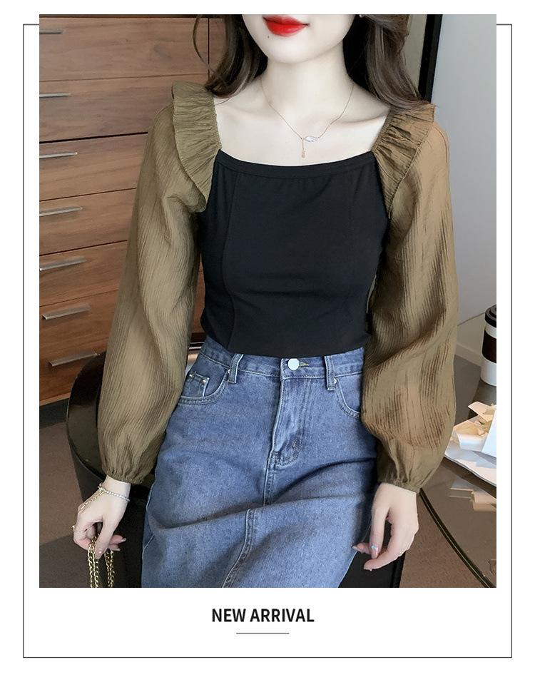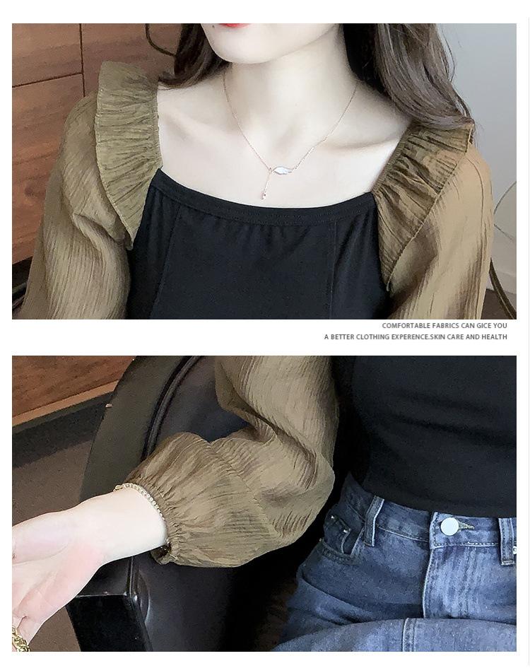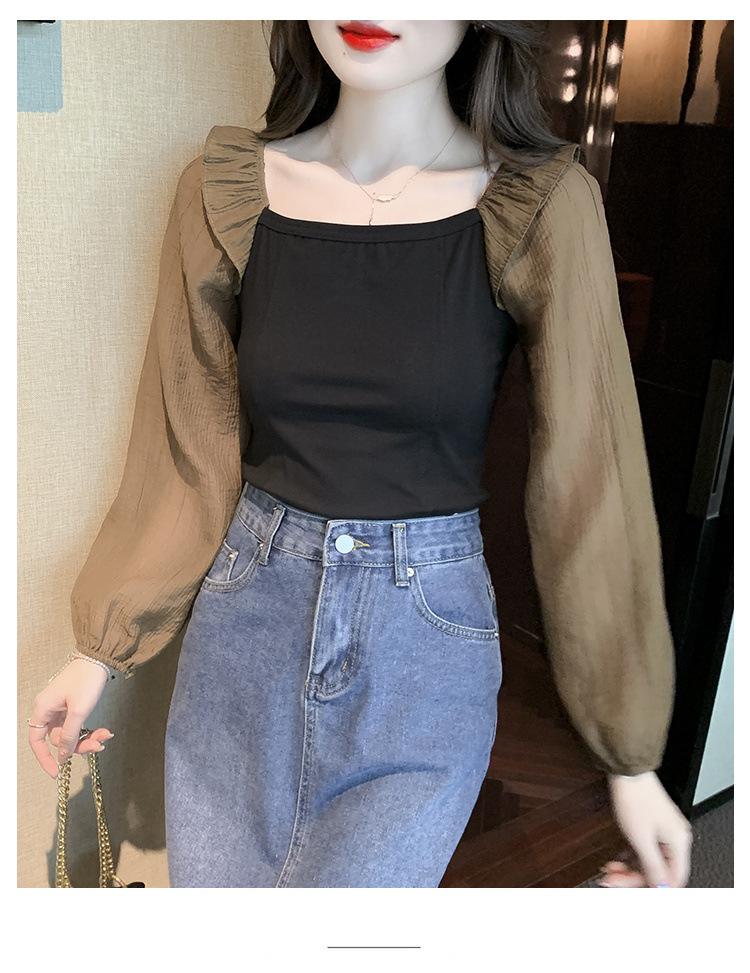 Playera de Manga Larga con Volantes y Cuello Cuadrado Francés para Mujer 2025 Estilo Otoñal Diseño de Temperamento Nicho Chic Top Corto