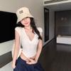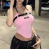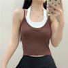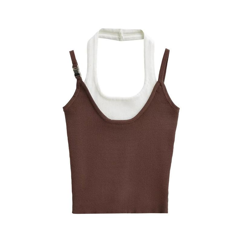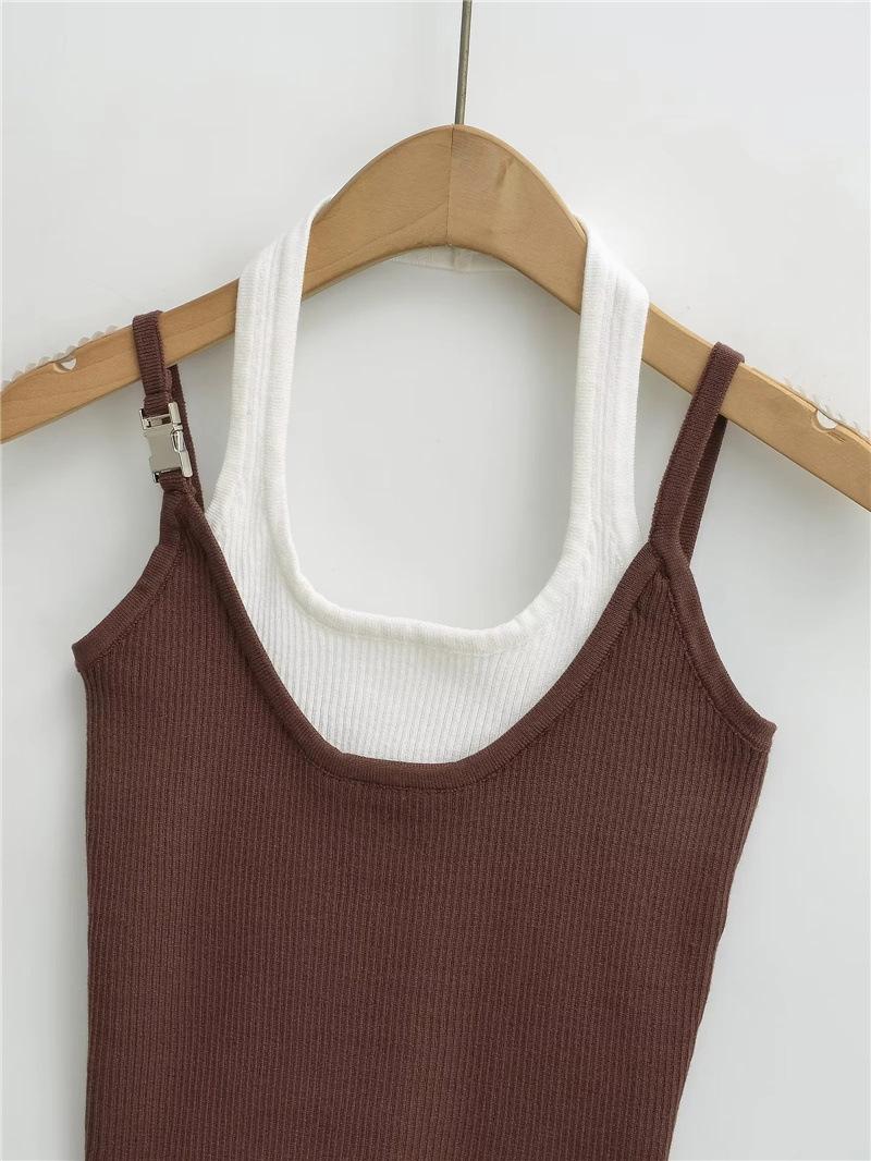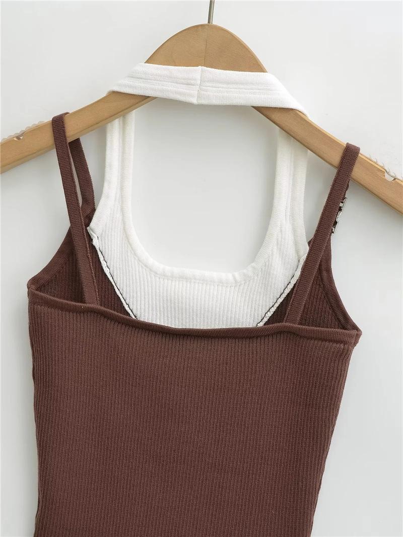 Moda Americana Combinación de Colores Cuello Colgante Sin Mangas Top de Punto Camisola Chaleco de Verano Nuevo Ajustado Corto Falso de Dos Piezas para Mujer