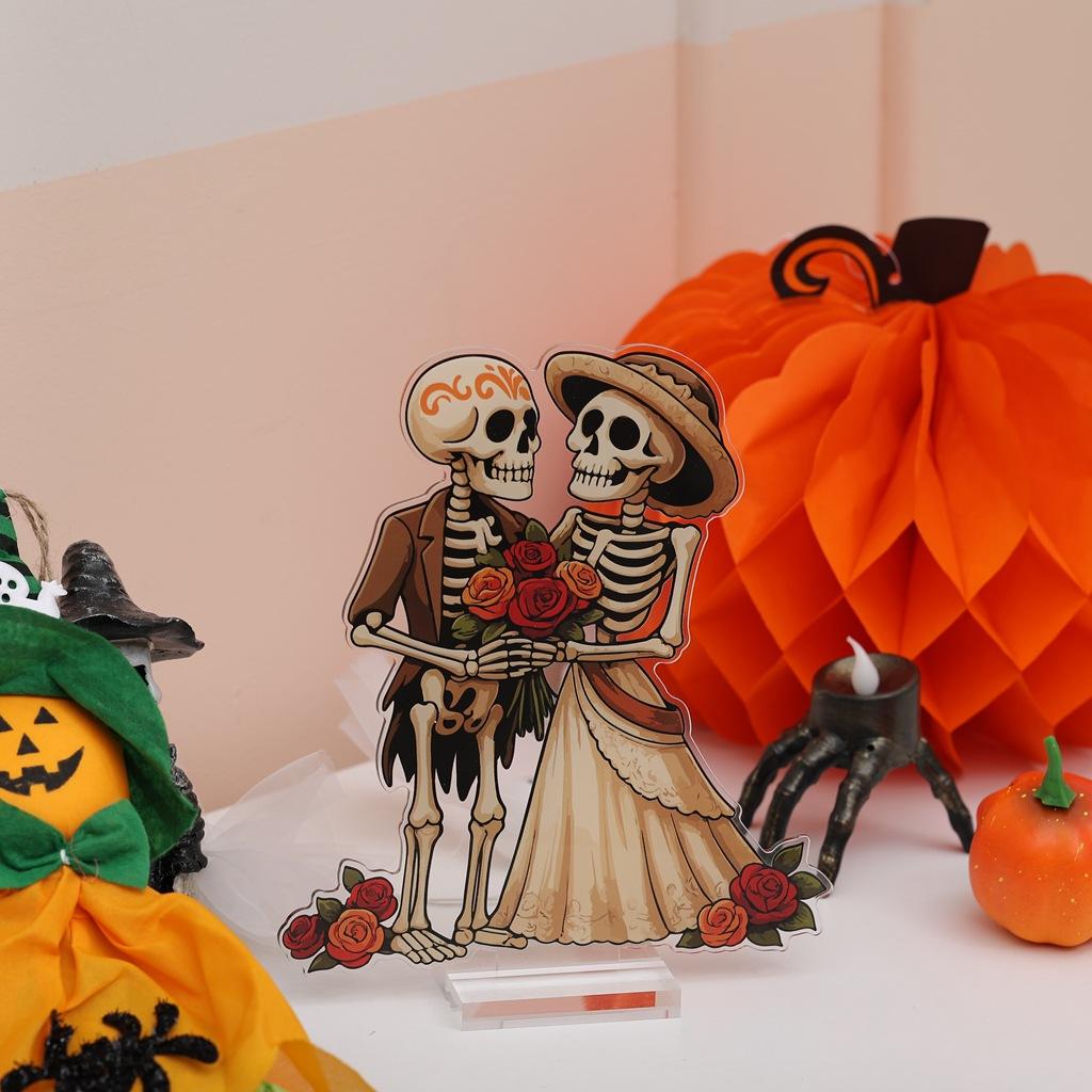 Decoración acrílica en forma de pareja de esqueletos, estilo Halloween Día de Muertos para crear un ambiente festivo