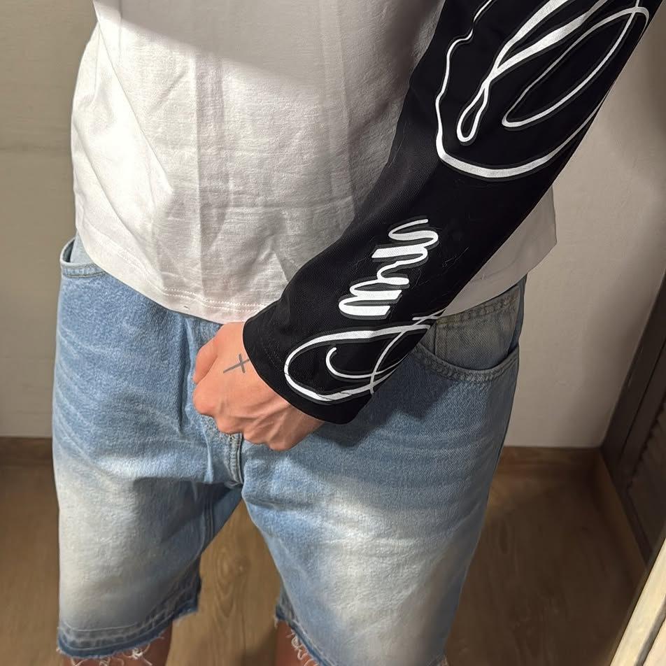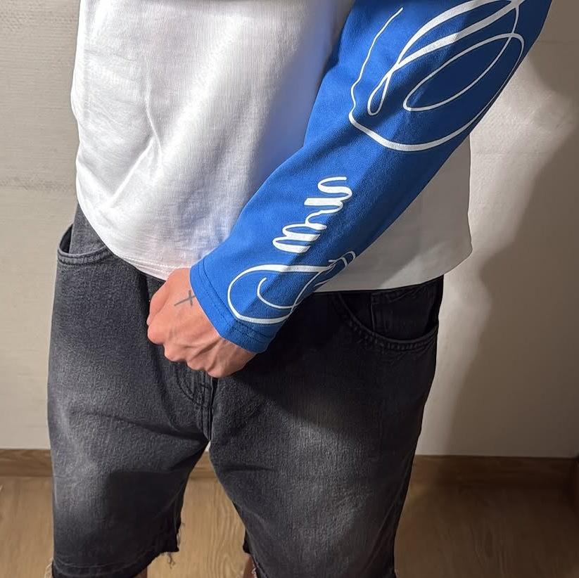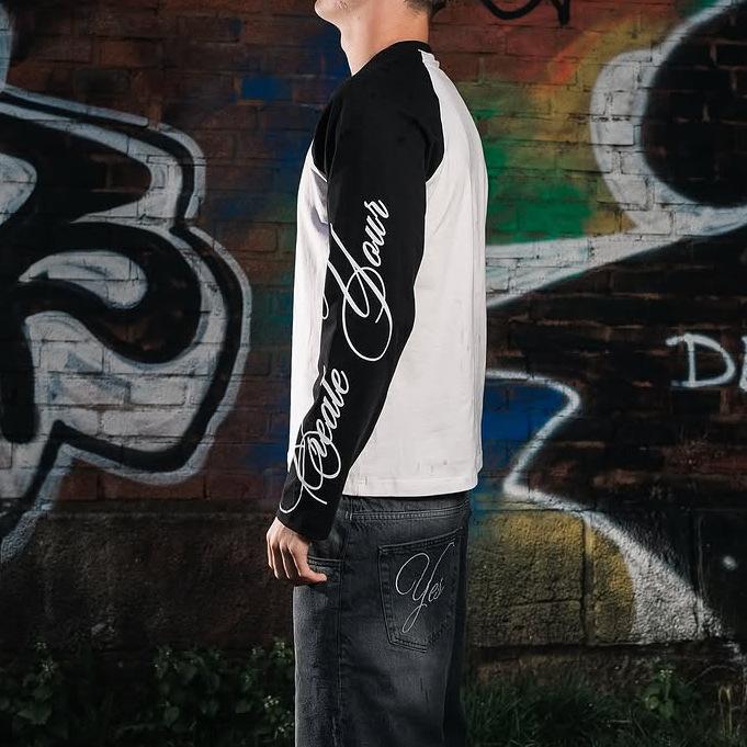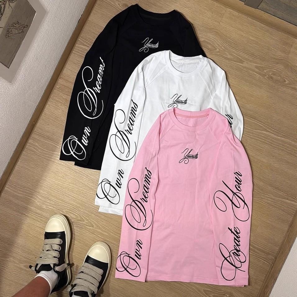 Camiseta de Otoño de Manga Larga con Cuello Americano, Estilo de Personalidad con Estampado de Letras, Holgada Casual con Bloque de Color, Venta al por Mayor