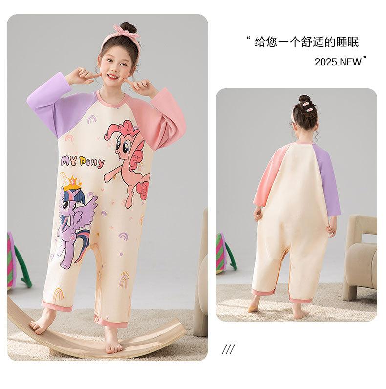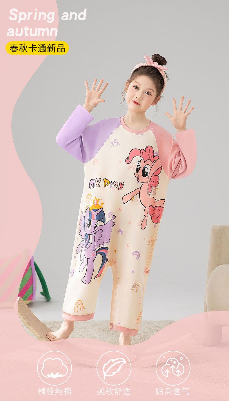 Pijama Mameluco para Niña Algodón Puro Manga Larga Primavera y Otoño Estilo Princesa de Dibujos Animados Bolsa de Dormir Anti-Patadas Protector de Vientre Ropa para el Hogar