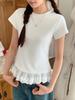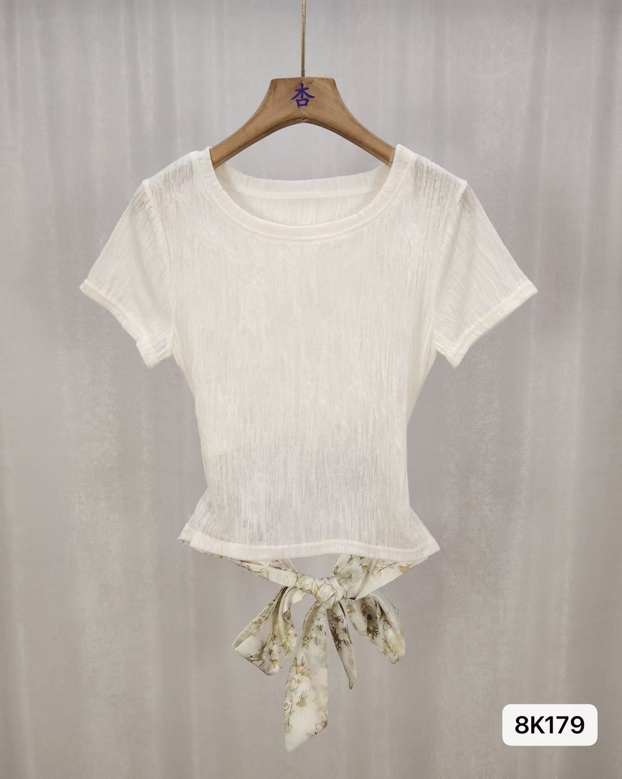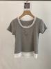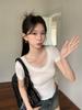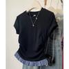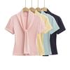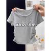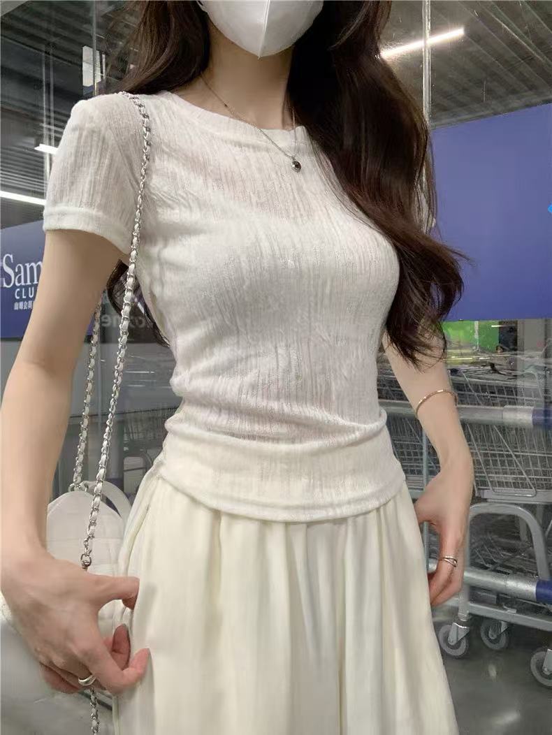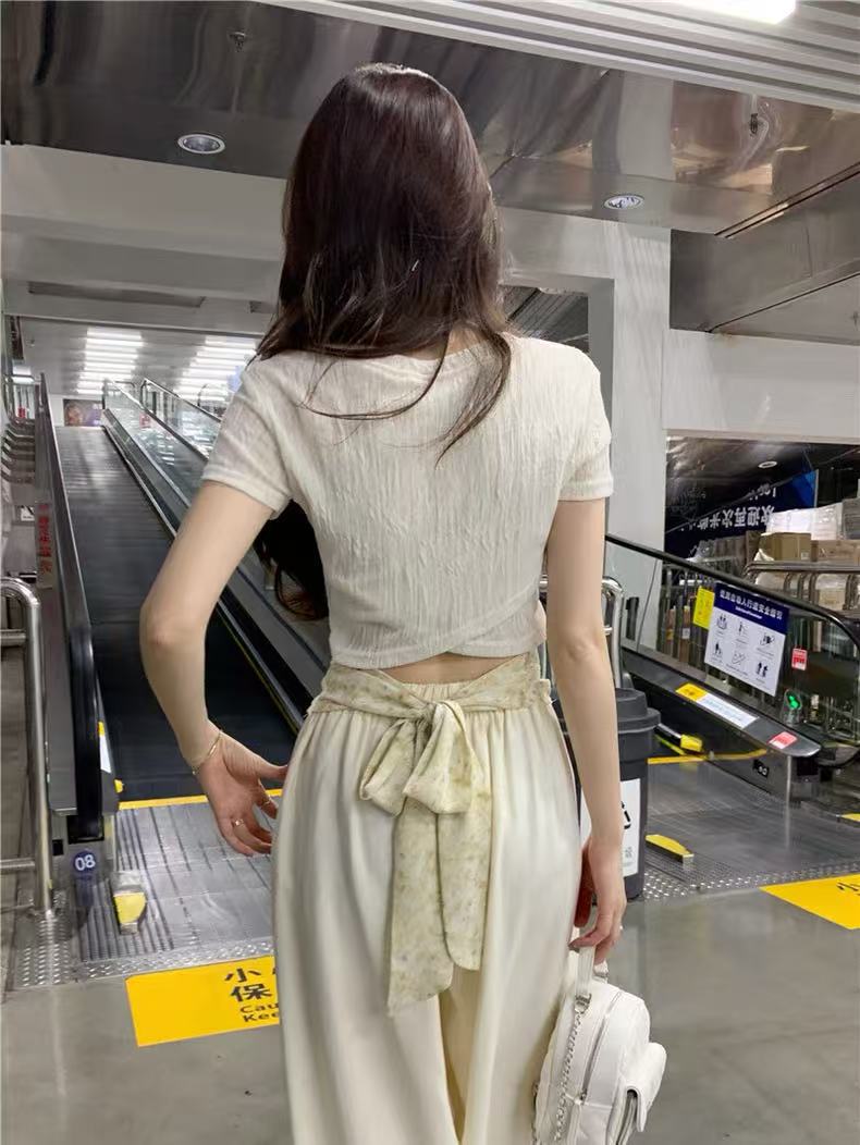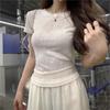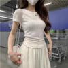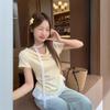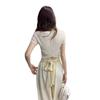 Camiseta de Manga Corta Sexy de Gama Alta Estilo Coreano con Aberturas y Cordones para Mujer Verano Temperamento Chic Cintura Entallada Adelgazante Top Corto