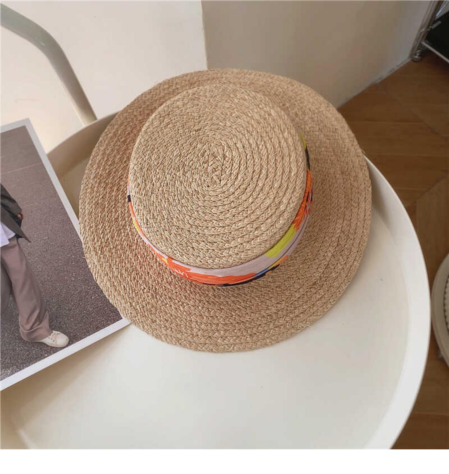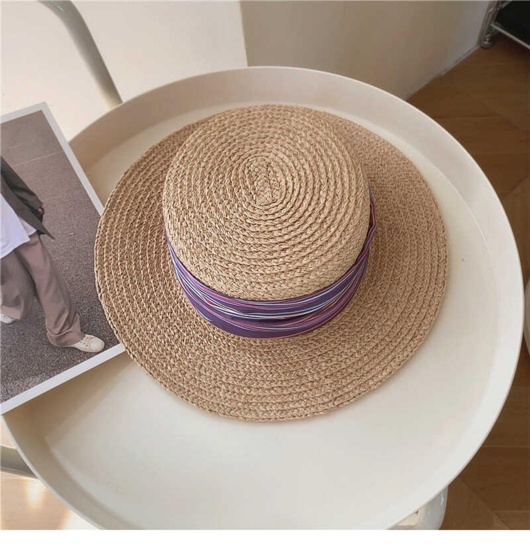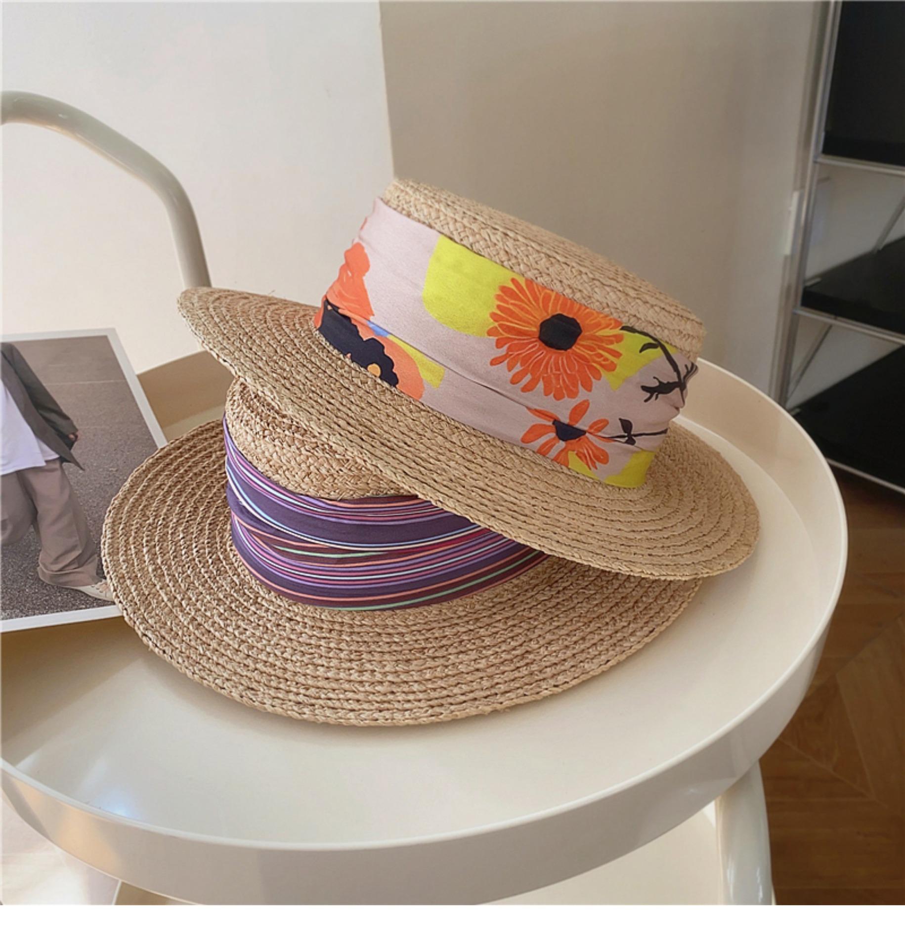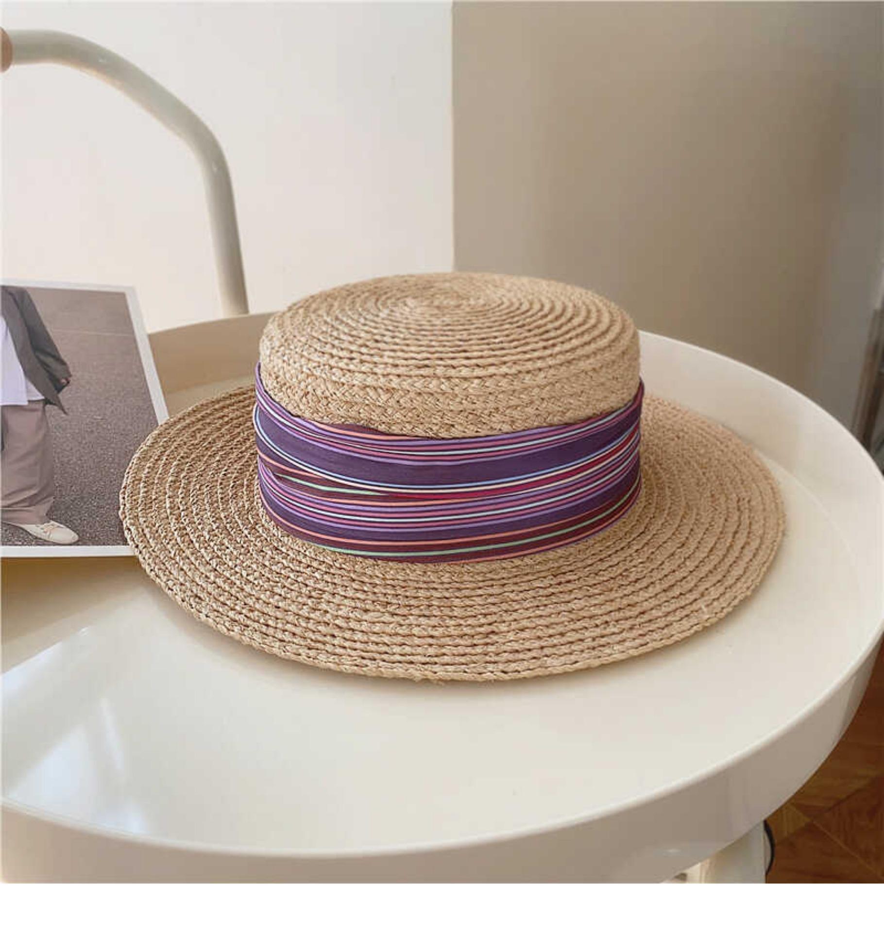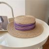 Sombrero de copa de estilo francés Sombrero de paja retro Sombrero de sol de verano para mujer para salir a la playa Sombrero de sol Sombrero de playa de paja casual de copa plana