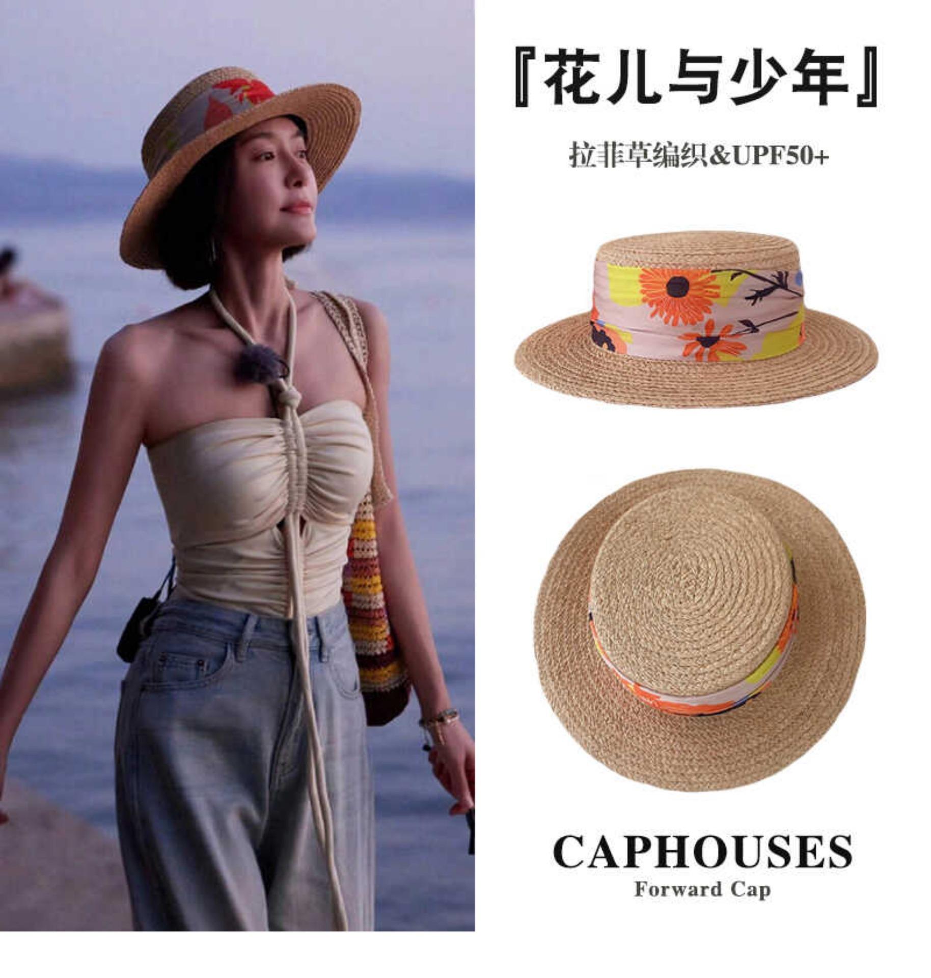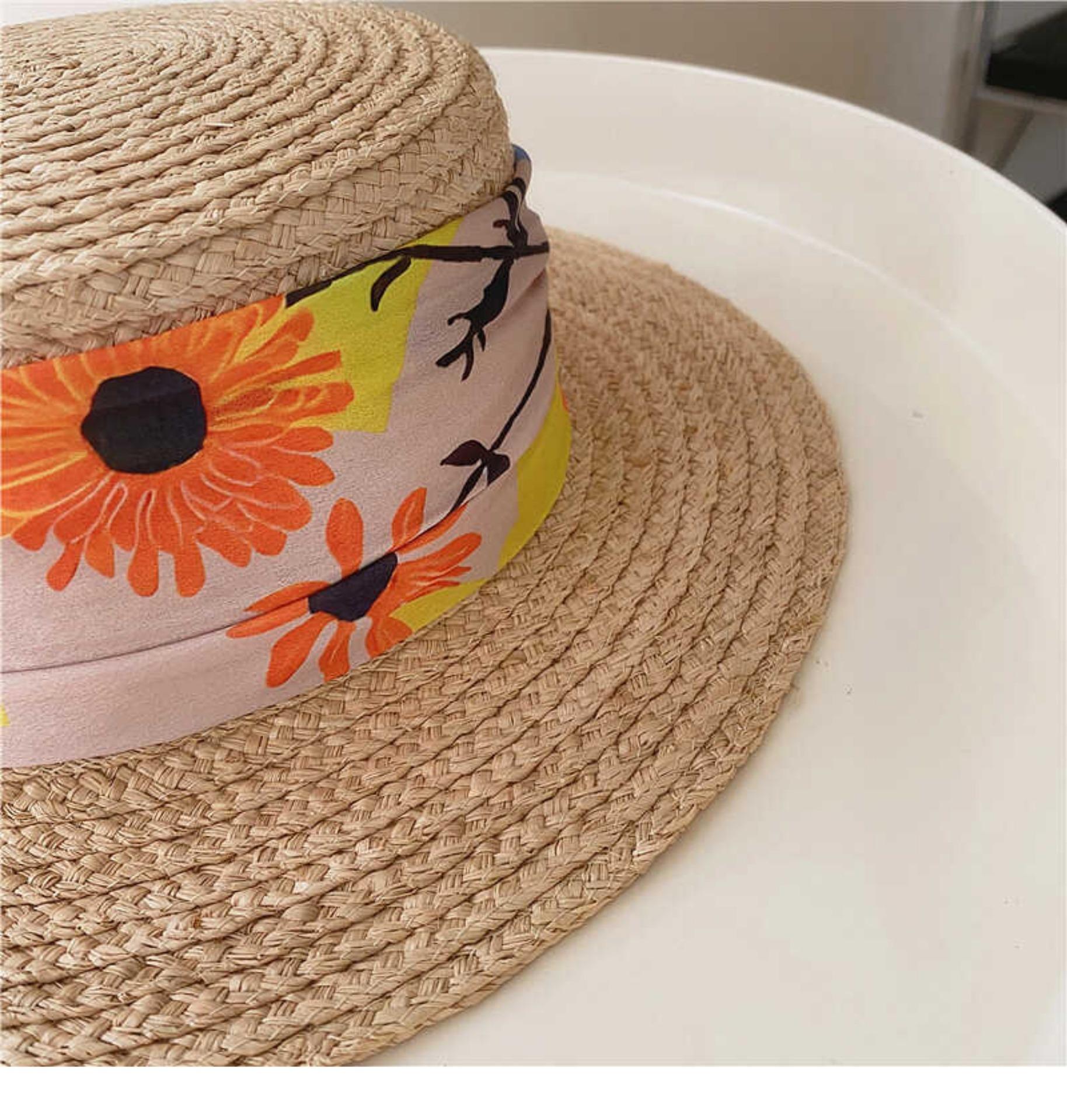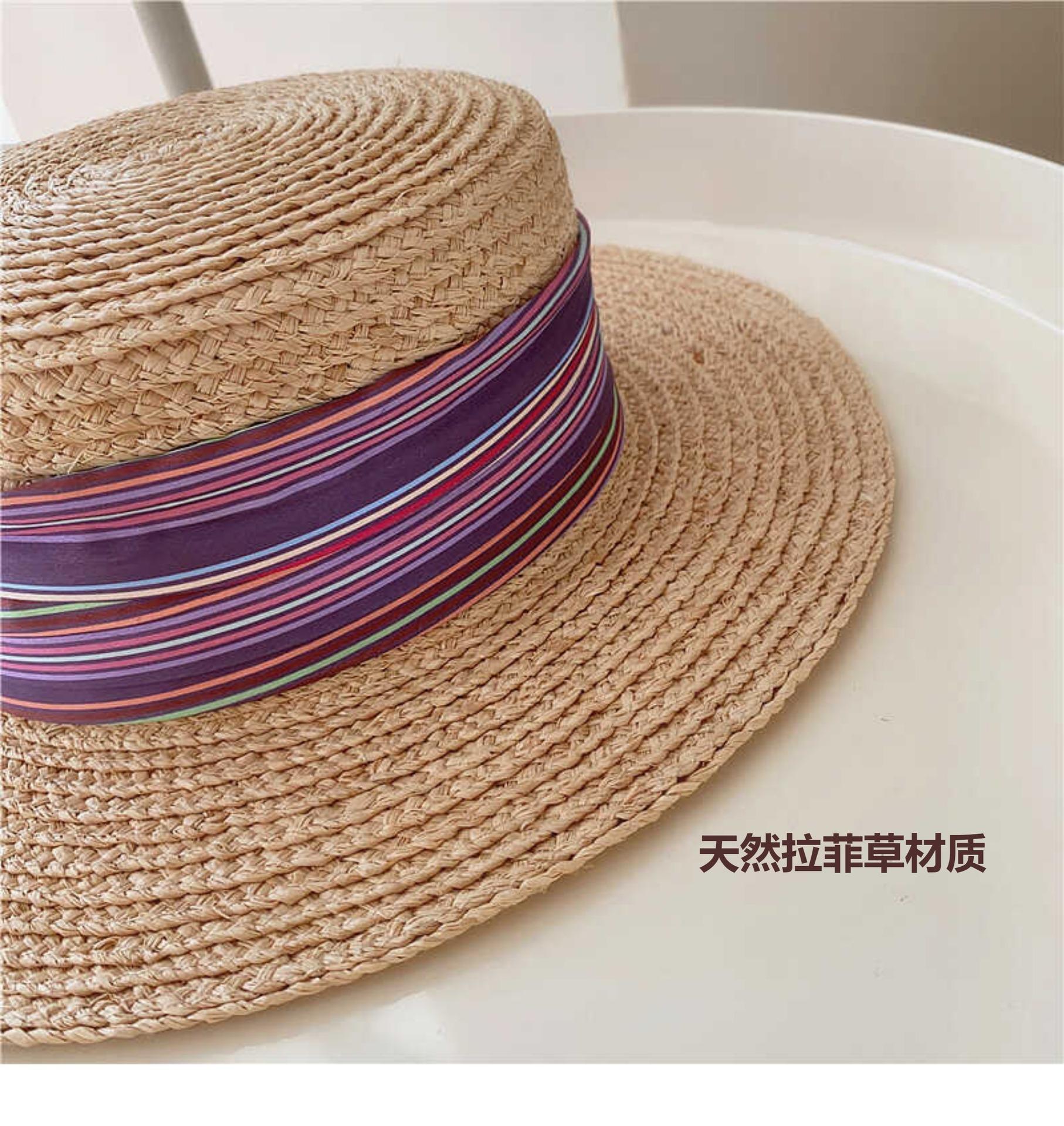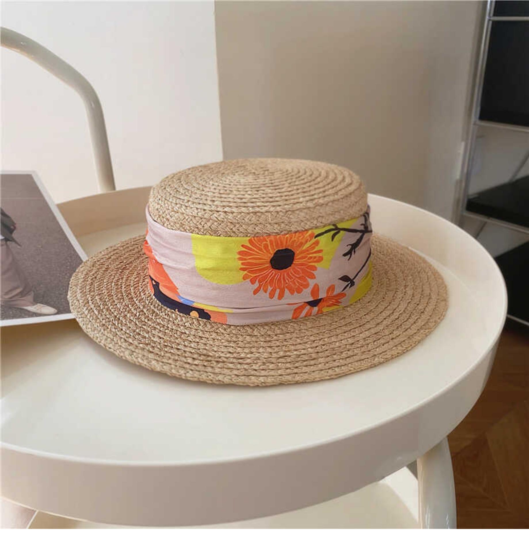 Sombrero de copa de estilo francés Sombrero de paja retro Sombrero de sol de verano para mujer para salir a la playa Sombrero de sol Sombrero de playa de paja casual de copa plana