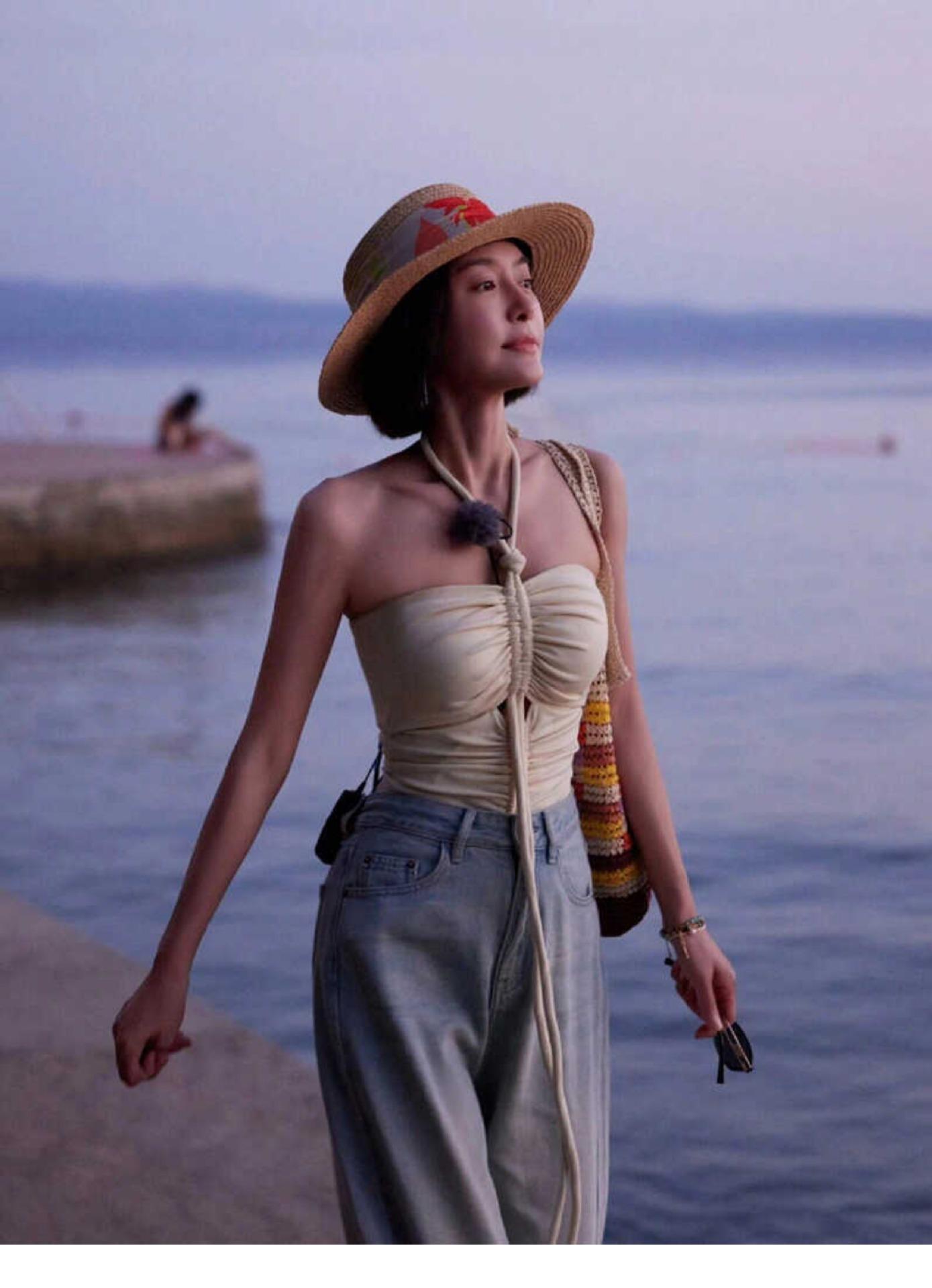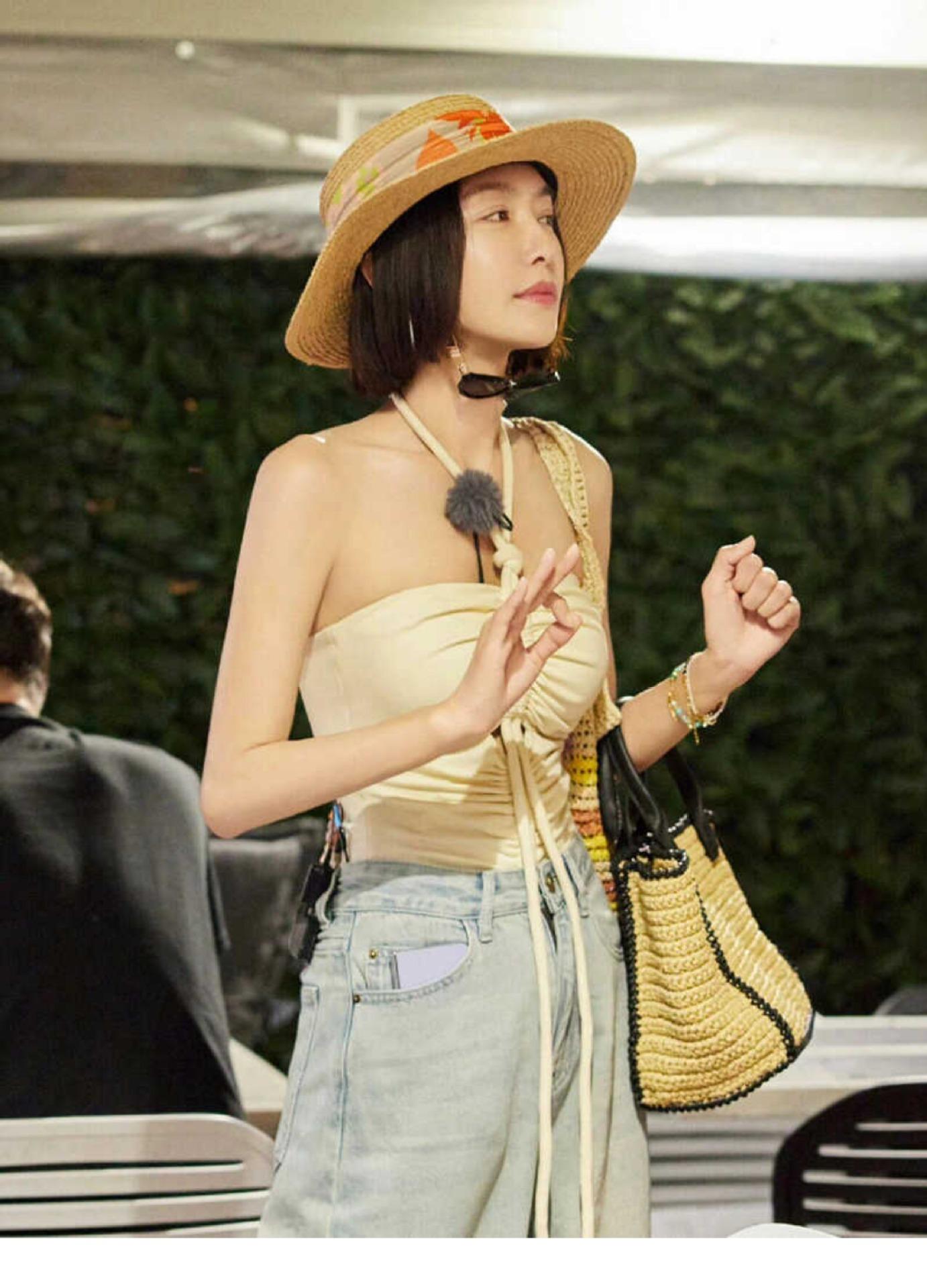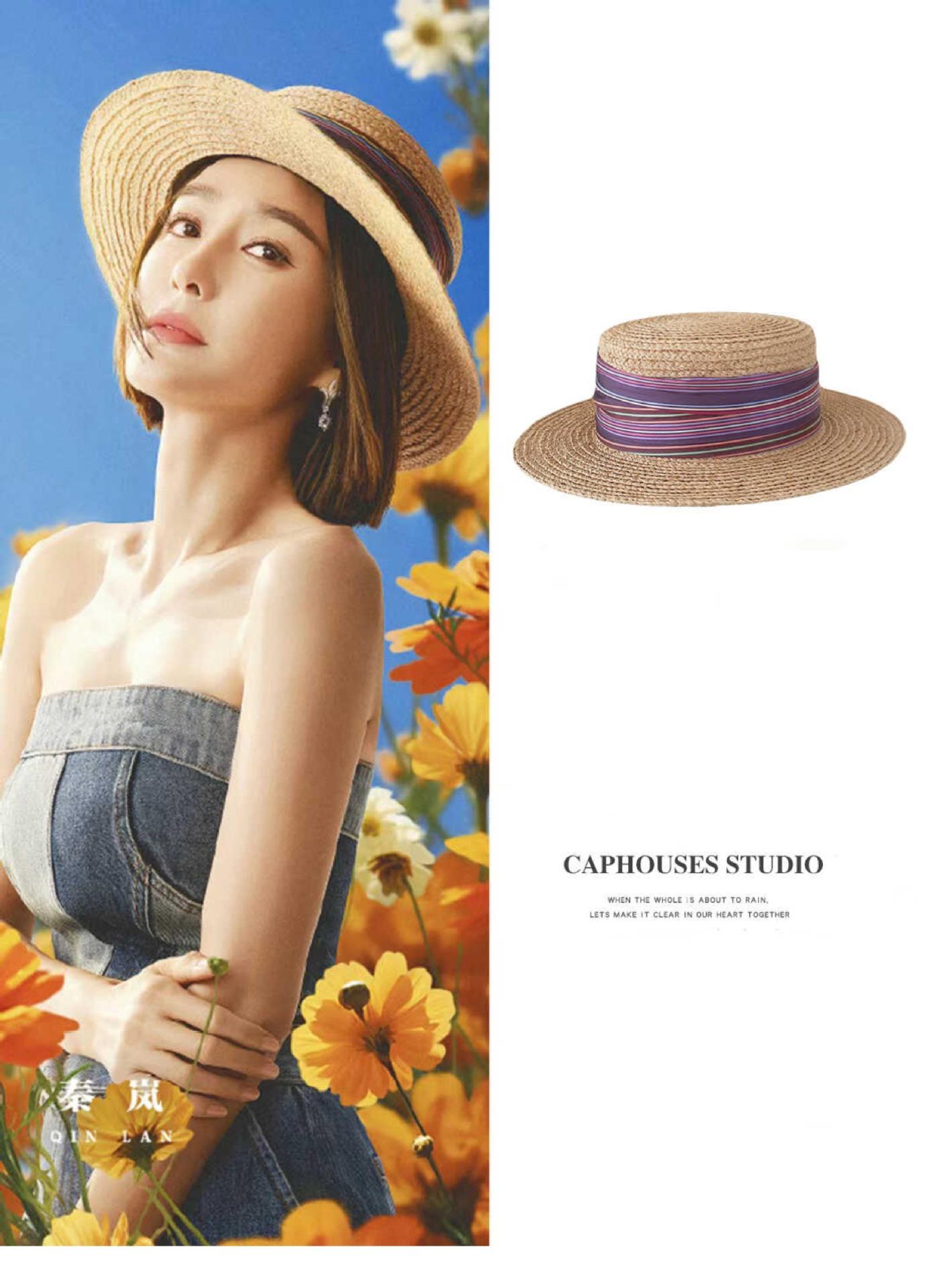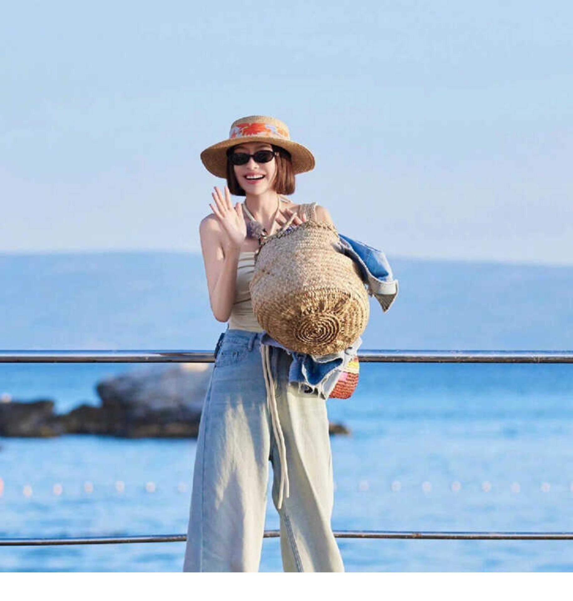 Sombrero de copa de estilo francés Sombrero de paja retro Sombrero de sol de verano para mujer para salir a la playa Sombrero de sol Sombrero de playa de paja casual de copa plana