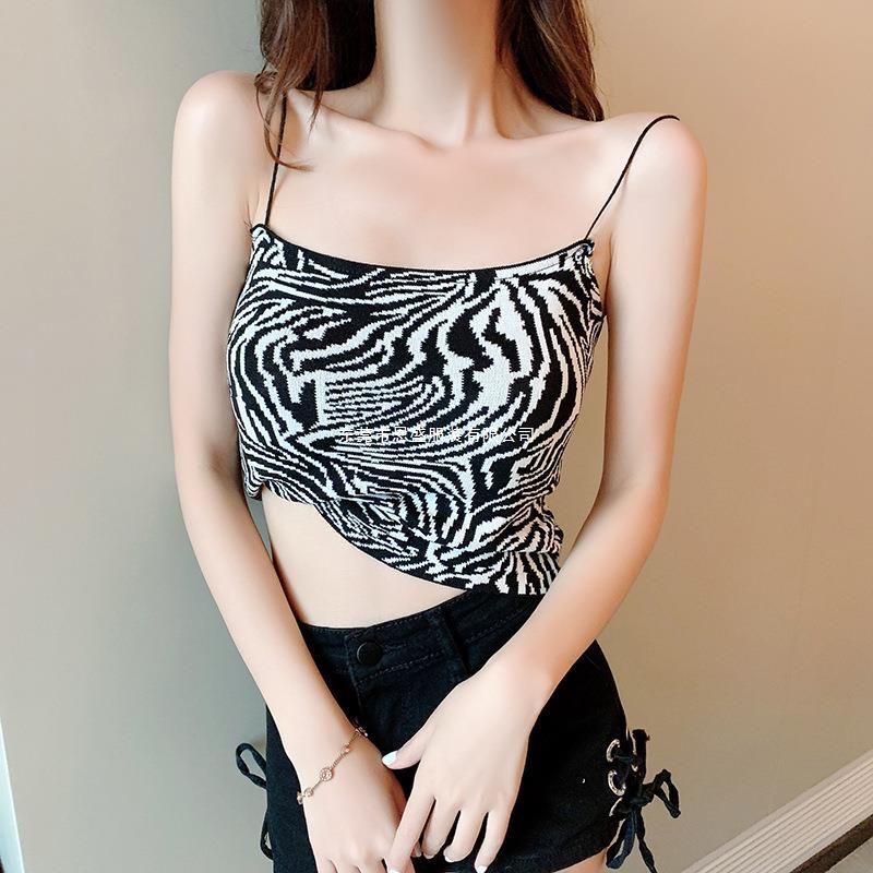 Sexy Europeo y Americano Suspbottomer Interior Dulce y Picante Camiseta para Fondo 2024 Verano Chaleco Ropa Exterior Vestido de Verano para Chica Caliente Top con Estampado de Cebra