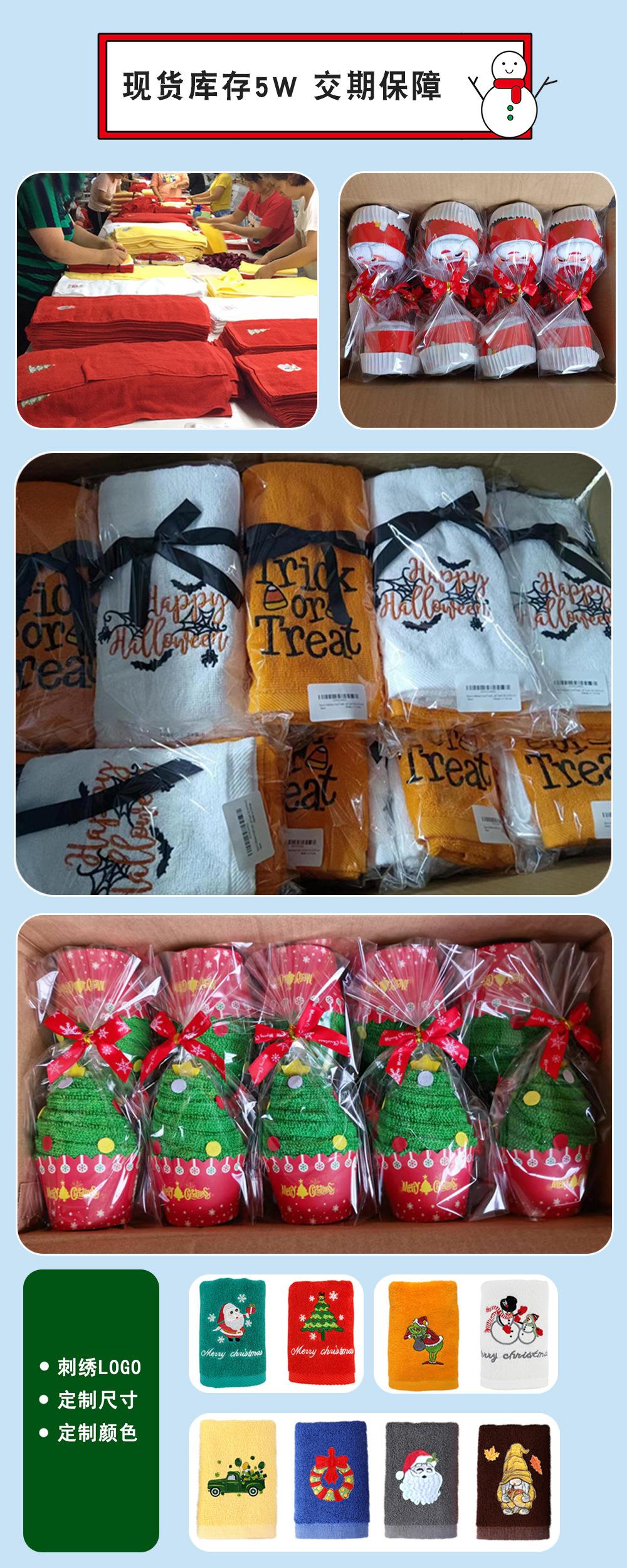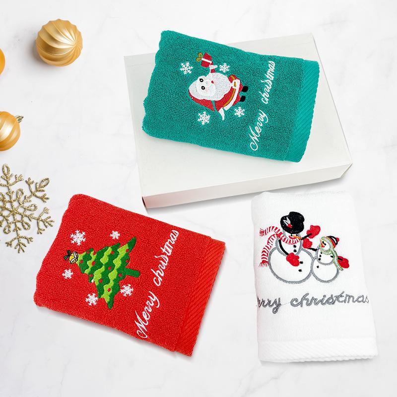 Toalla de Mano Navideña Algodón Puro Absorbente Toalla de Cocina Navideña Bordado Personalizado Regalo Transfronterizo Set de Toallas de Baño Navideño