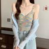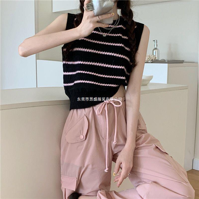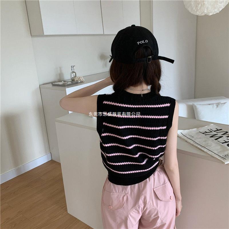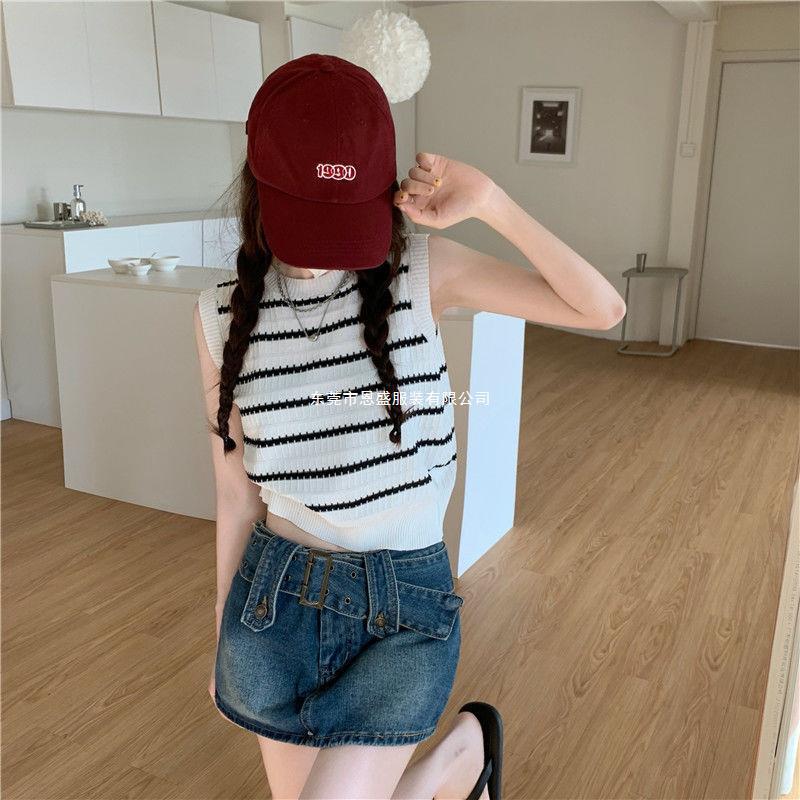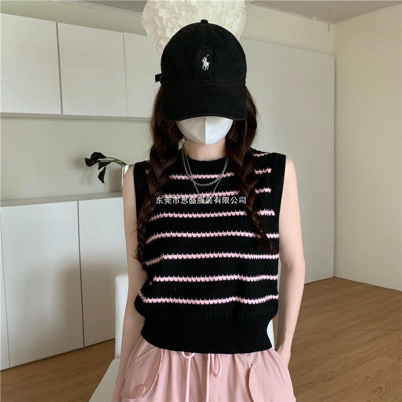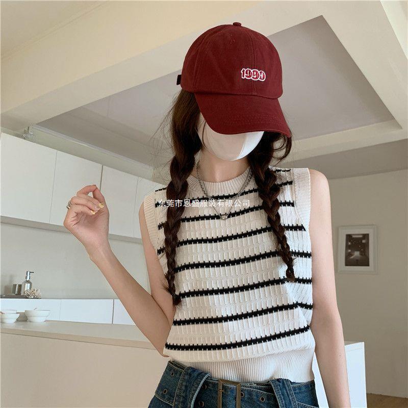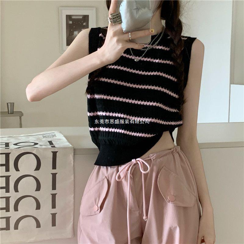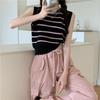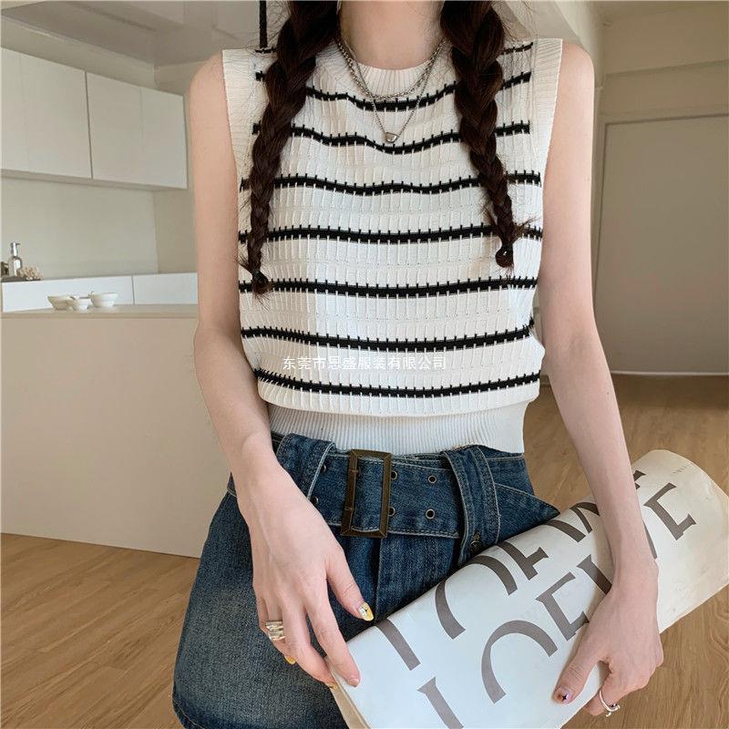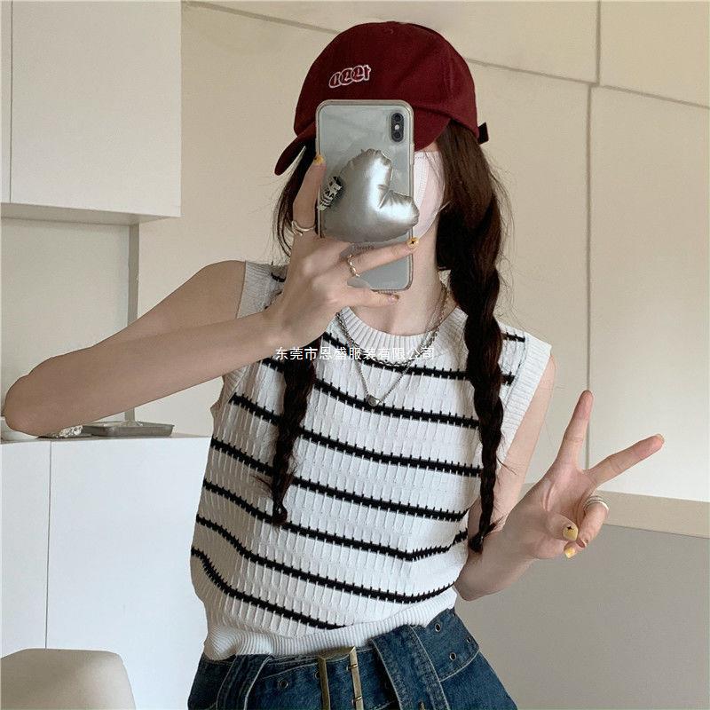 Camisola de Punto Rayada Estilo Francés Dulce y Picante Verano Deportes Ropa Exterior sin Mangas Holgada Chaleco Top para Mujer