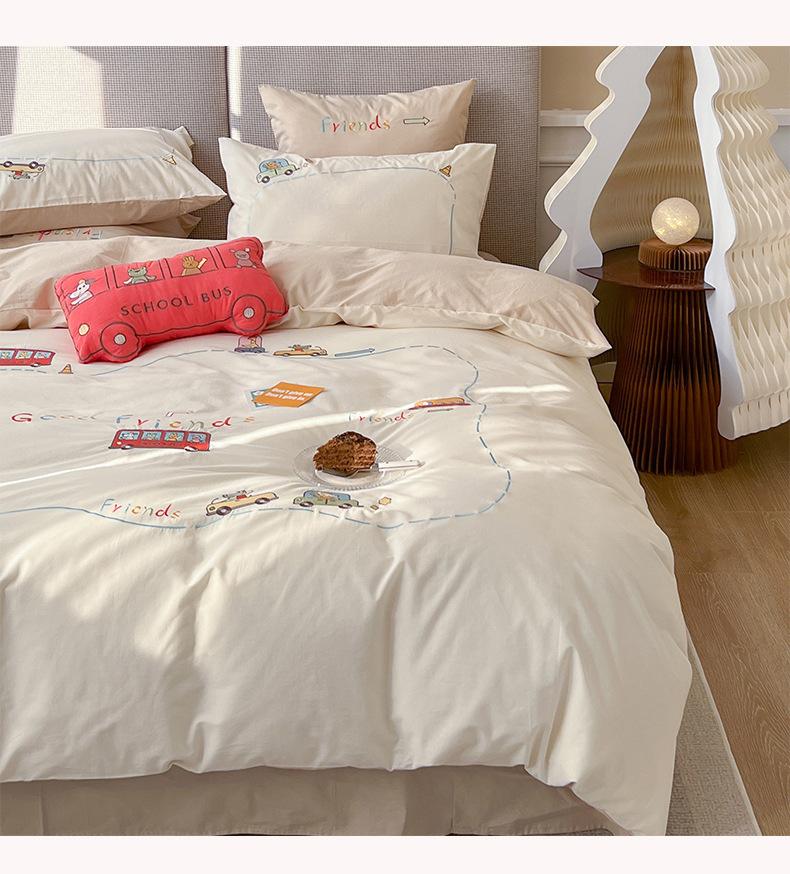 Nueva llegada de juego de cuatro piezas de algodón lavado de los años 50 con dibujos animados frescos