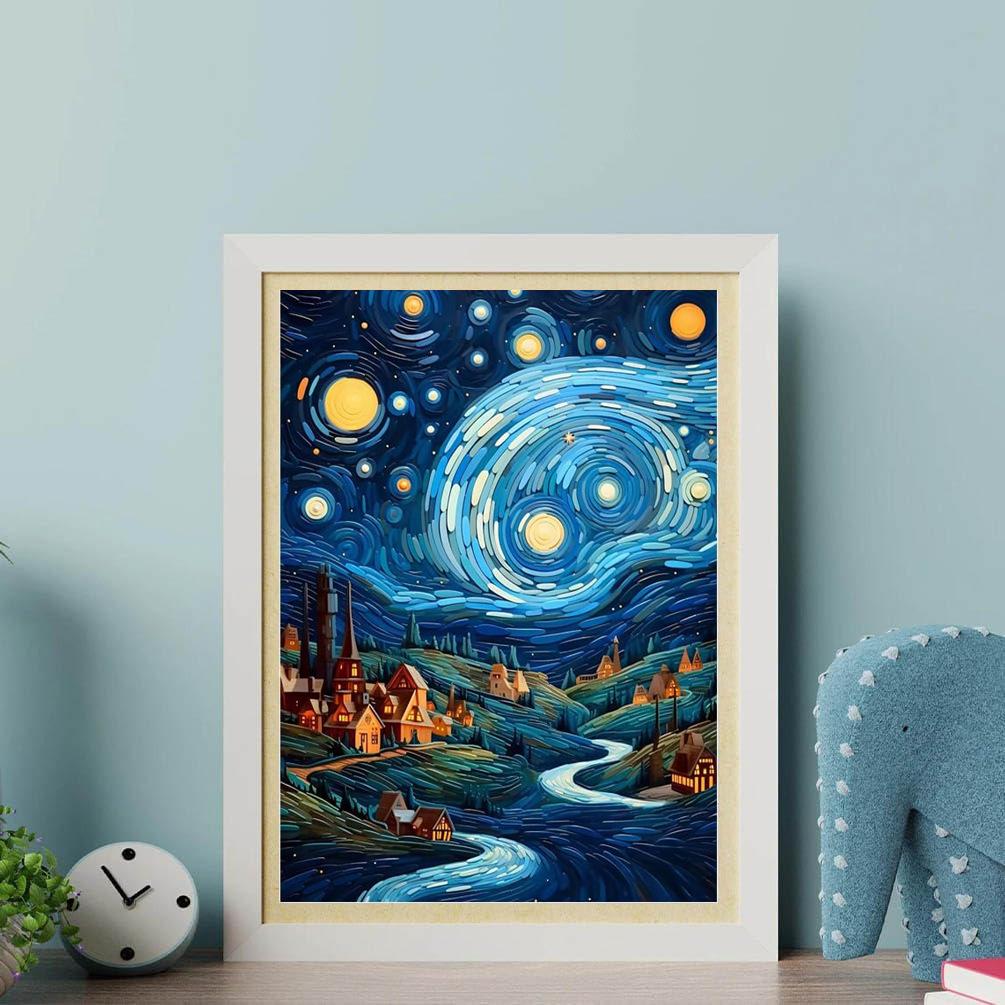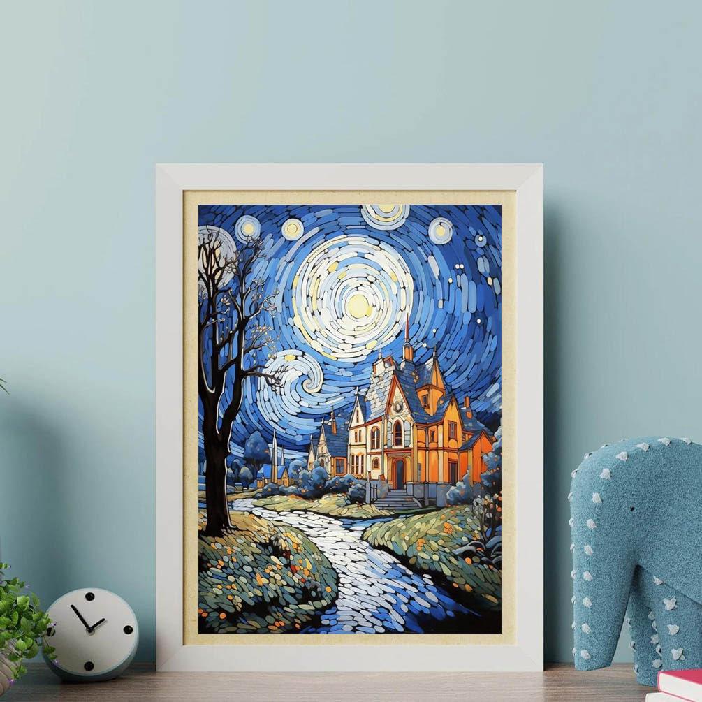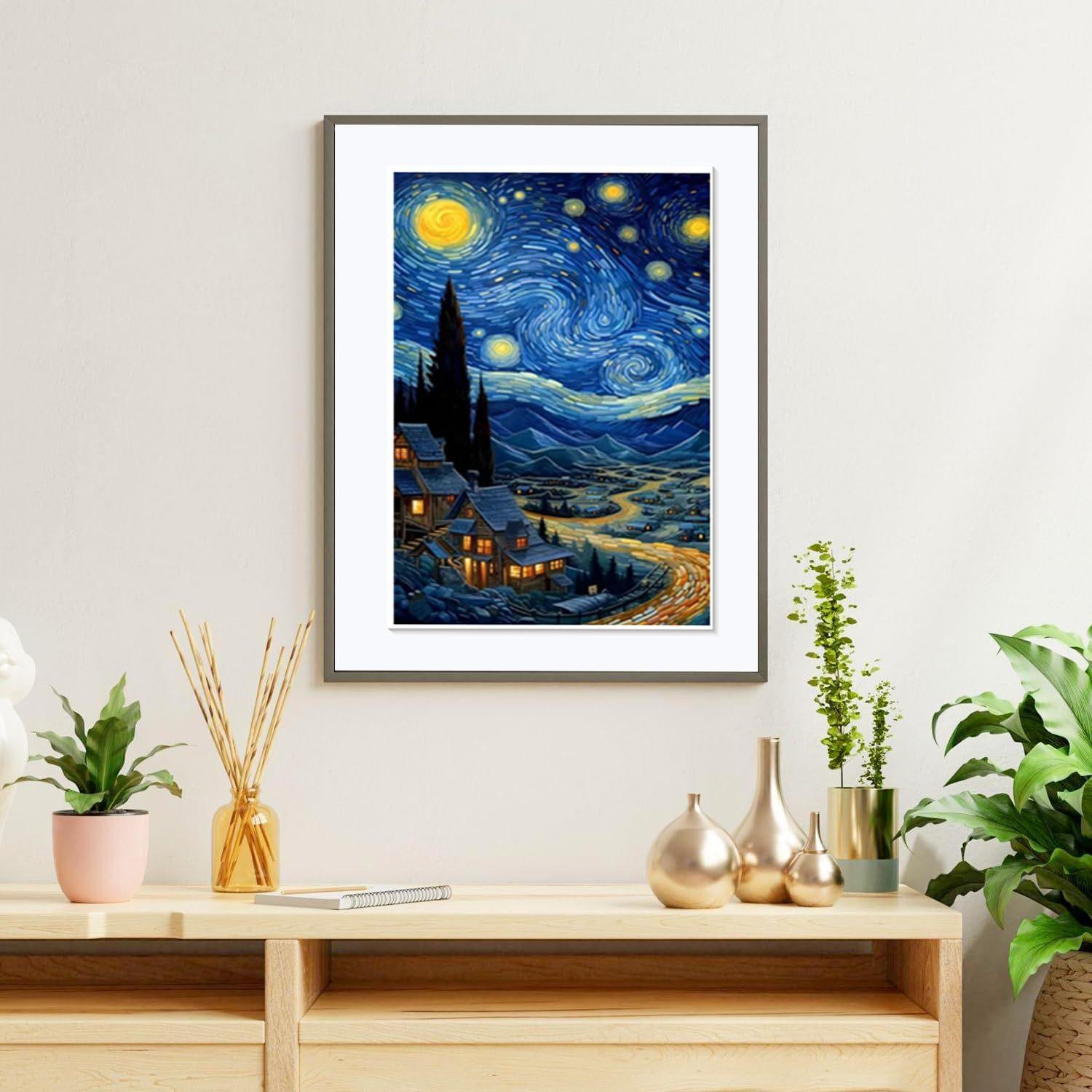 Pintura de Diamantes Transfronteriza Serie Estrella Van Gogh Hecho a Mano DIY Pintura Decorativa Diamante Redondo Diamante Completo Sala de Estar Dormitorio Pintura de Paisaje