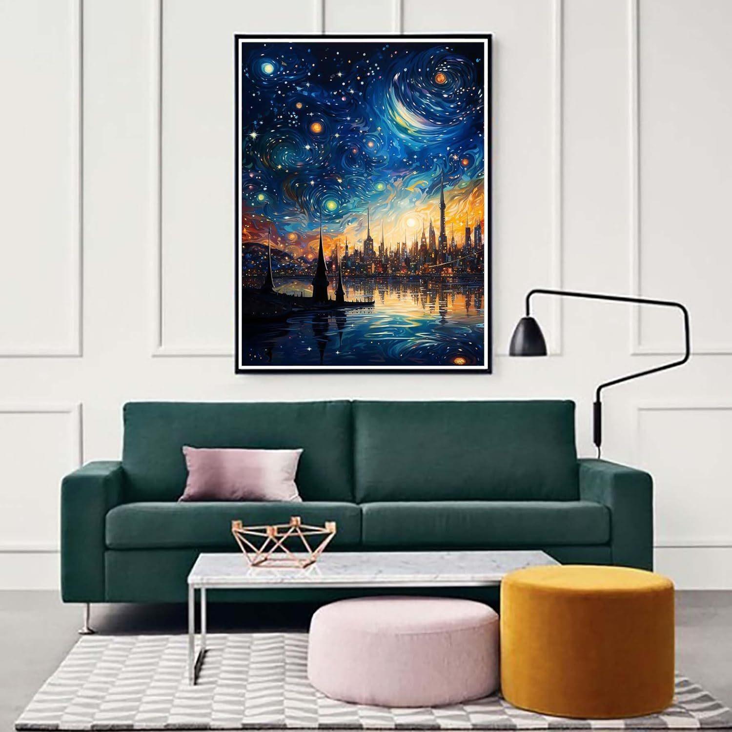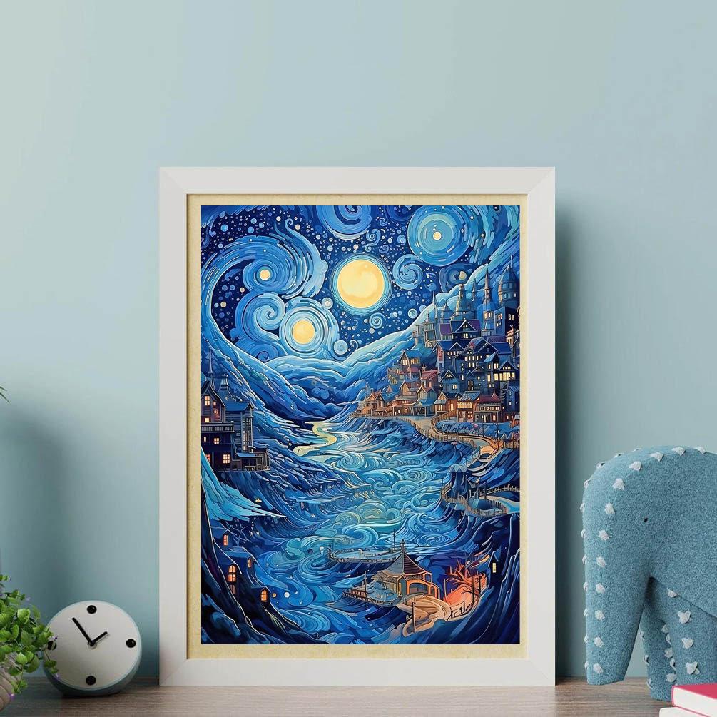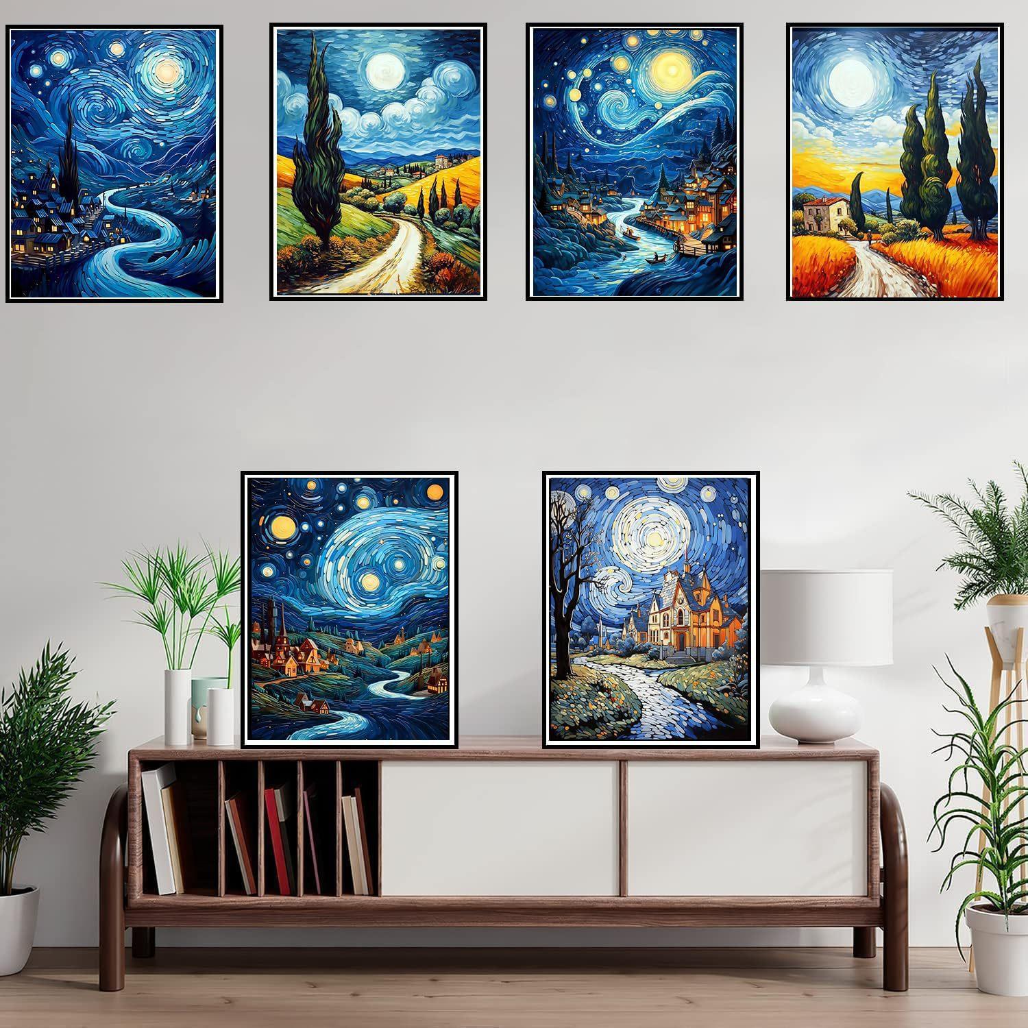Pintura de Diamantes Transfronteriza Serie Estrella Van Gogh Hecho a Mano DIY Pintura Decorativa Diamante Redondo Diamante Completo Sala de Estar Dormitorio Pintura de Paisaje