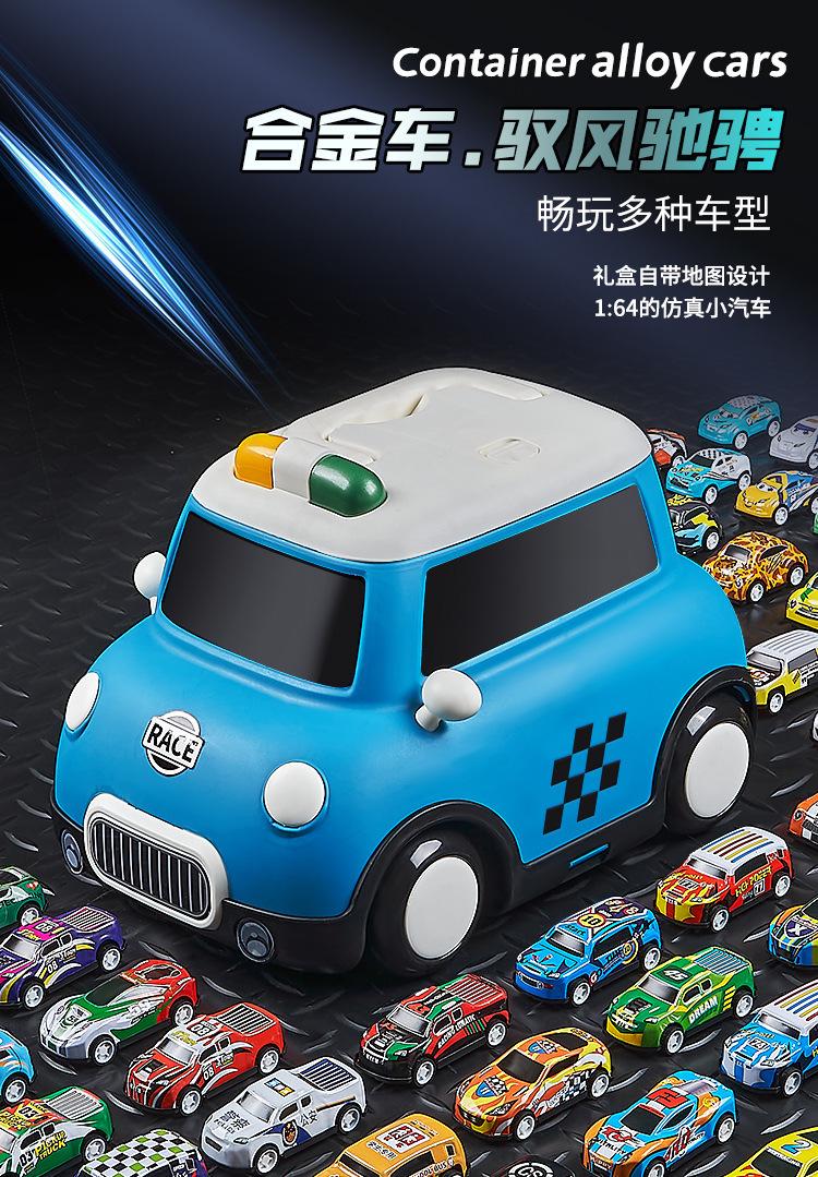 Extra large toy car blue [50 cars] alloy racing car + storage bucket + map