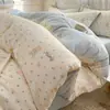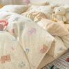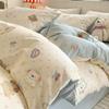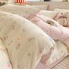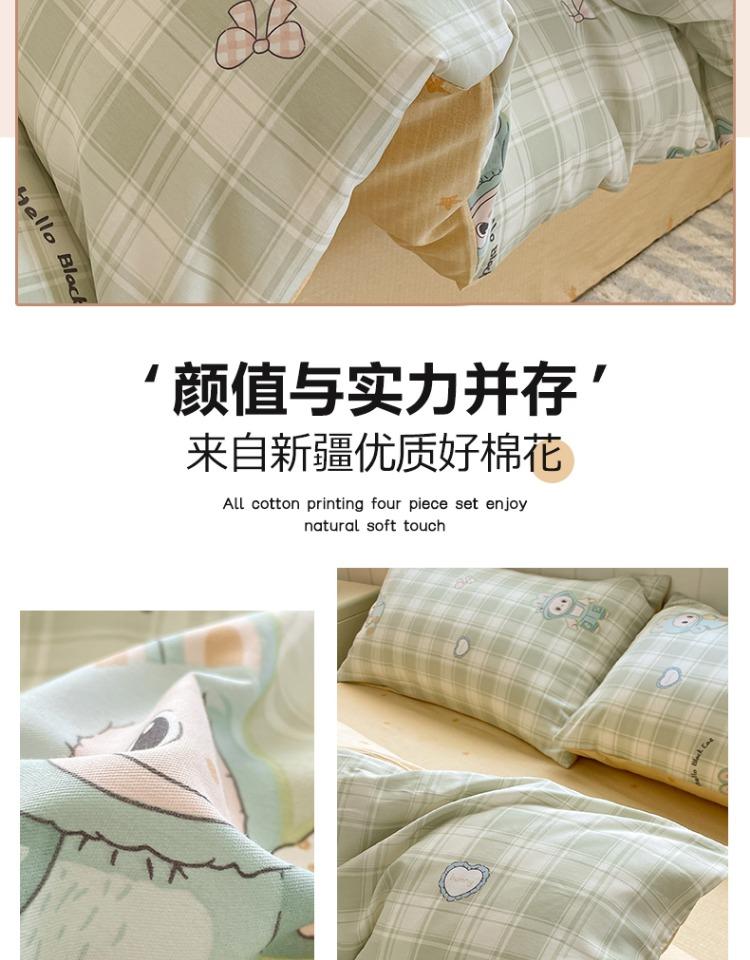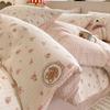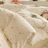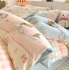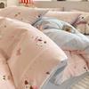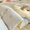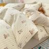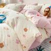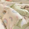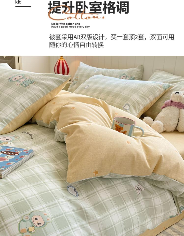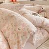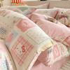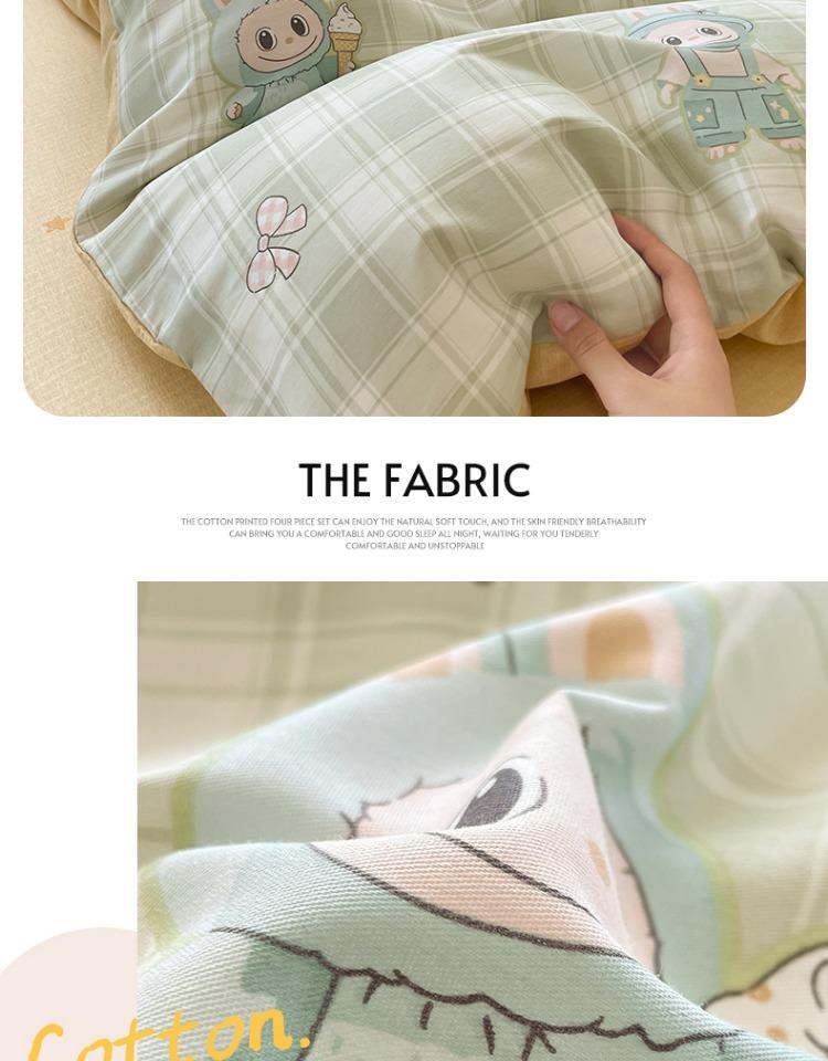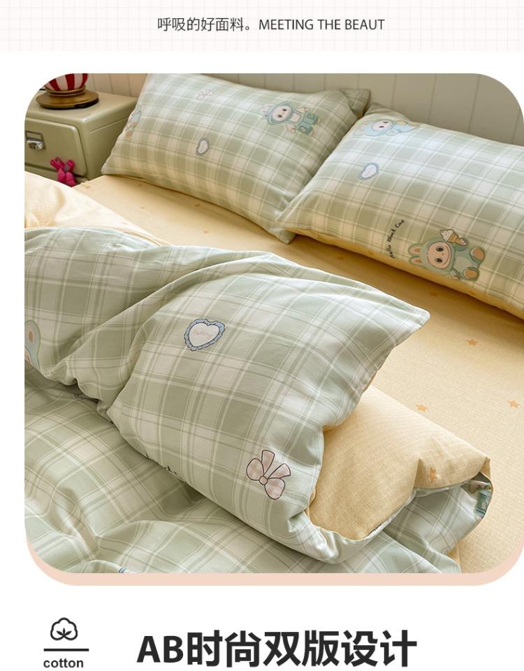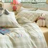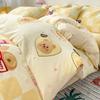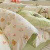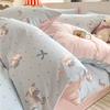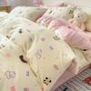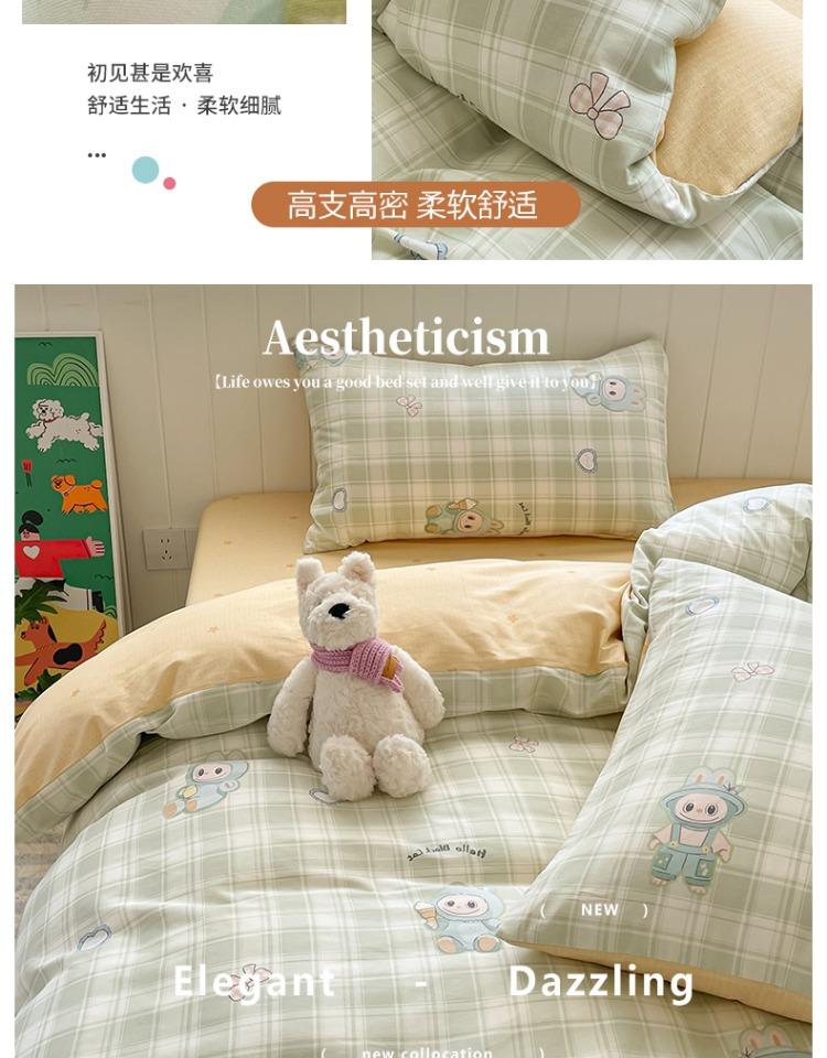 Juego de cuatro piezas de ropa de cama de algodón puro 100% con diseño de conejo extraíble simple, sábanas para cama de dormitorio infantil de dibujos animados, juego de tres piezas 3