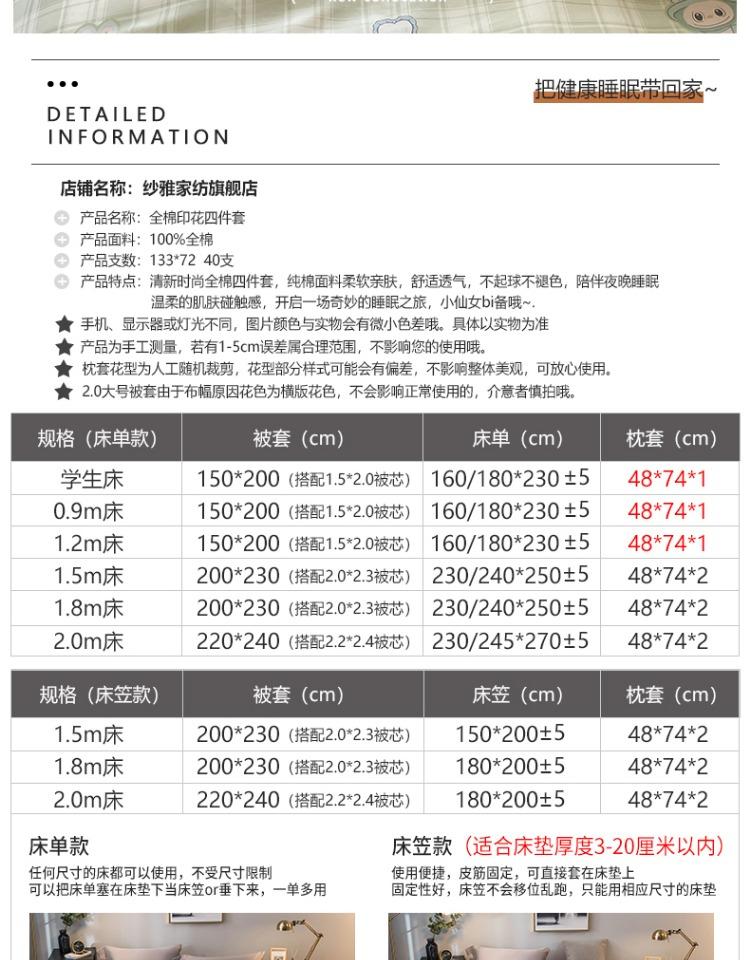 1.5m bed [Four-piece fitted sheet set] - suitable for 200x230cm quilt core