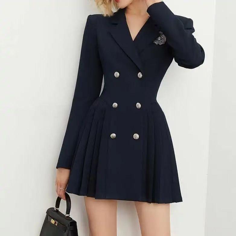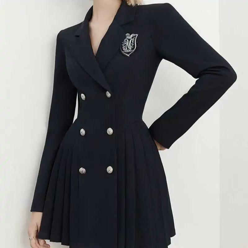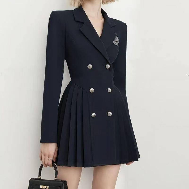 Vestido Estilo Universitario 2025 Temperamento Francés Manga Larga Adelgazante Estilo Universitario Petite Plisado Vestido Traje