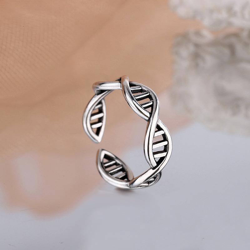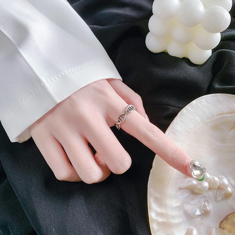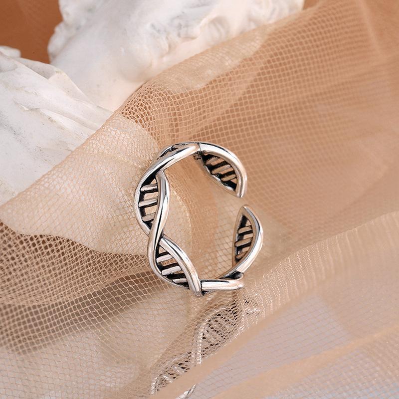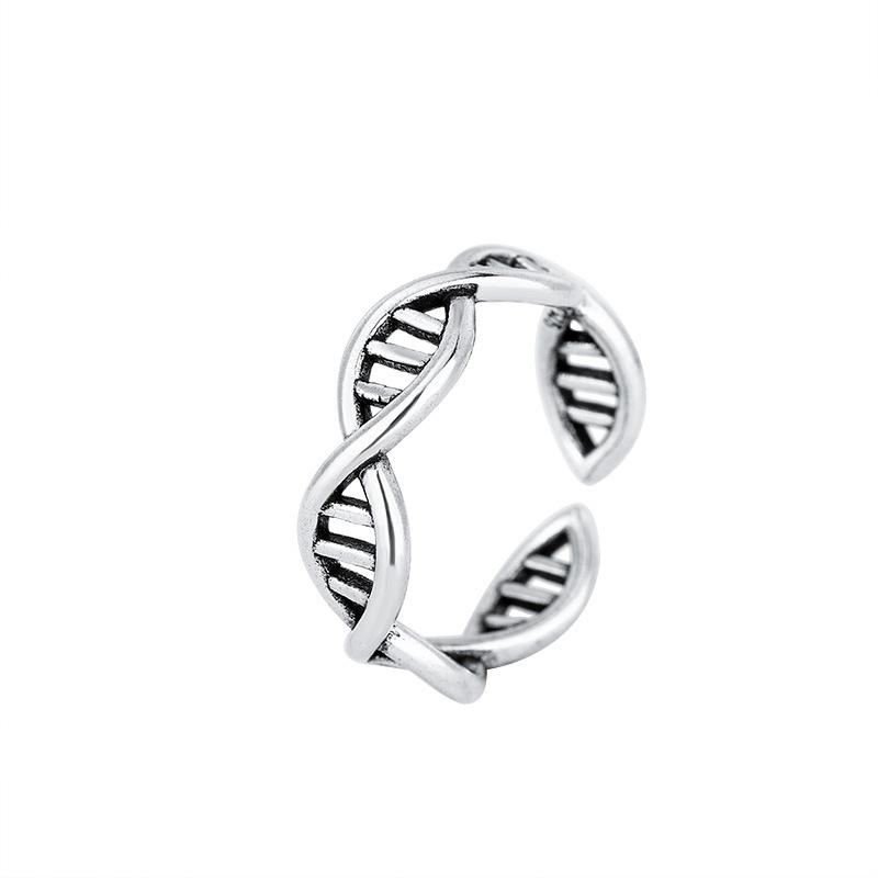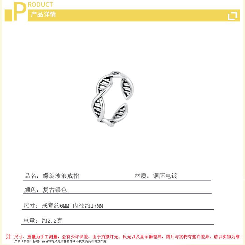 Anillo de onda espiral temperamento estudiantes un viento frío plateado retro geométrico ADN anillo de dedo abierto al por mayor