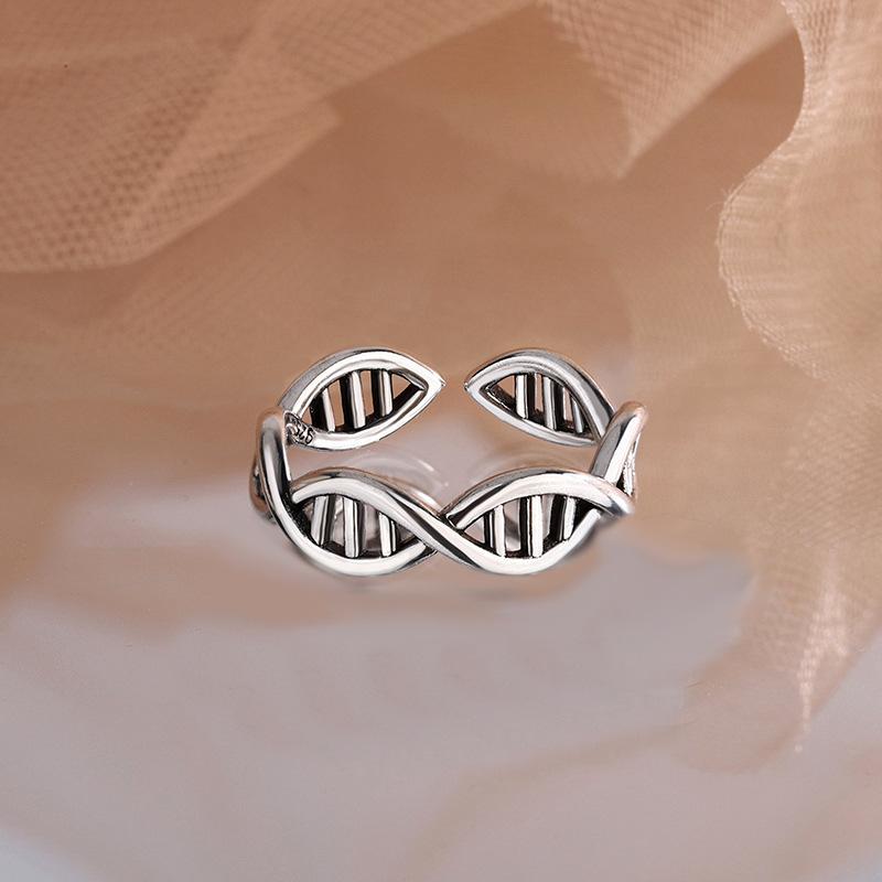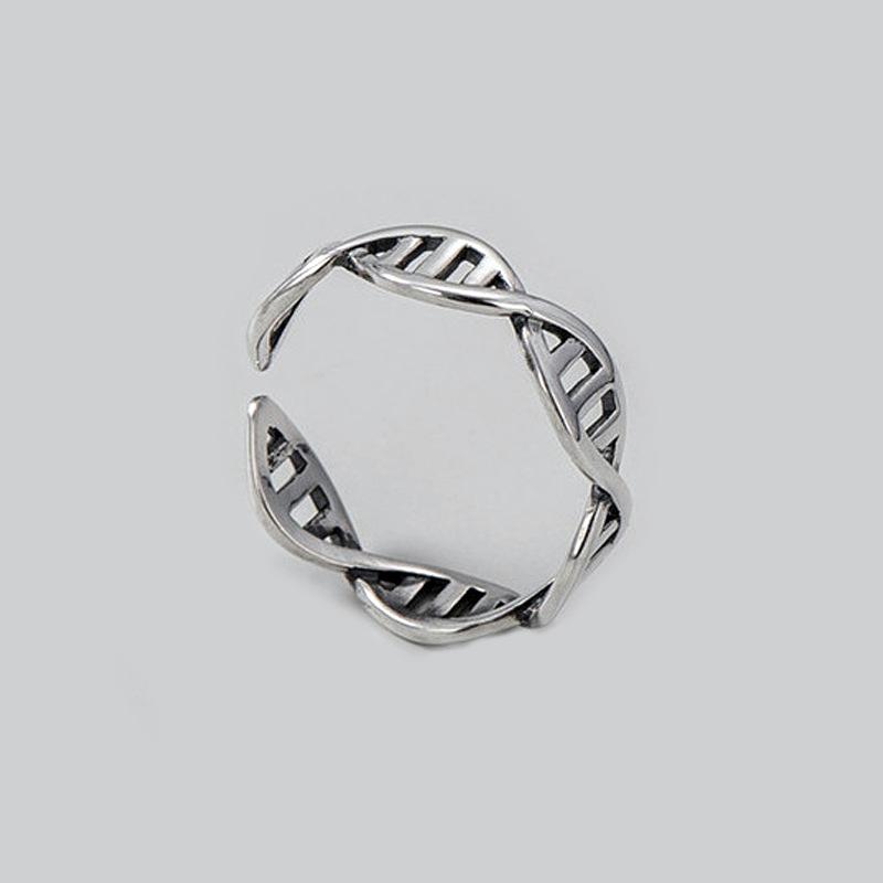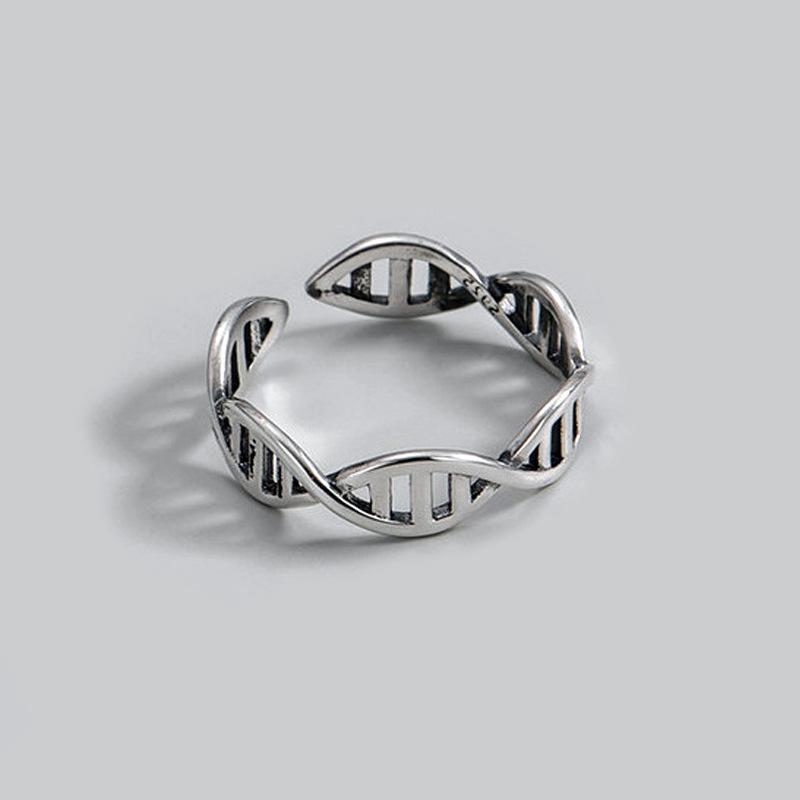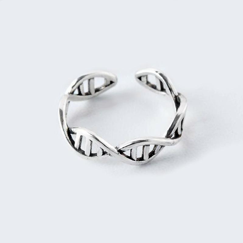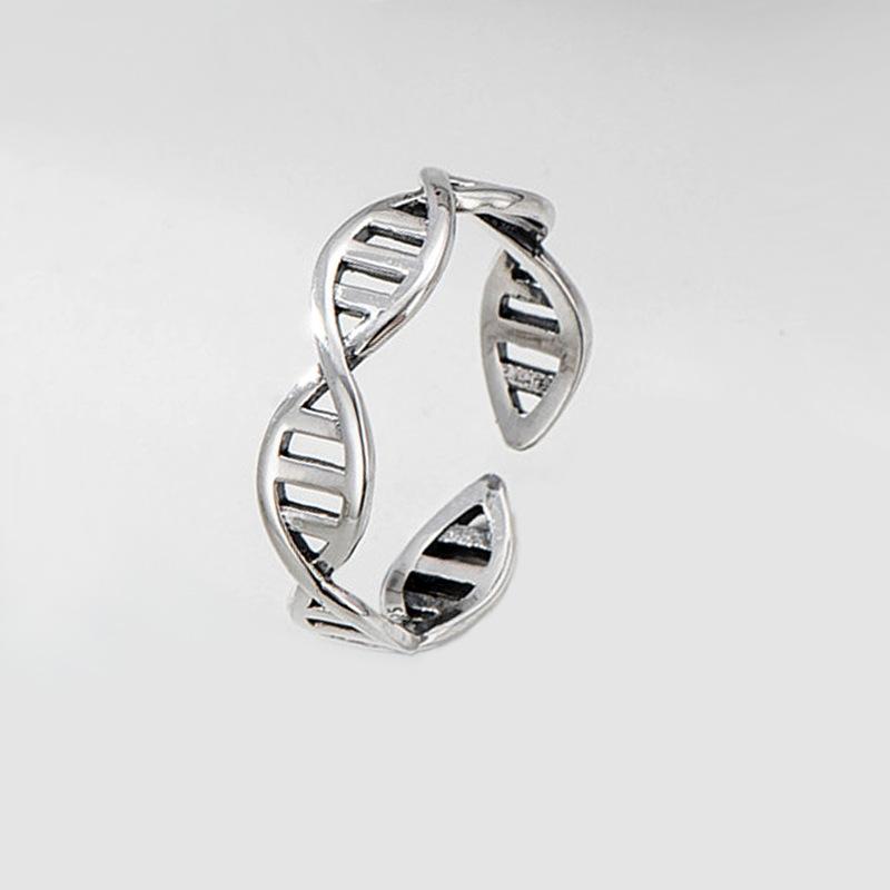Anillo de onda espiral temperamento estudiantes un viento frío plateado retro geométrico ADN anillo de dedo abierto al por mayor