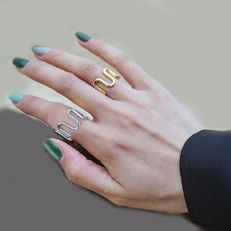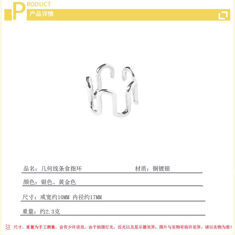 Anillo de comida de líneas geométricas Europa y Estados Unidos INS viento frío personalidad curva irregular abierto anillo índice suministro de comercio electrónico