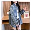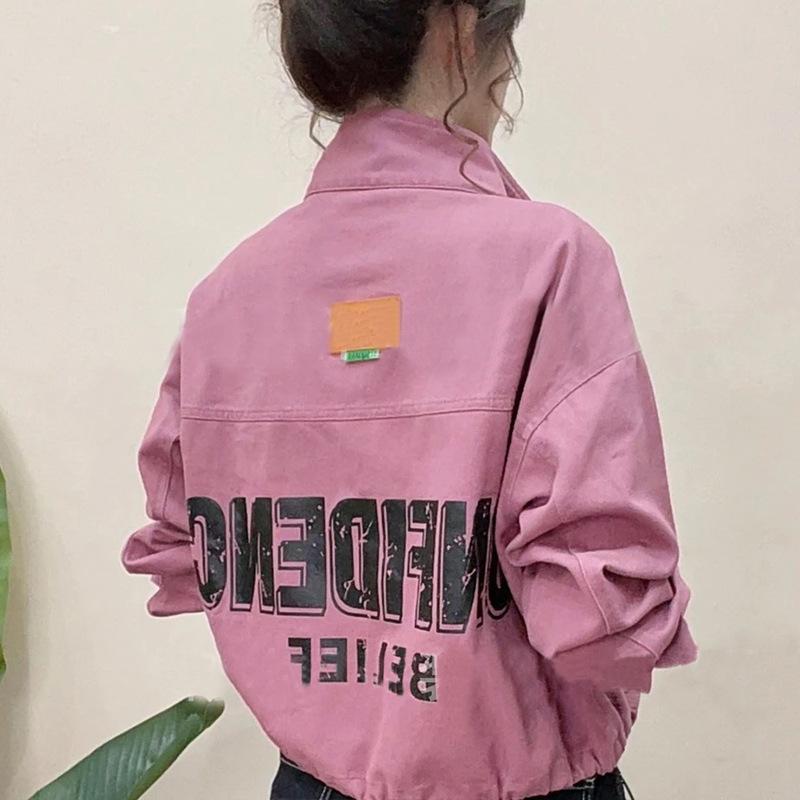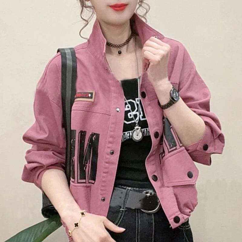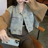 Chamarra de mezclilla corta mujer 2025 primavera nueva moda estilo extranjero reductor de edad diseño versátil letra celebridad de internet top