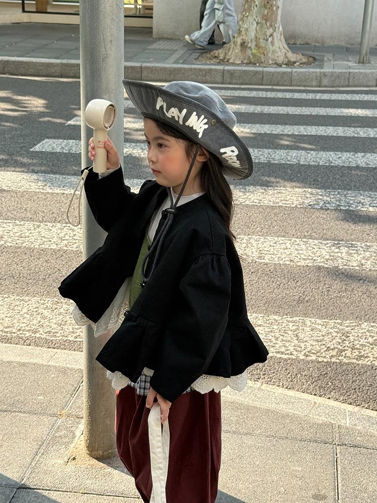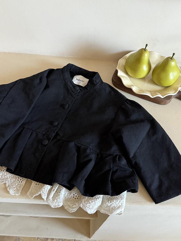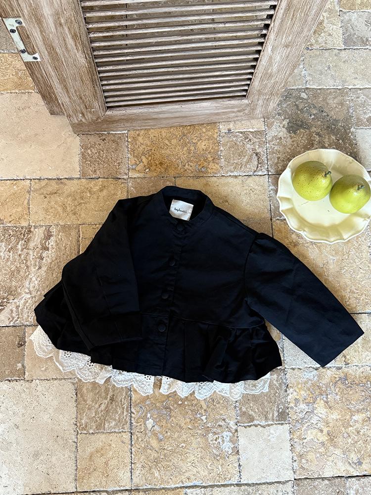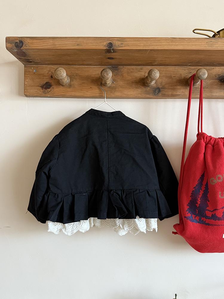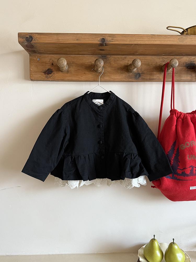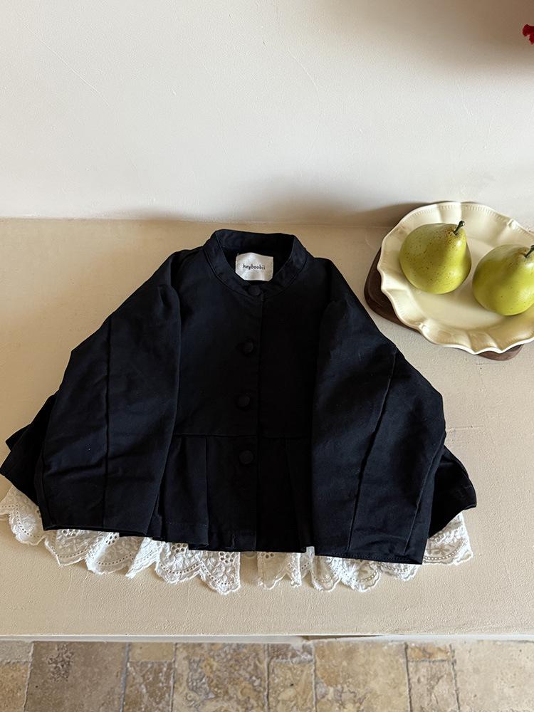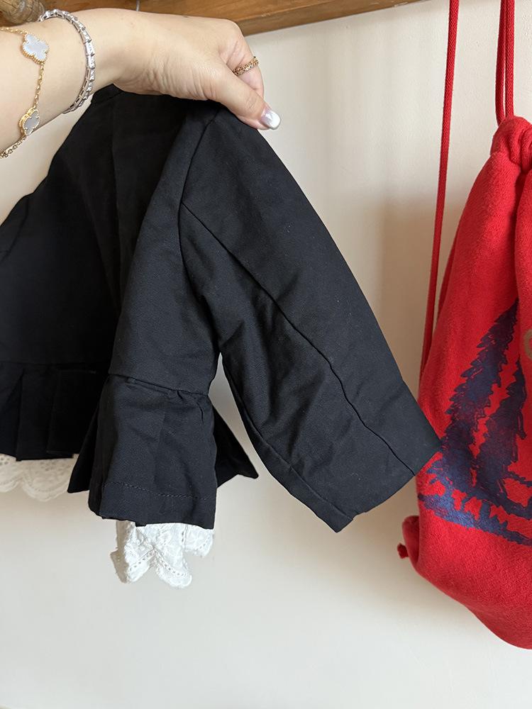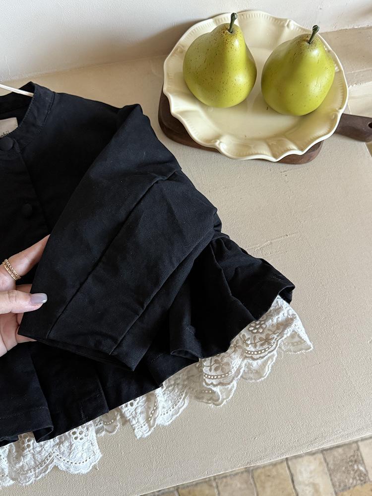 Ropa Infantil Huzhou Zhili Otoño 2025 Nuevo Producto Chaqueta Negra Estilo Coreano para Niñas Chaqueta Infantil con Parches de Encaje