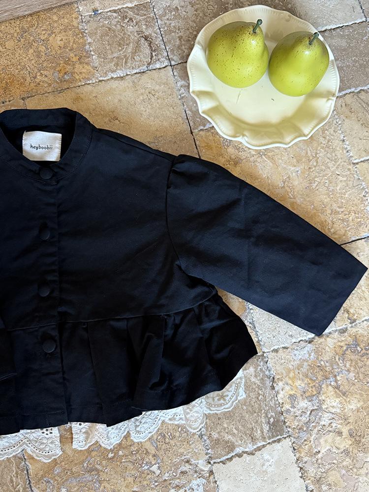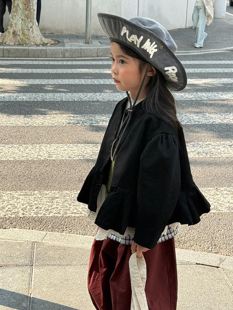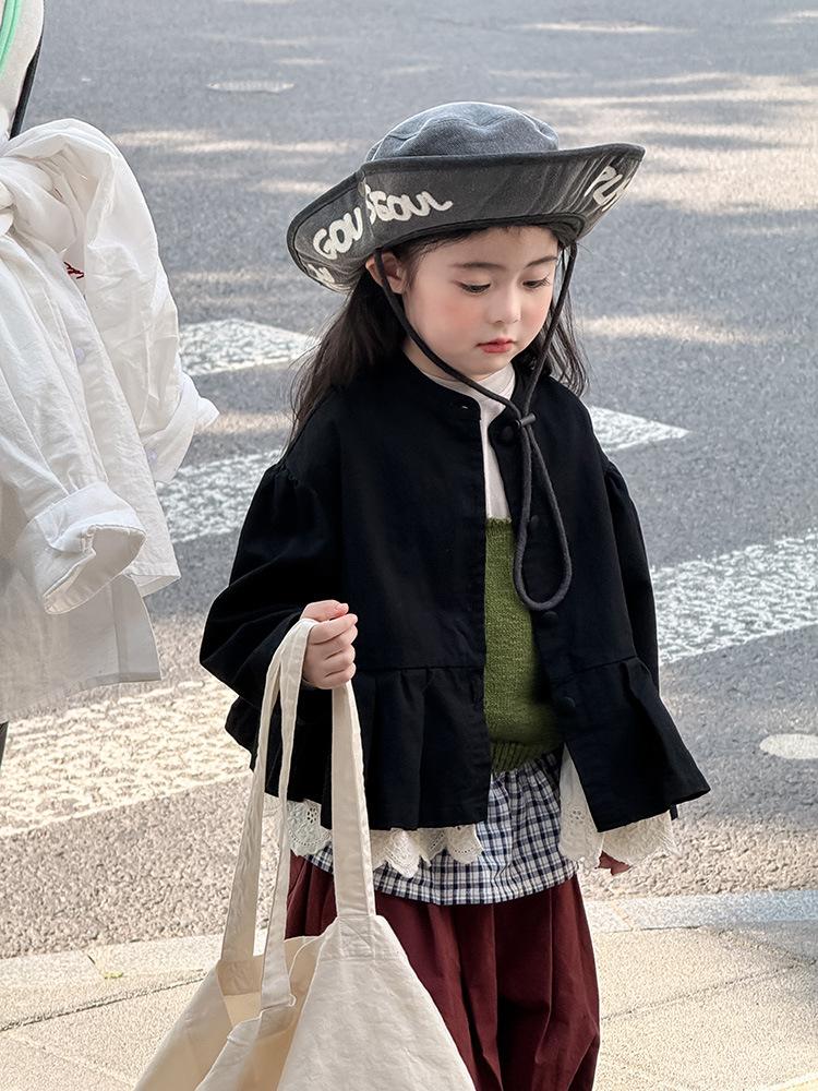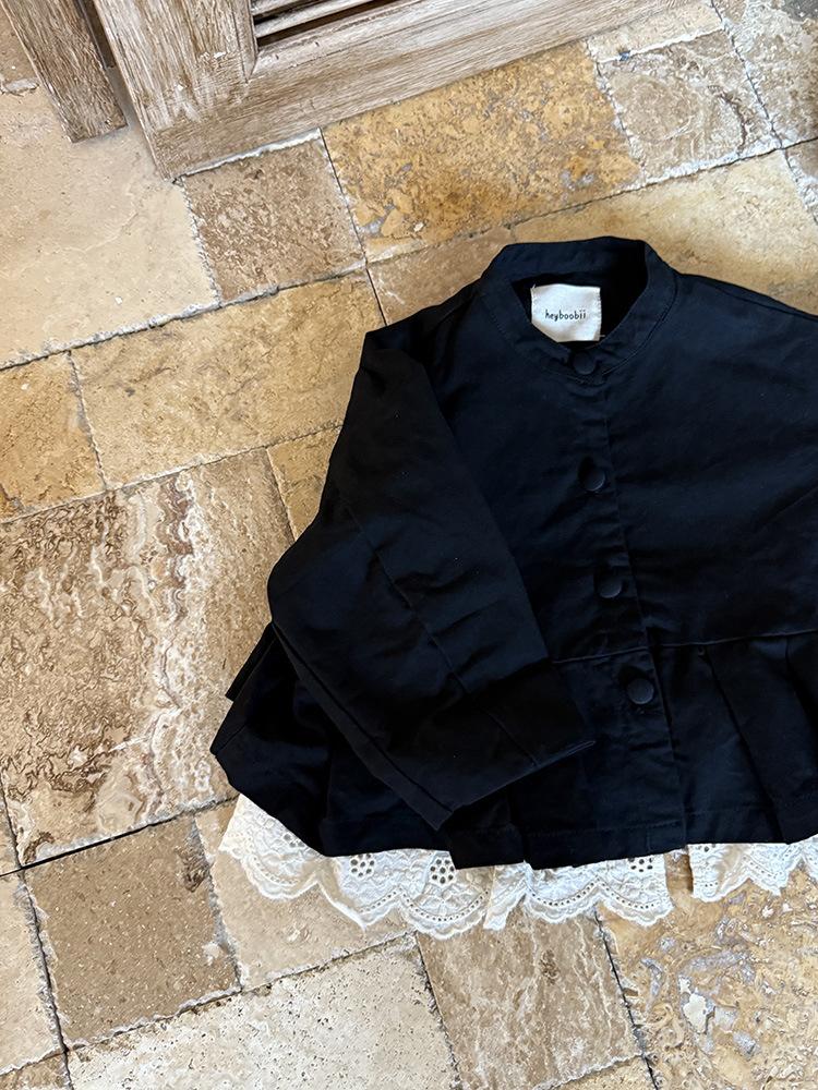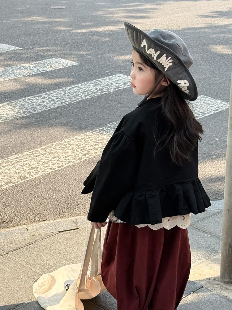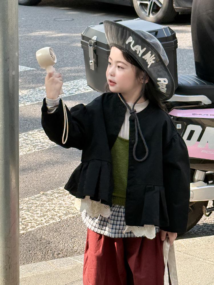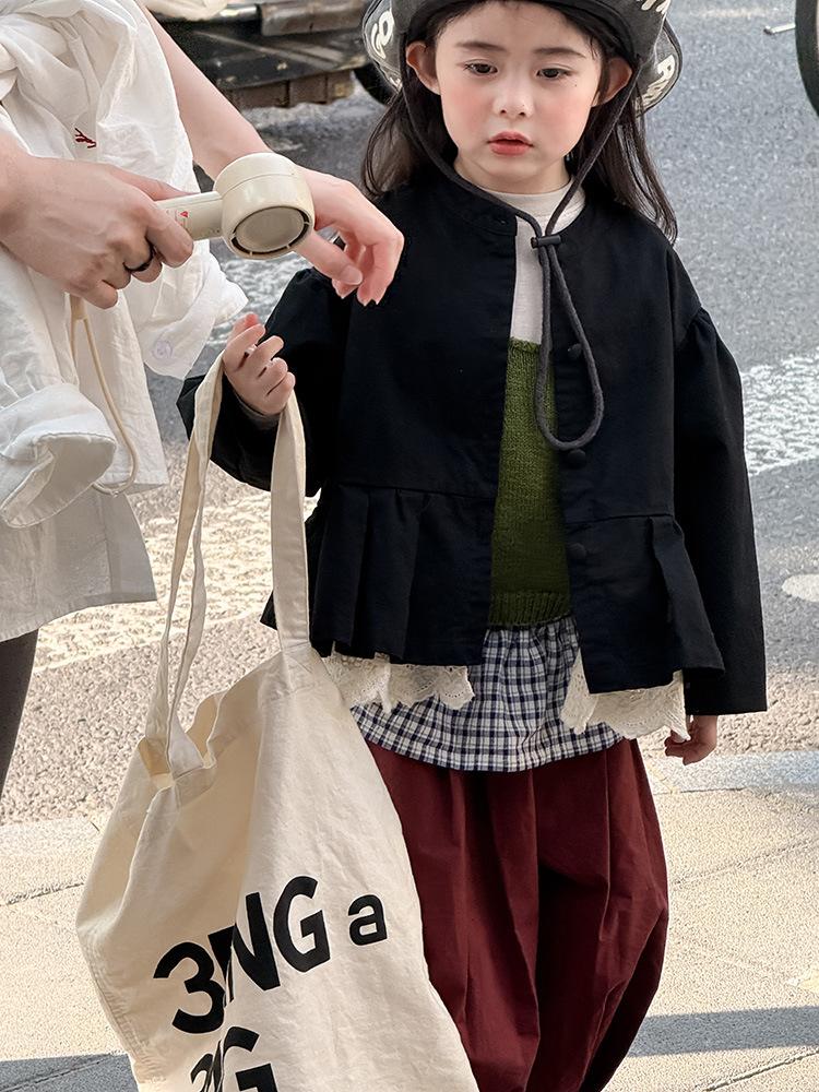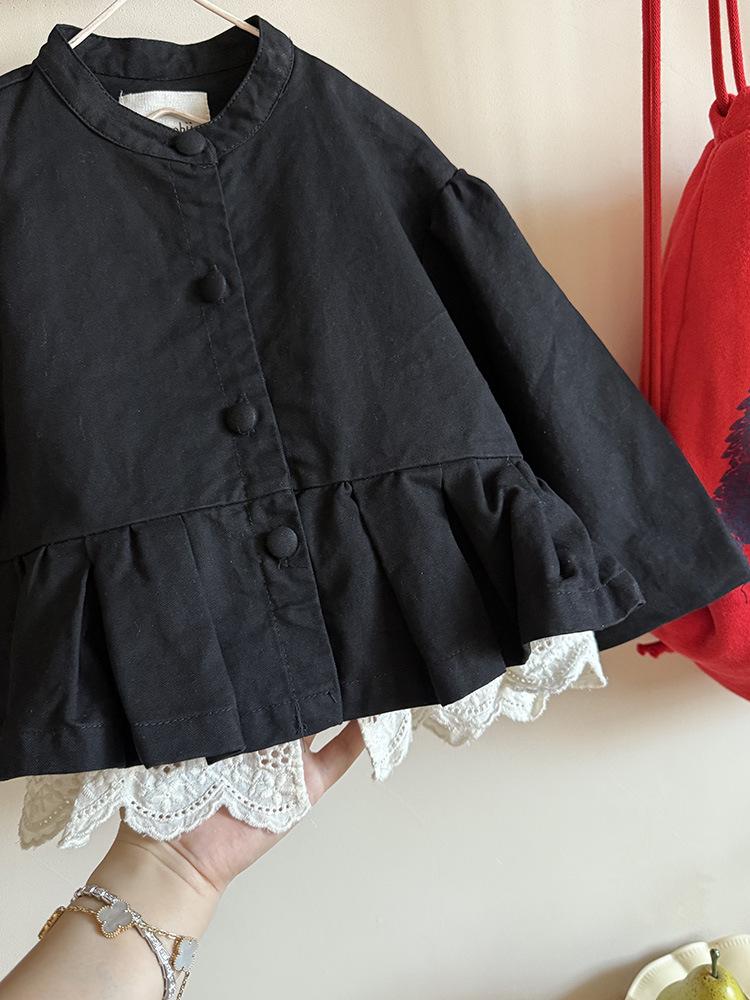 Ropa Infantil Huzhou Zhili Otoño 2025 Nuevo Producto Chaqueta Negra Estilo Coreano para Niñas Chaqueta Infantil con Parches de Encaje