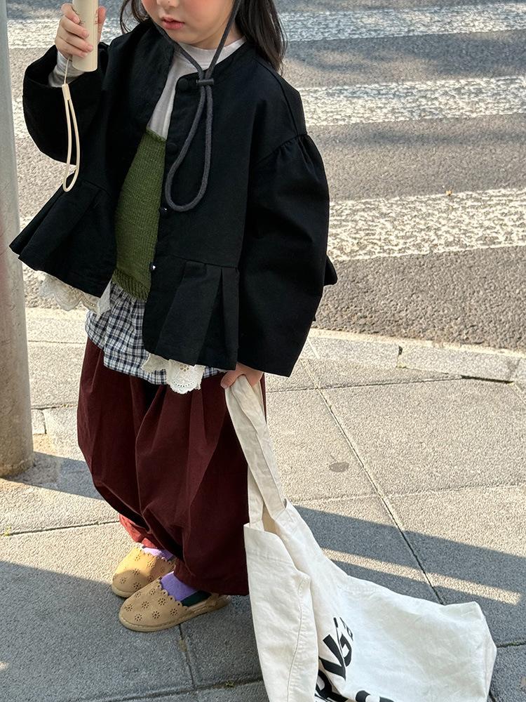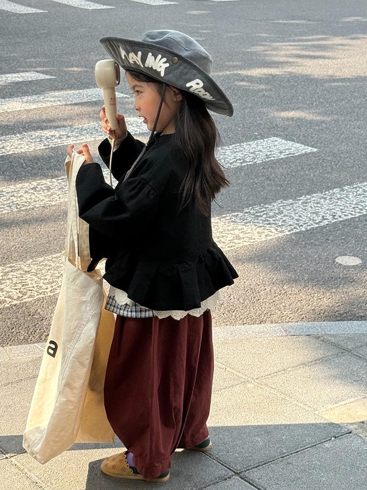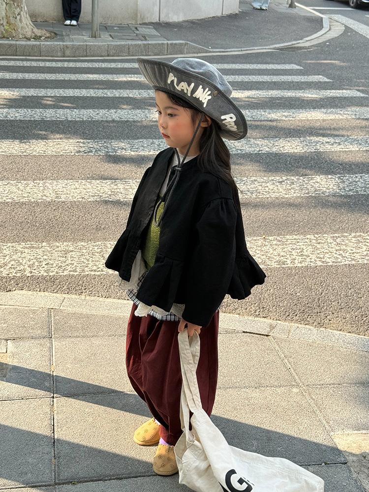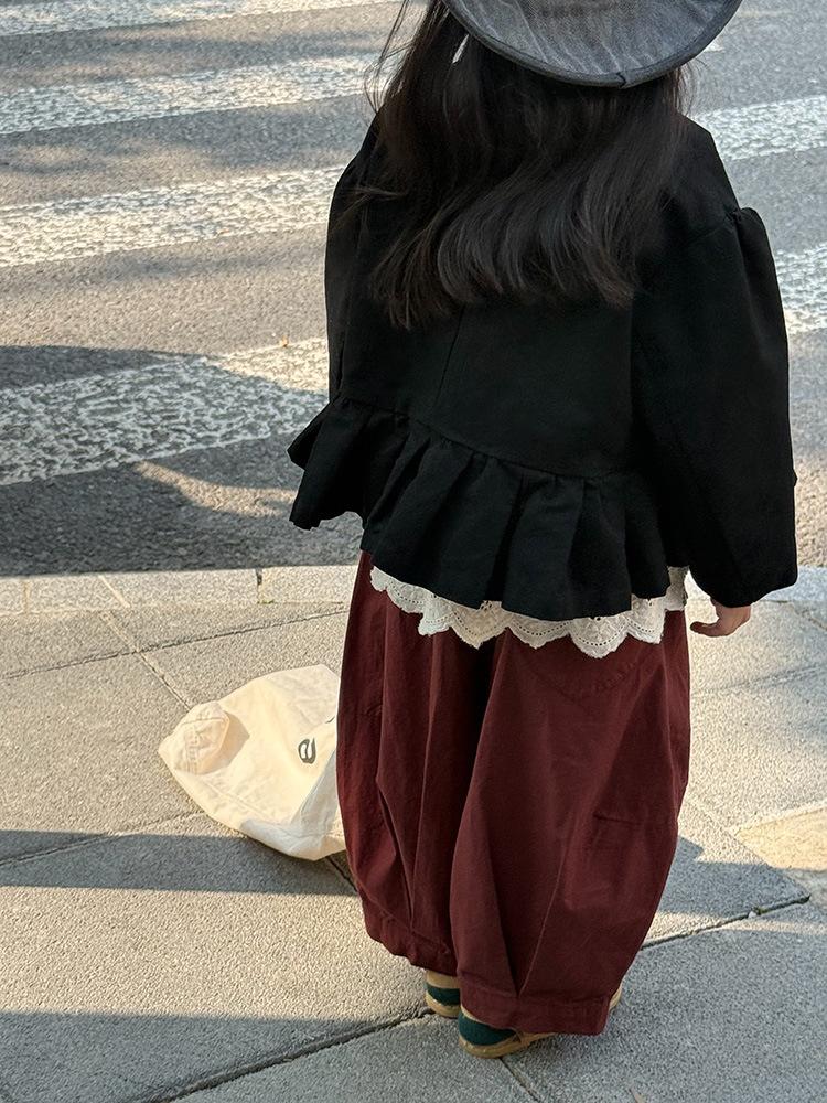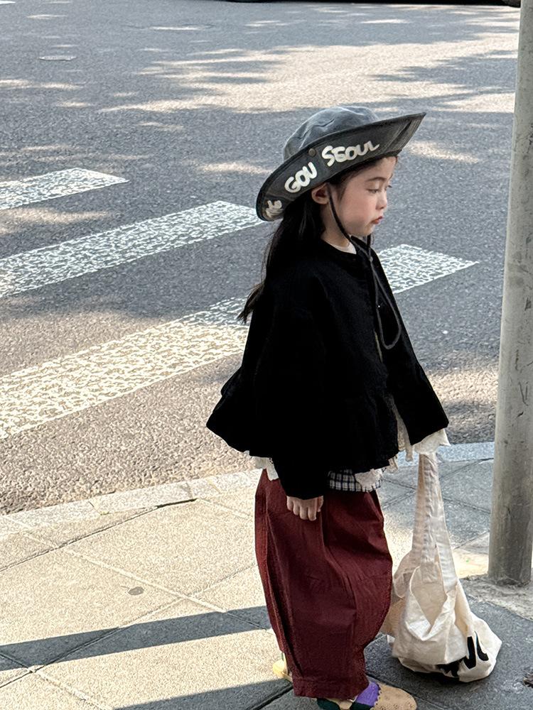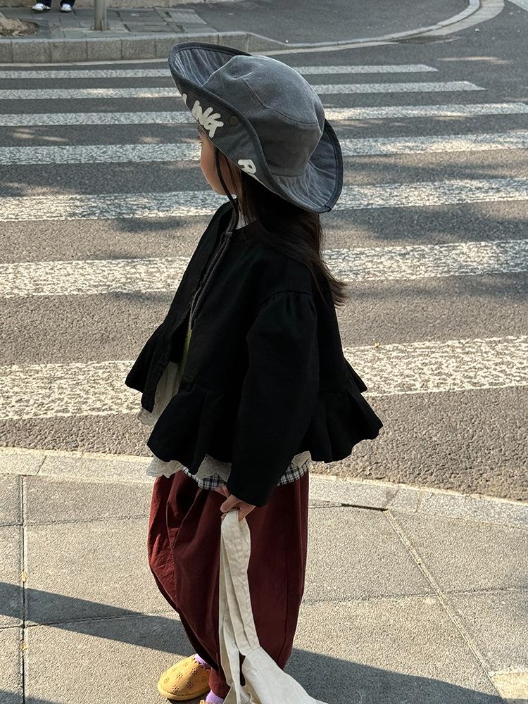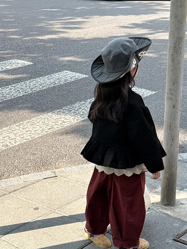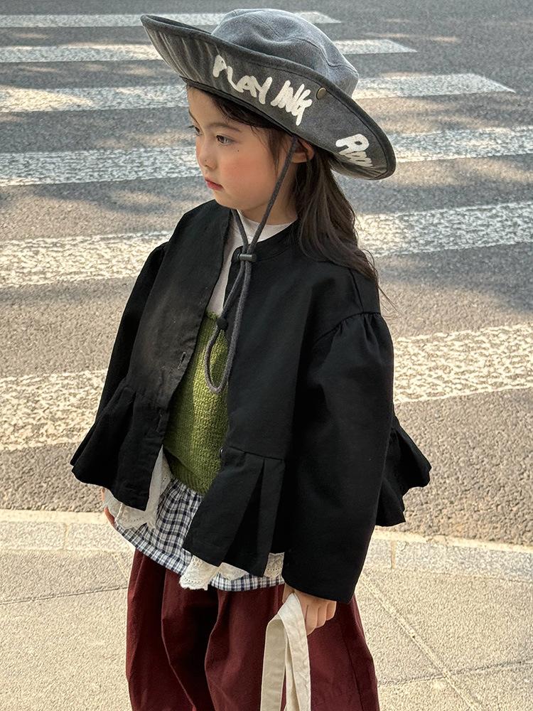 Ropa Infantil Huzhou Zhili Otoño 2025 Nuevo Producto Chaqueta Negra Estilo Coreano para Niñas Chaqueta Infantil con Parches de Encaje