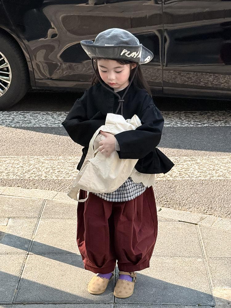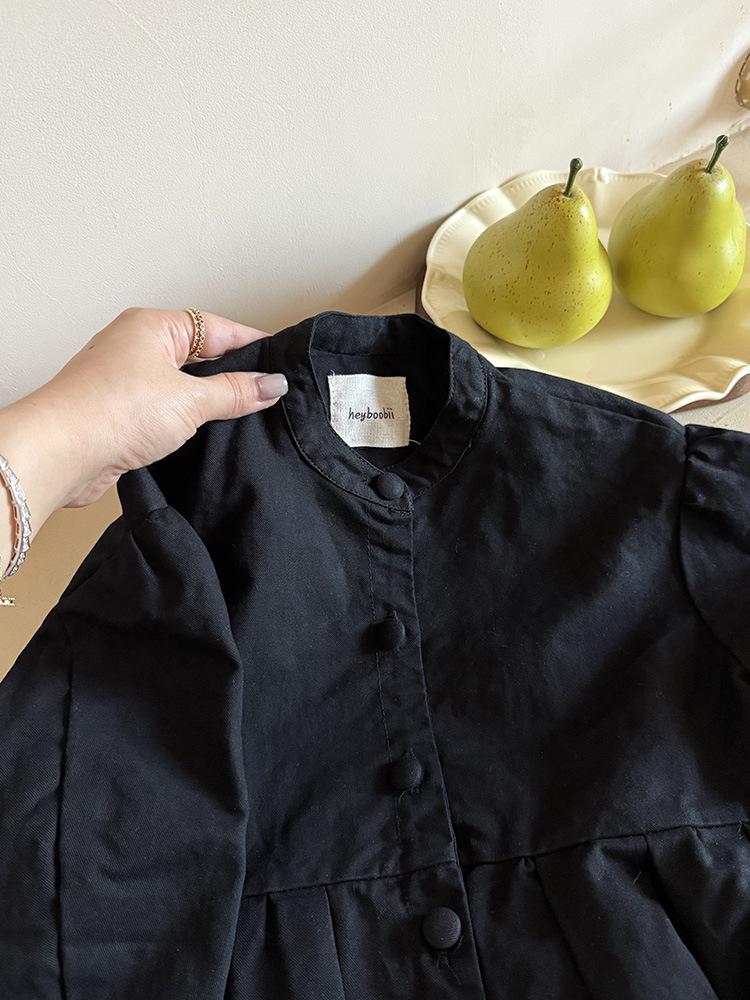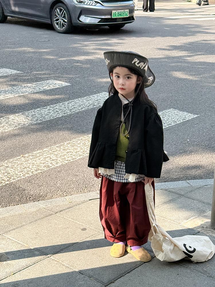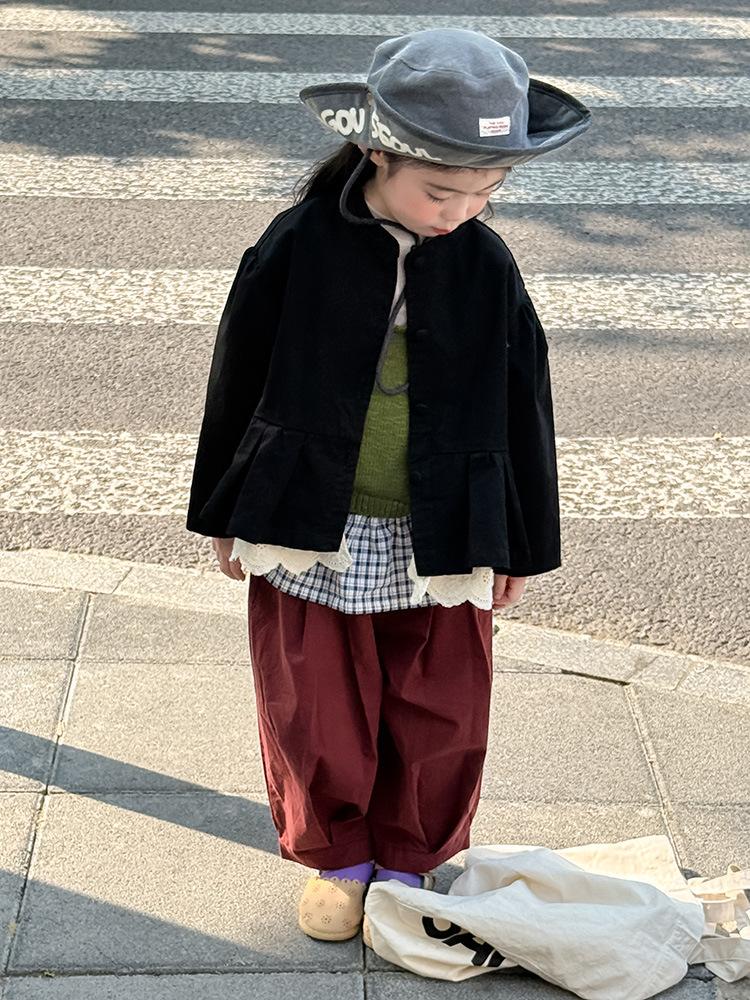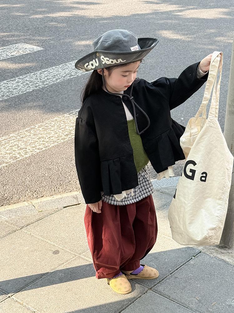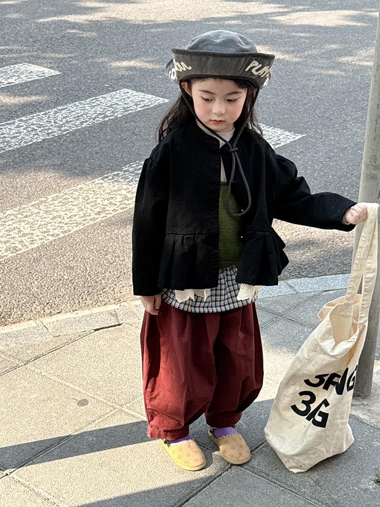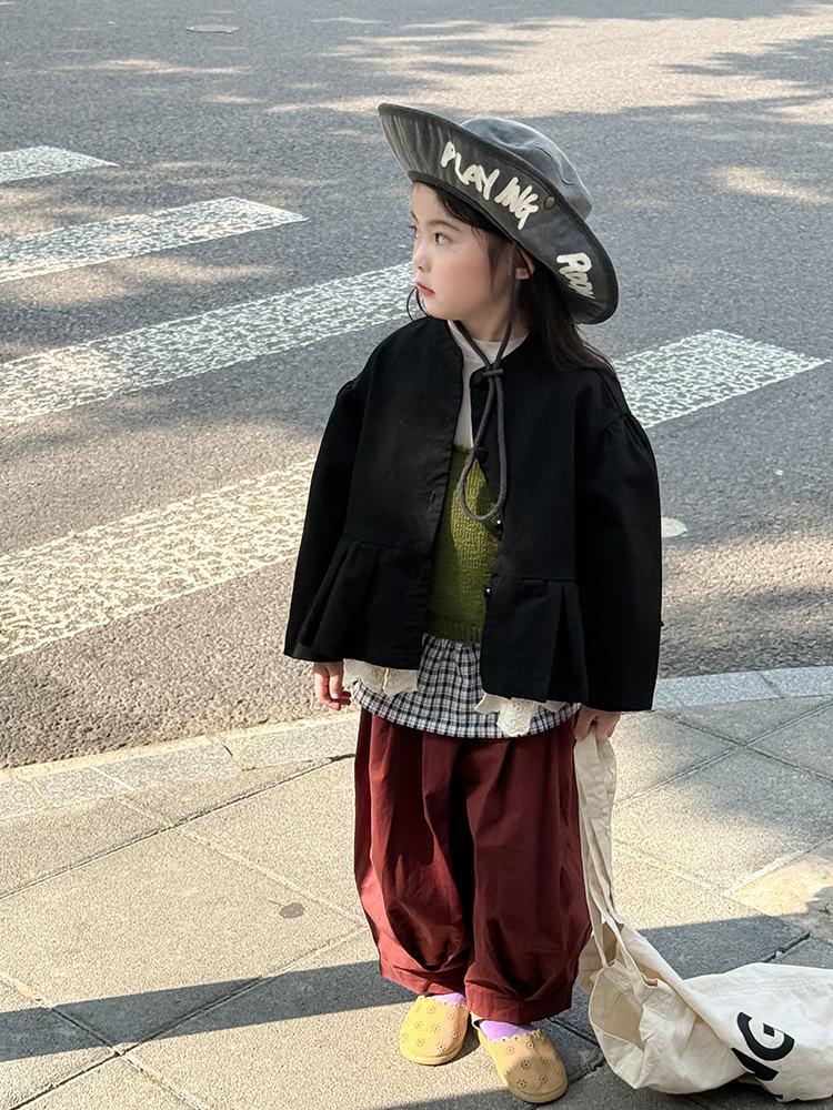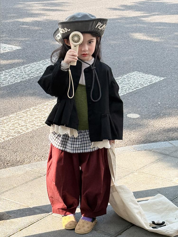 Ropa Infantil Huzhou Zhili Otoño 2025 Nuevo Producto Chaqueta Negra Estilo Coreano para Niñas Chaqueta Infantil con Parches de Encaje