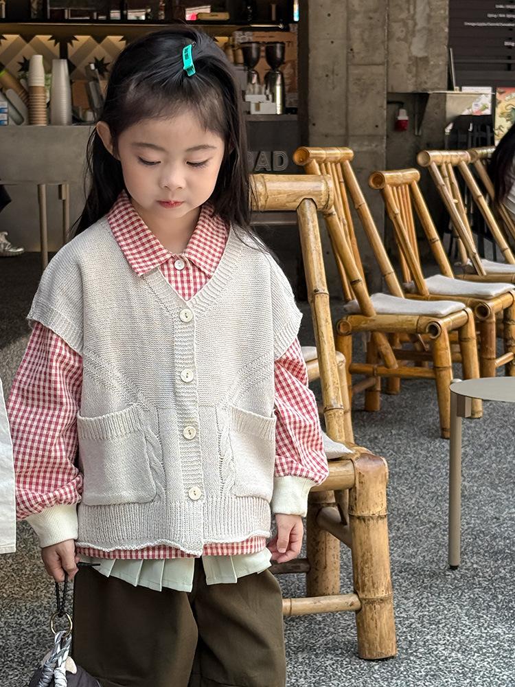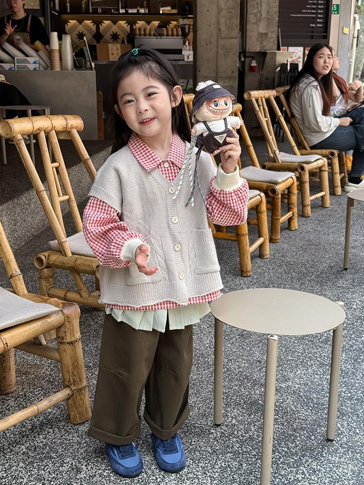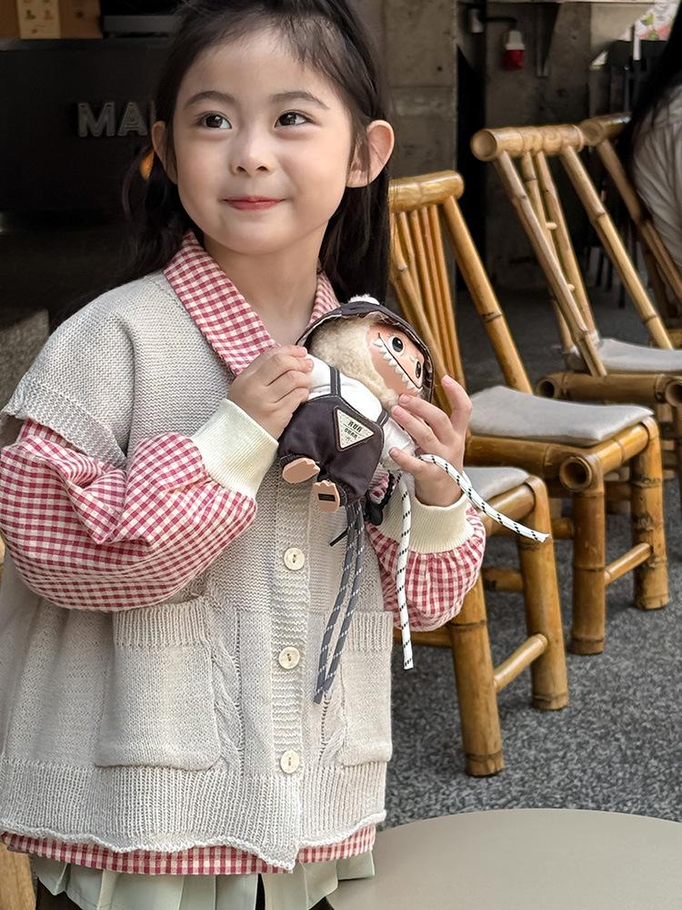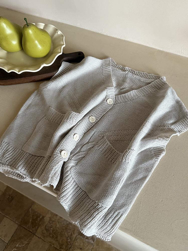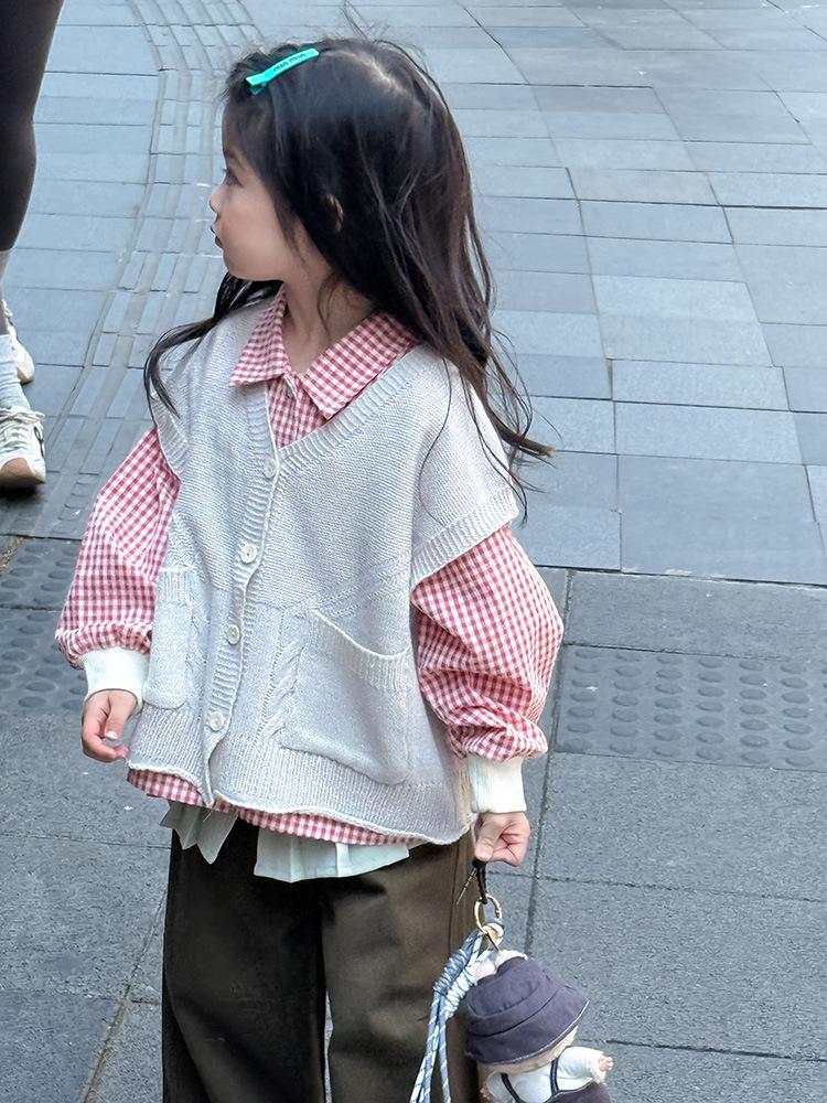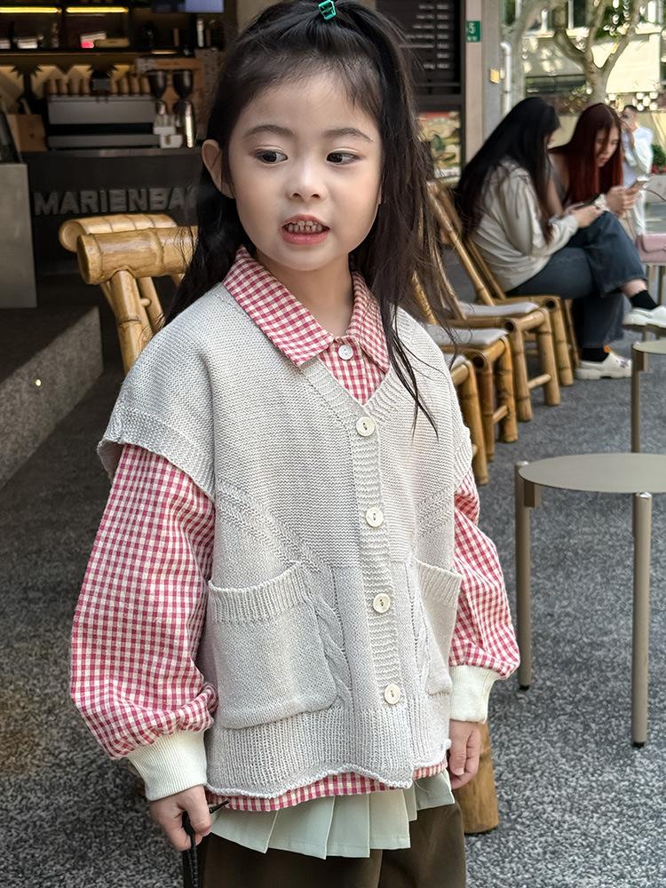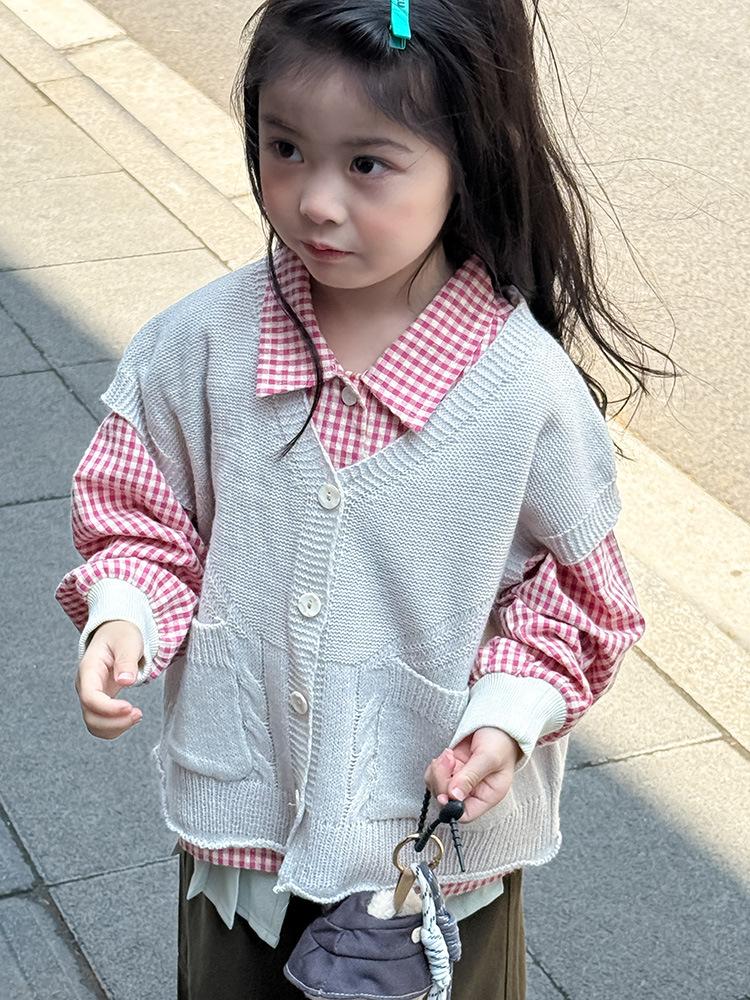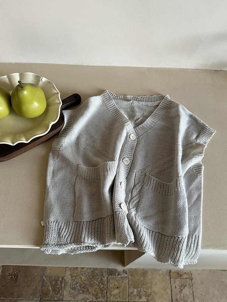 Ropa Infantil Huzhou Zhili 2025 Estilo Coreano Chaleco de Punto Blanco Roto para Niñas Cárdigan de Punto de Pecho Sencillo Ropa Exterior para Niños