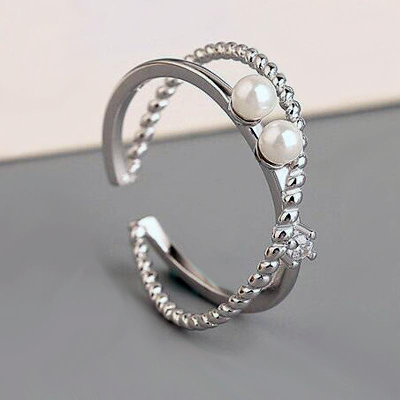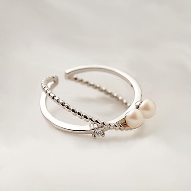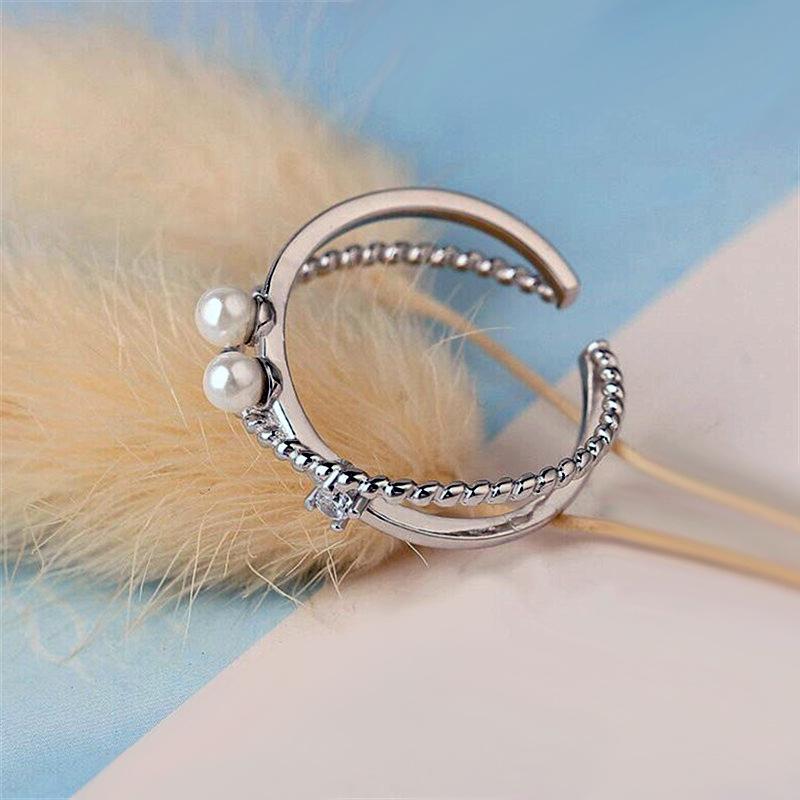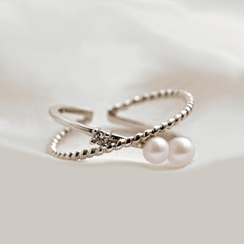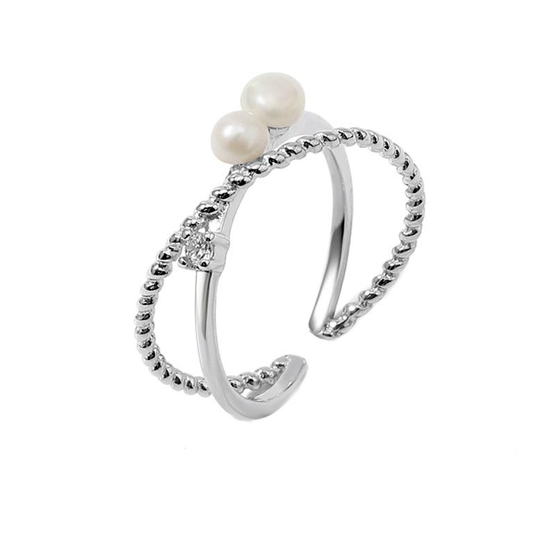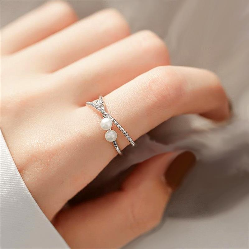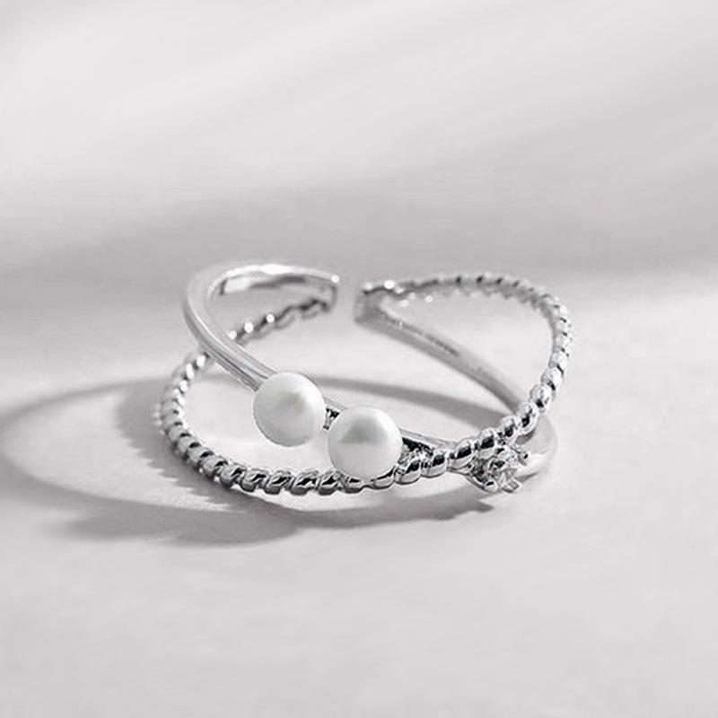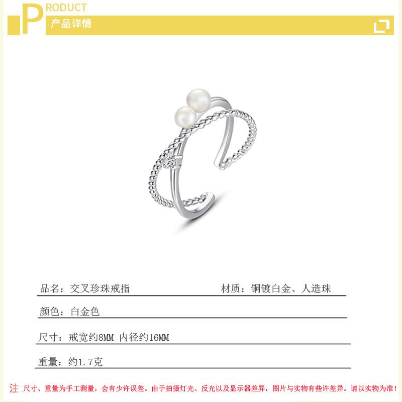 Anillo cruzado de perlas Han Dong puerta moda temperamento celebridad de internet personalidad estilo frío hip hop geométrico anillo abierto