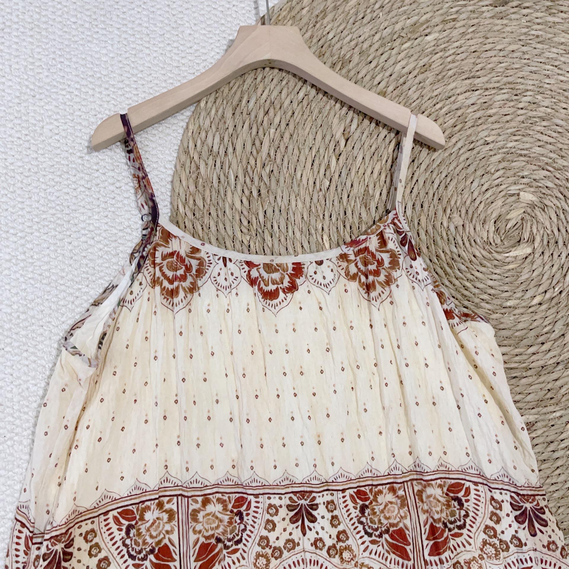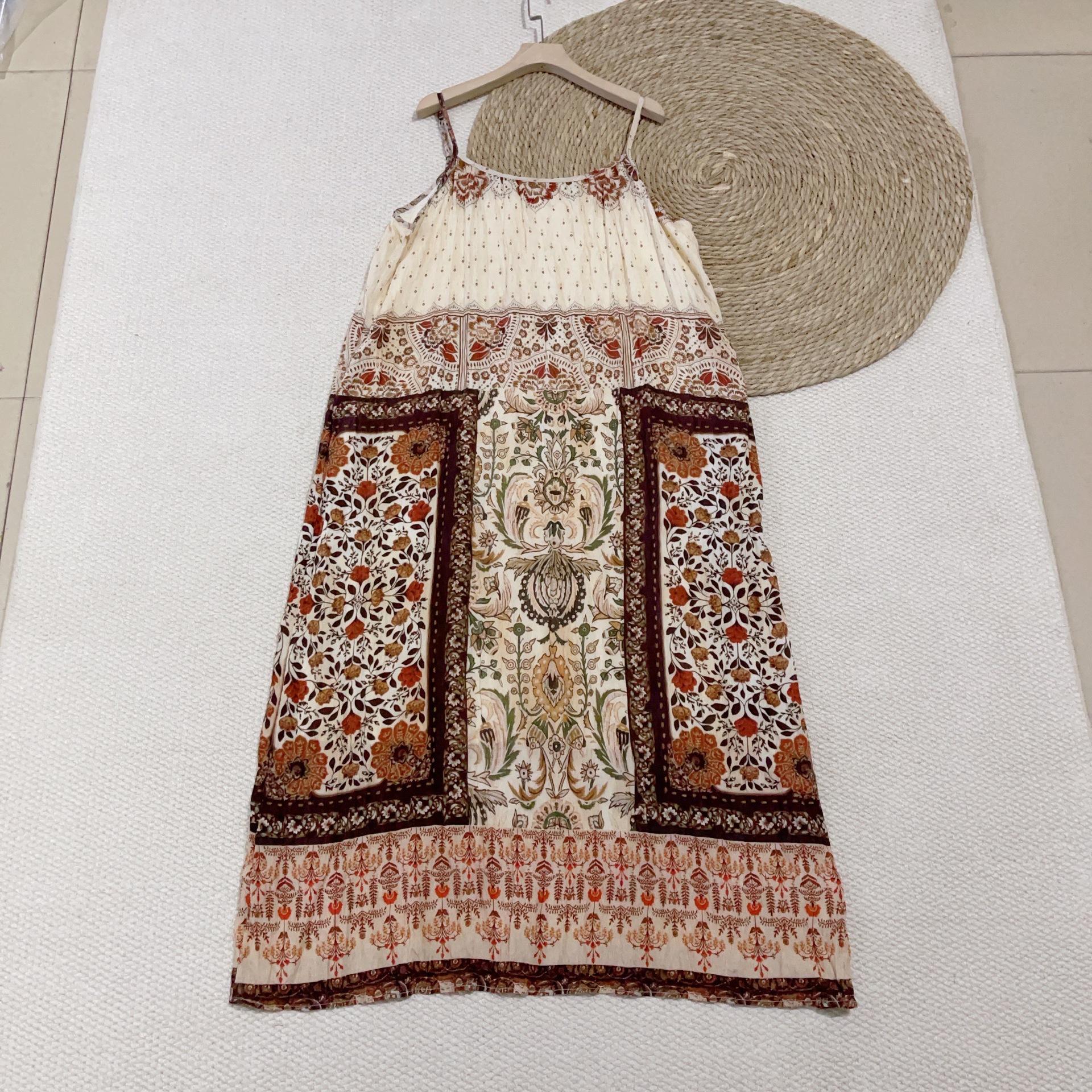Vestido Bohemio de Verano 2025 Estilo Étnico Estampado de Posición Vestido Estilo Vacacional Vestido de Tirantes Espagueti