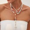 Collar multicapa apilado de estilo hip-hop europeo y americano con cuentas de perlas y cadena cruzada para clavícula, estilo punk Spice Girl, para mujer.
