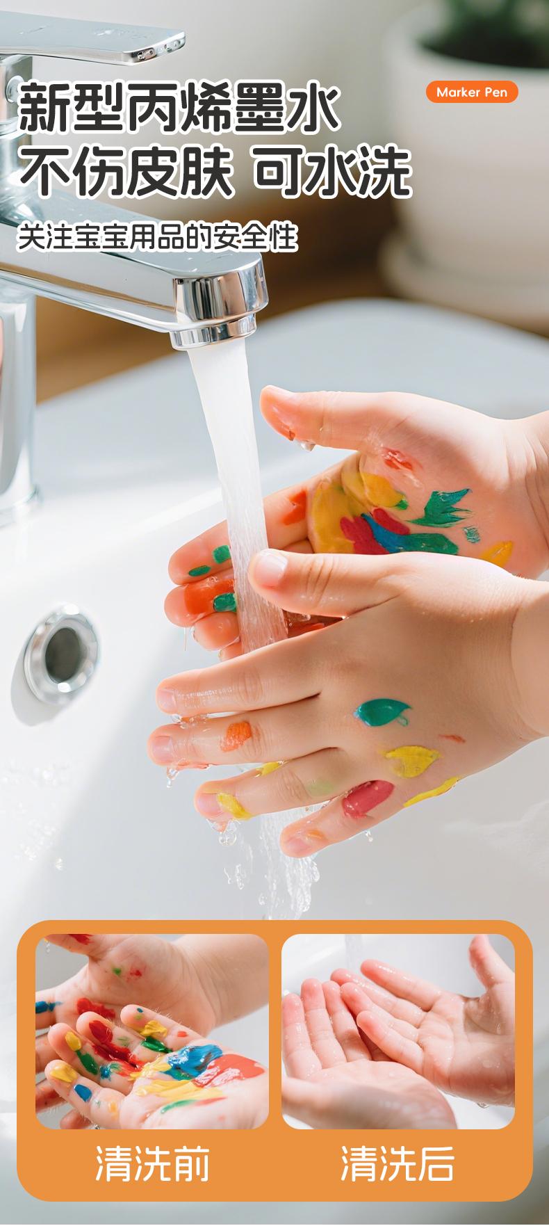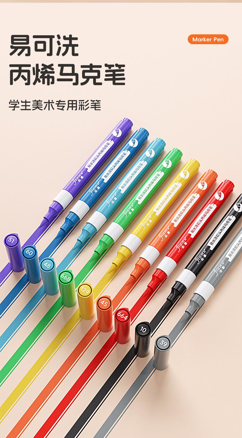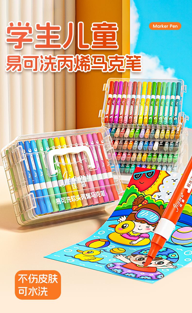 Marcador Acrílico Fácil de Lavar Pluma de Acuarela de Punta Suave para Estudiantes de Primaria Arte Opaco 48 Colores Jardín de Niños Lavable
