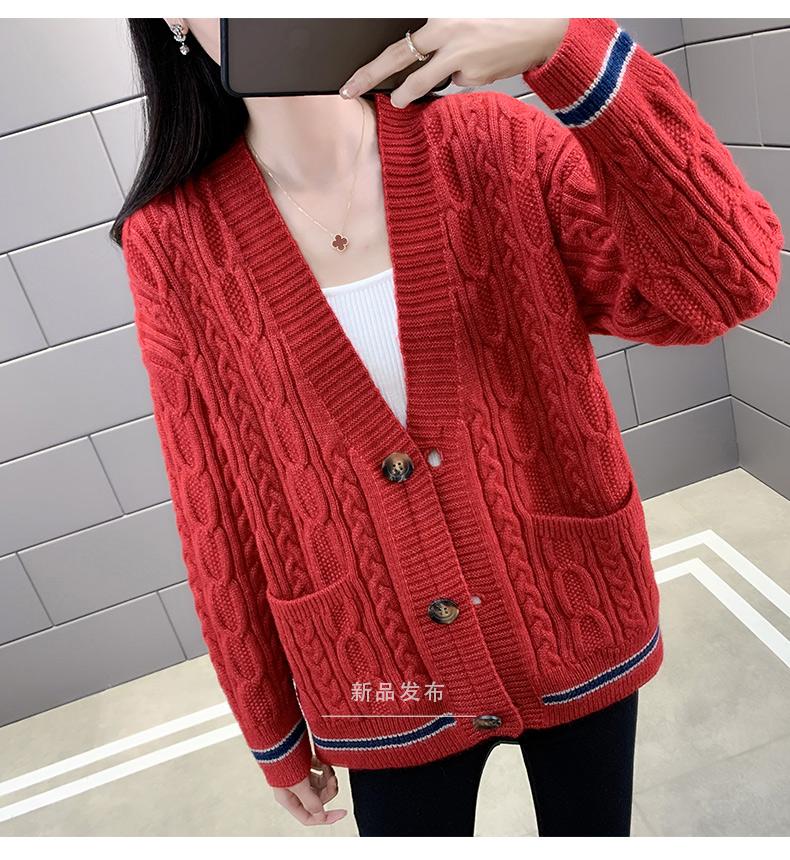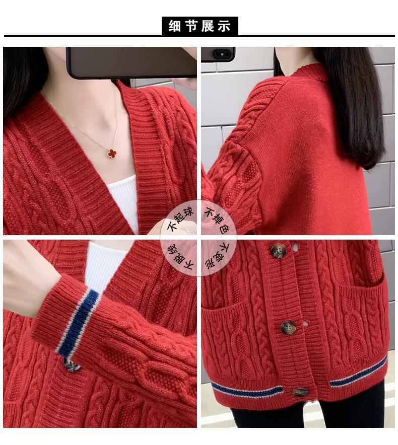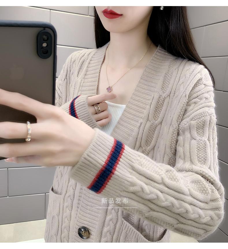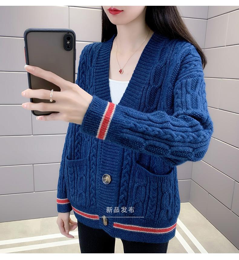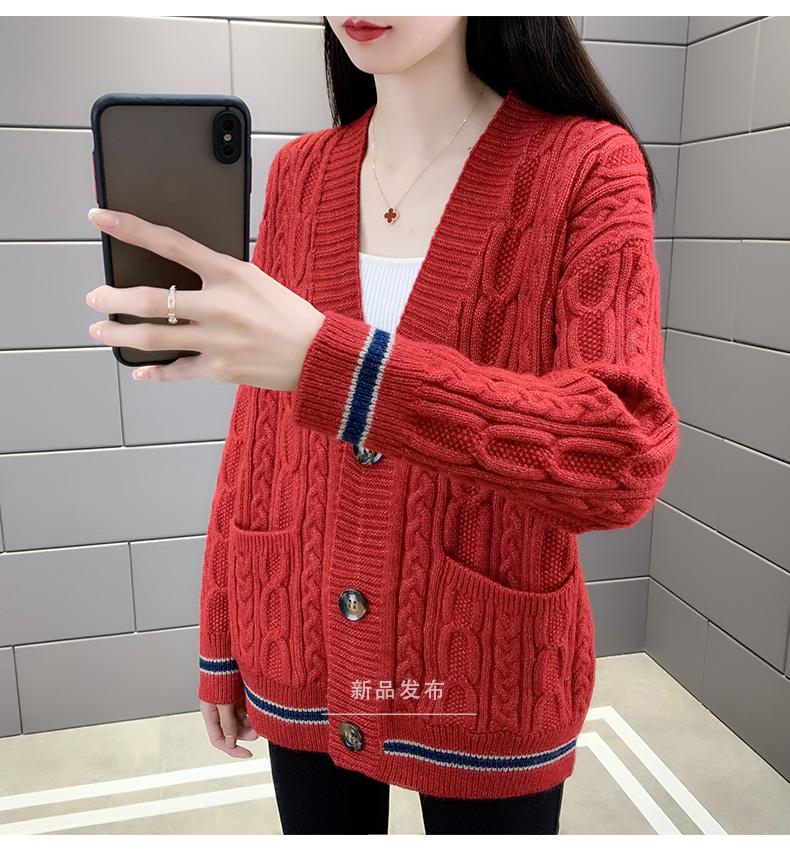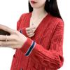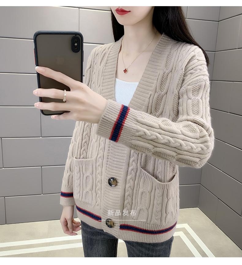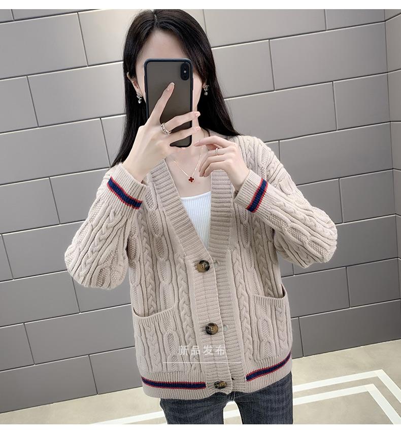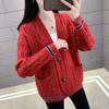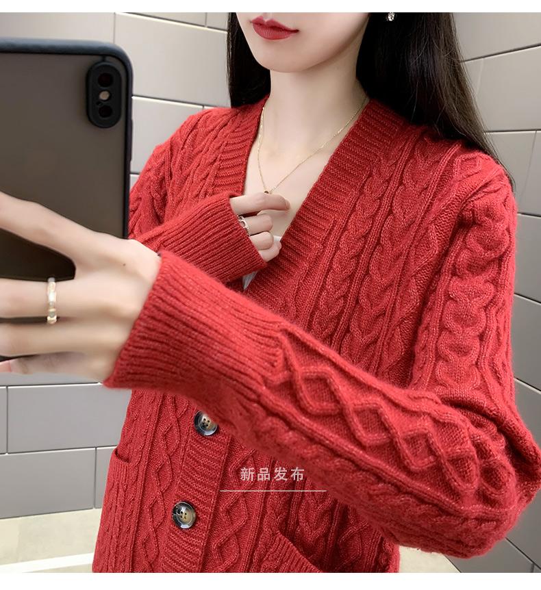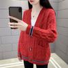 2025 Primavera Otoño Invierno Nuevo Suéter Holgado Grueso con Bolsillo Chaqueta Cárdigan de Punto de Botonadura Sencilla Top de Trenzas para Mujer