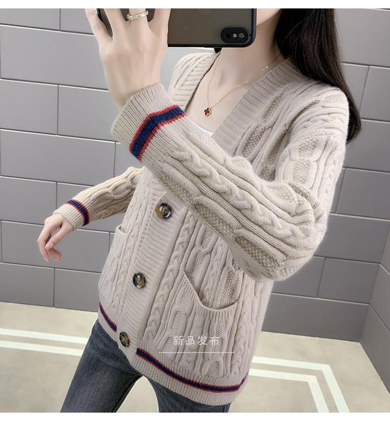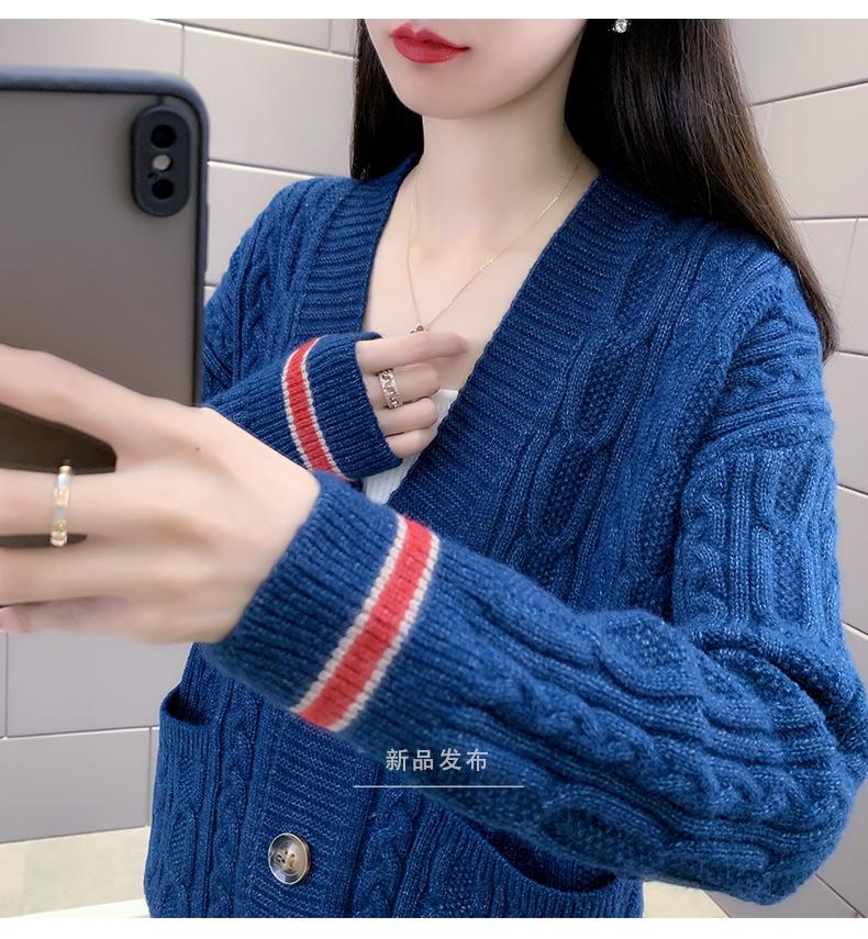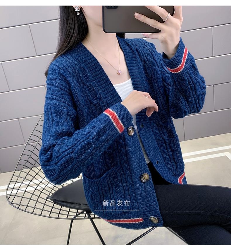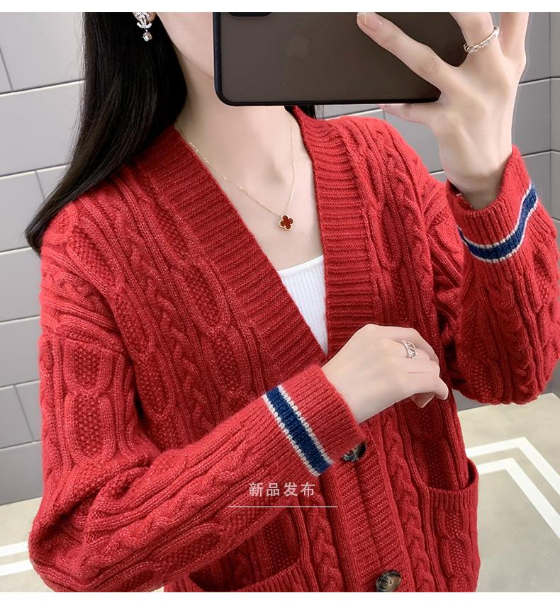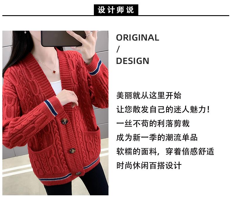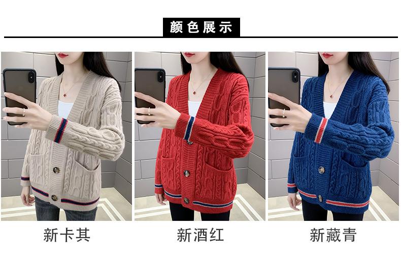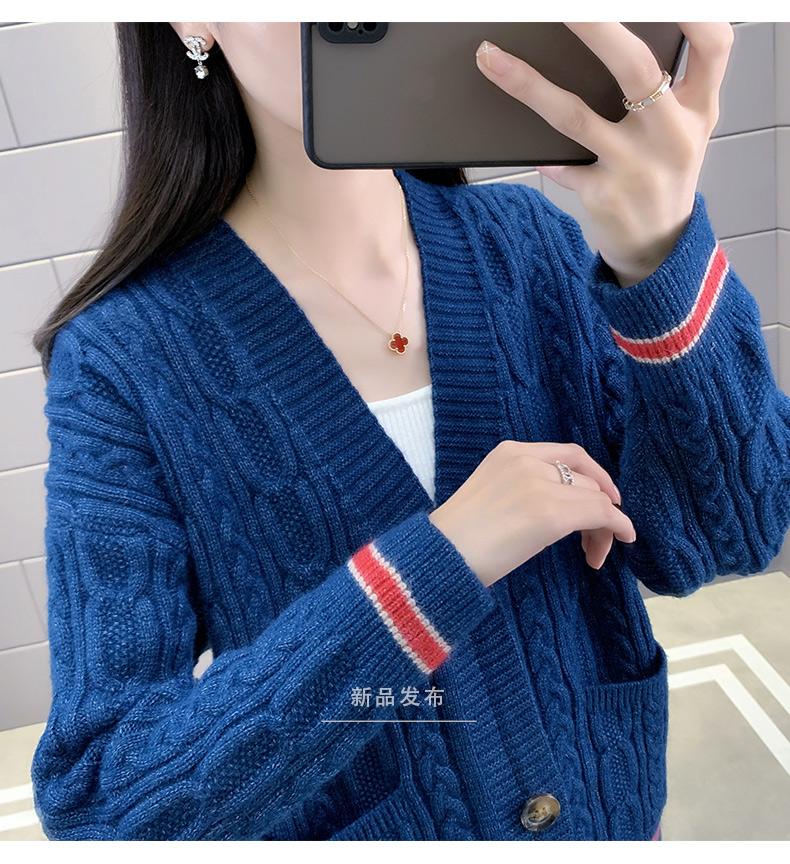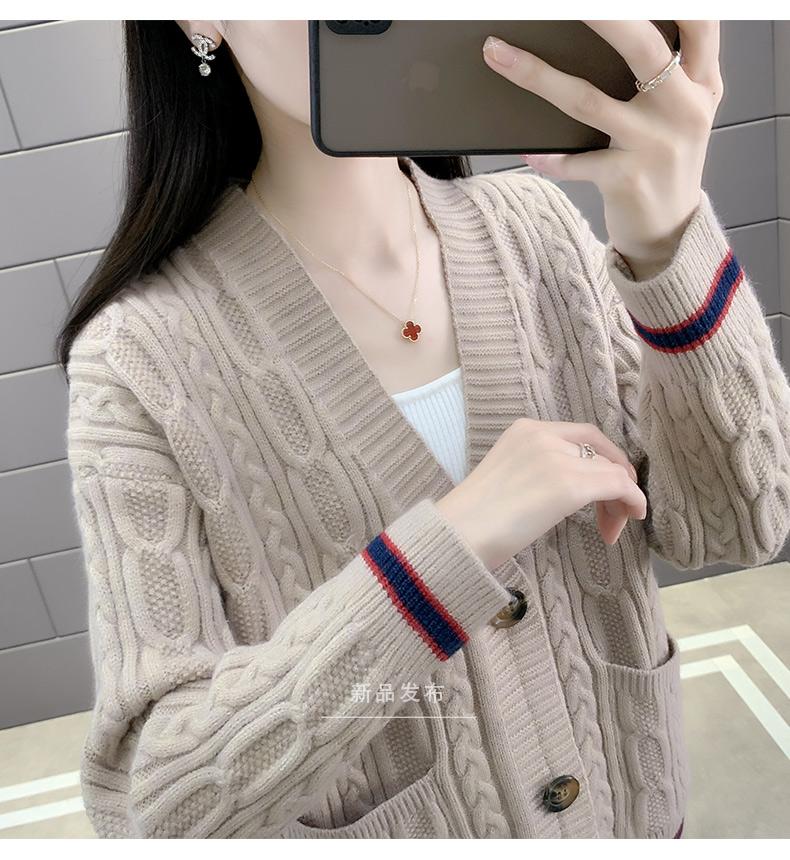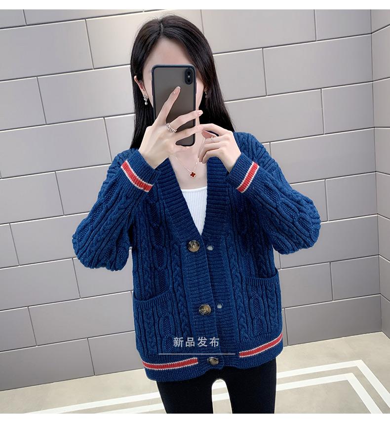 2025 Primavera Otoño Invierno Nuevo Suéter Holgado Grueso con Bolsillo Chaqueta Cárdigan de Punto de Botonadura Sencilla Top de Trenzas para Mujer