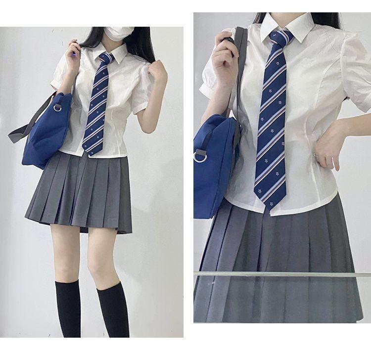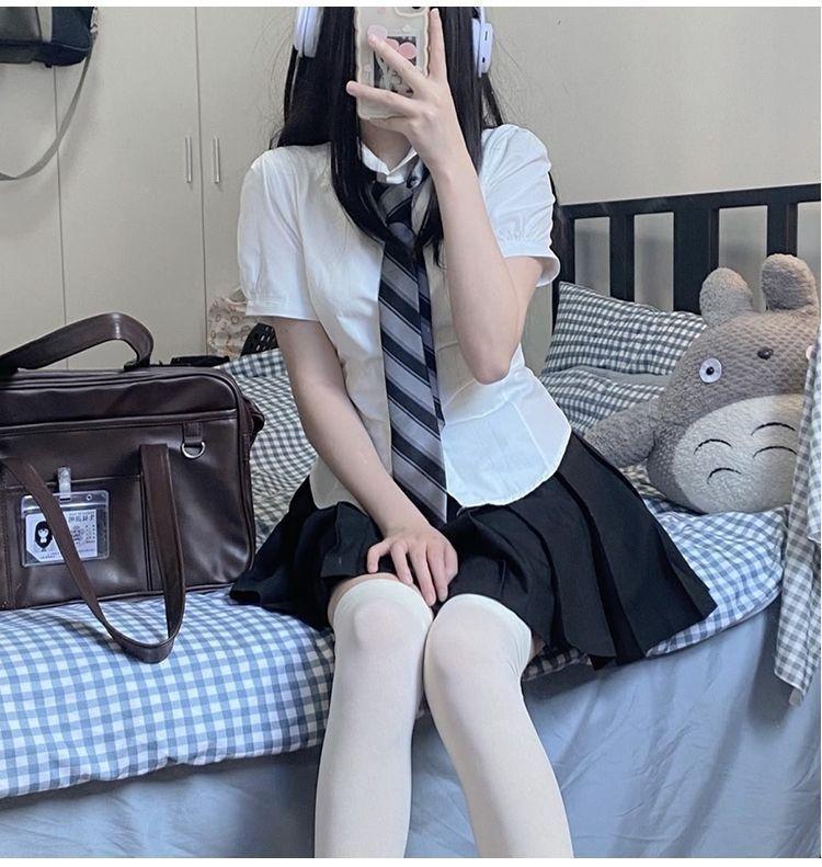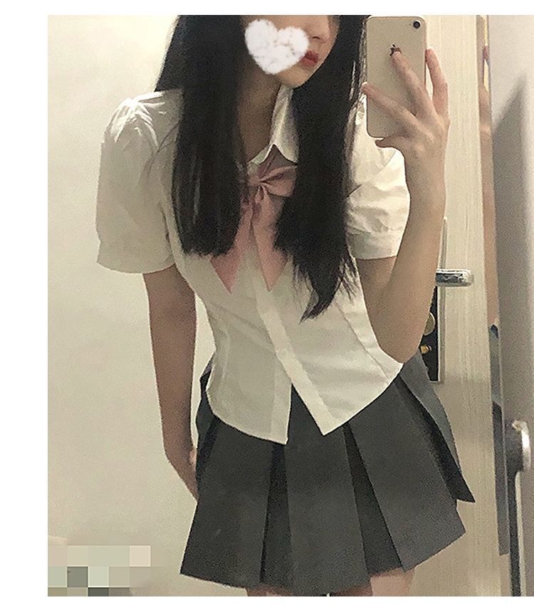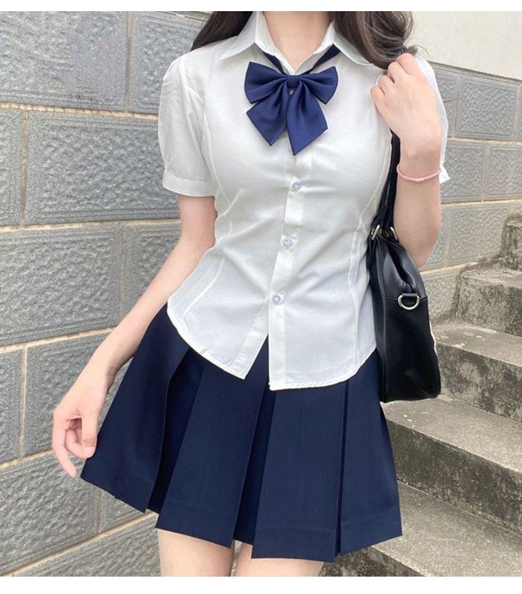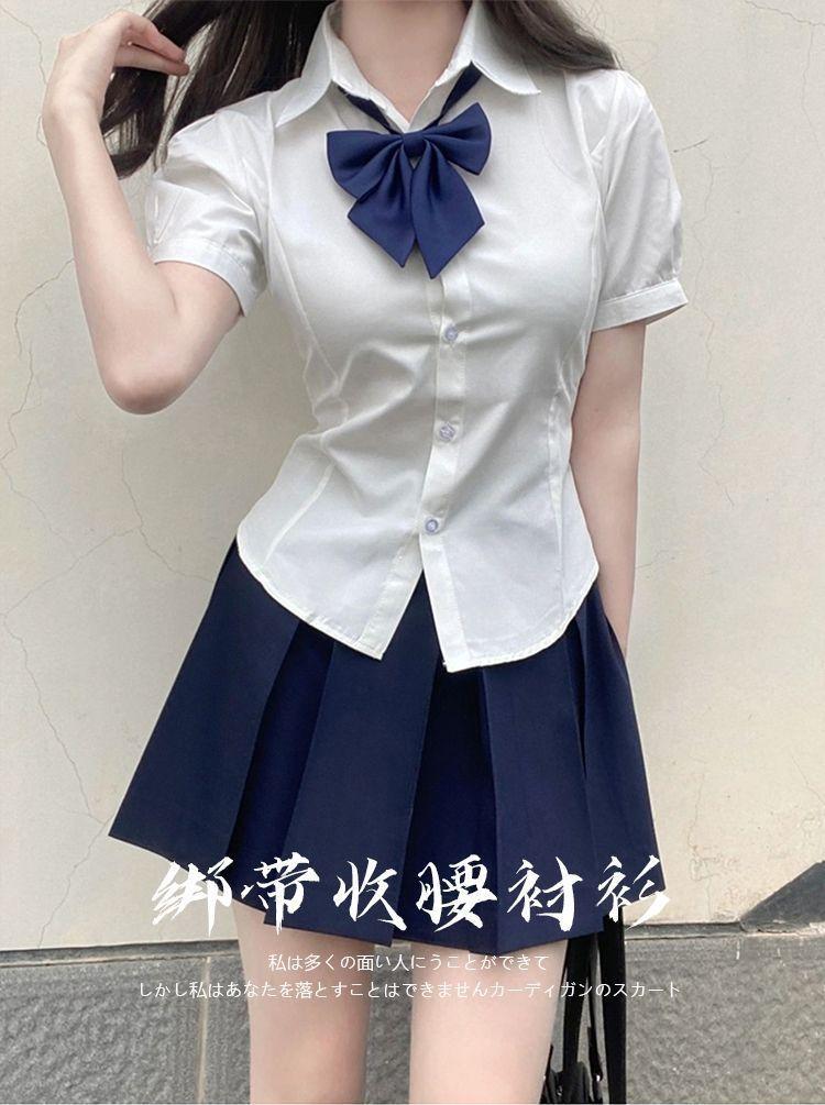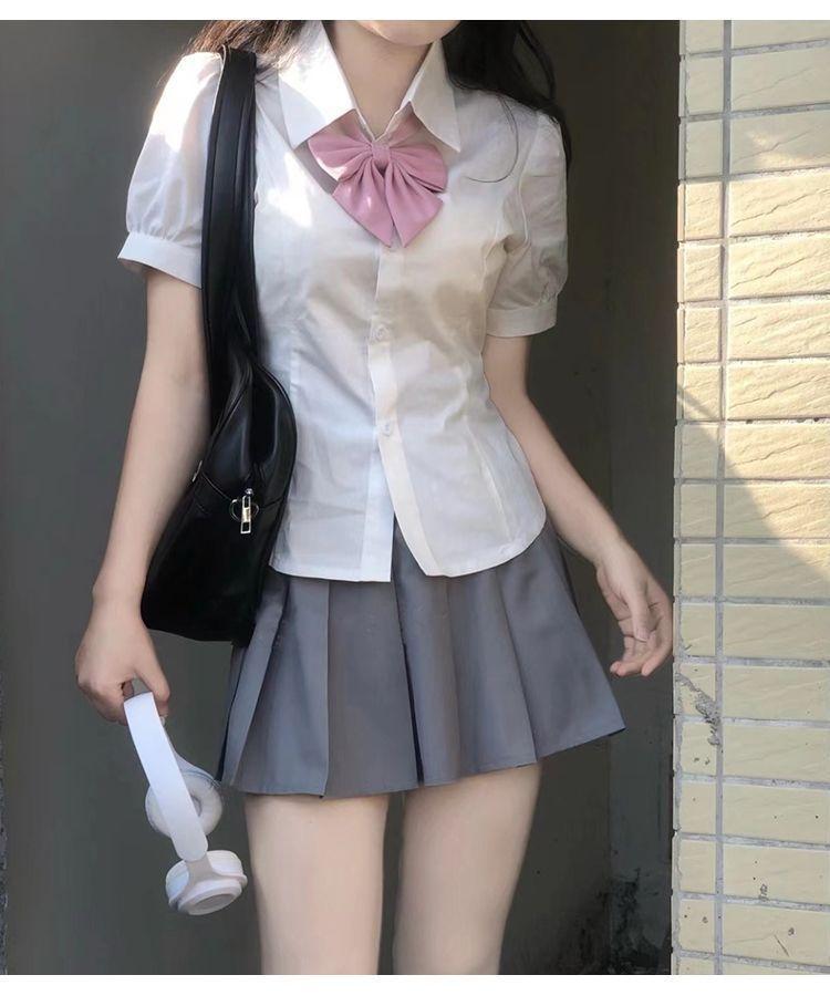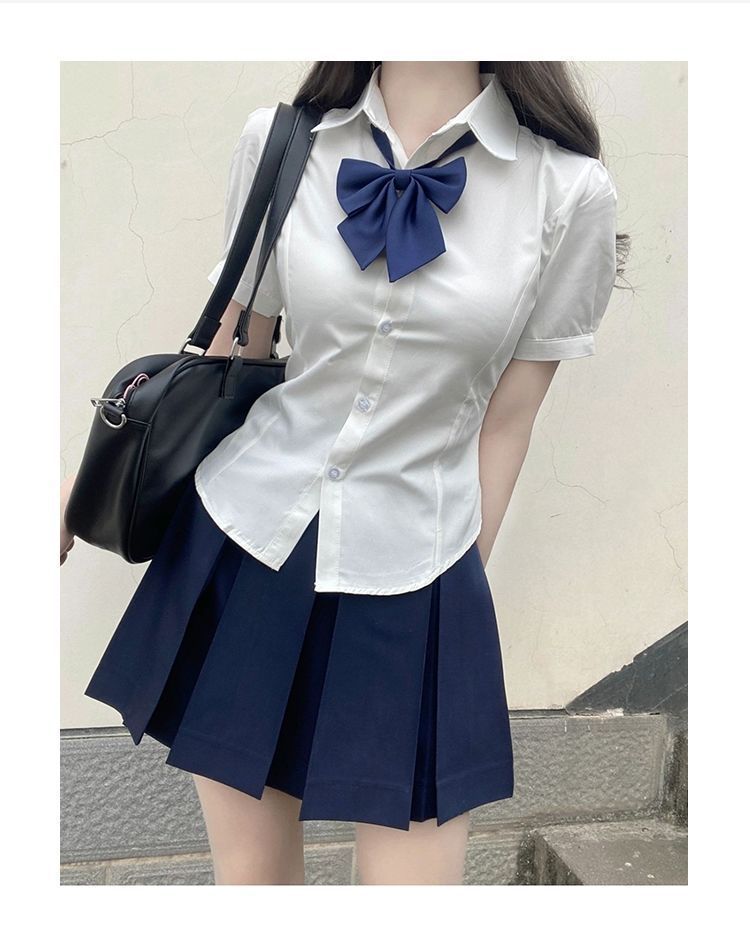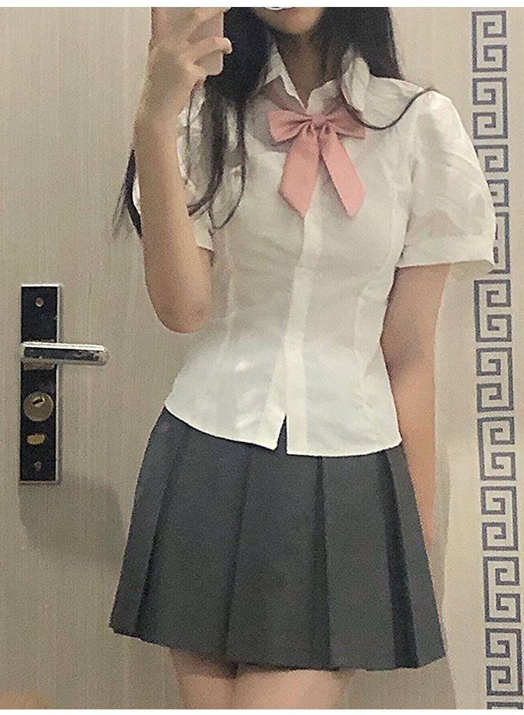 Jk Cintura Camisa Uniforme Top Manga Corta Original Genuino Verano Estilo Universitario Manga Burbuja Camisa Blanca traje