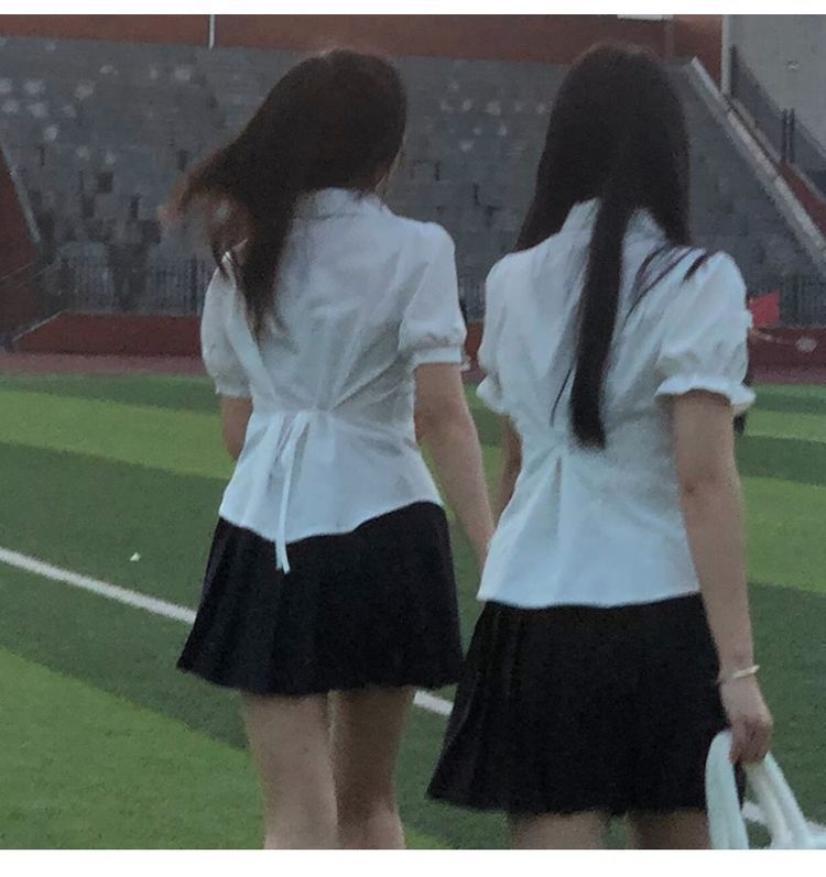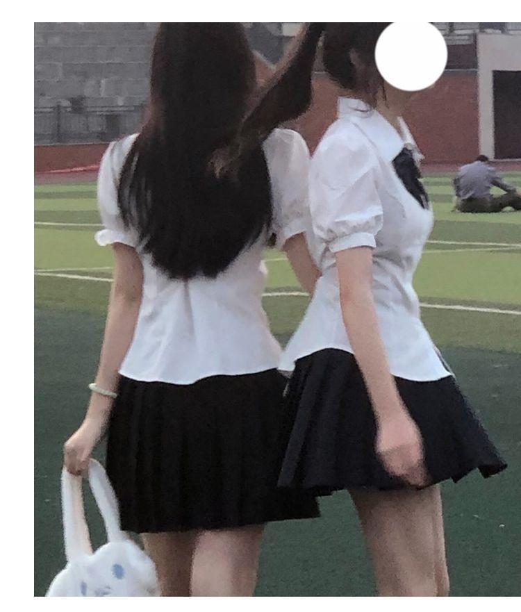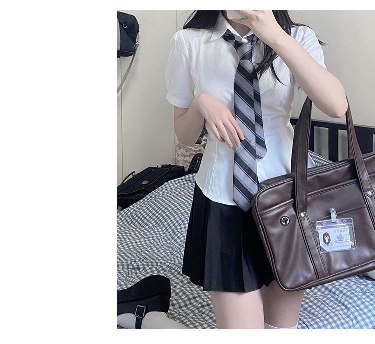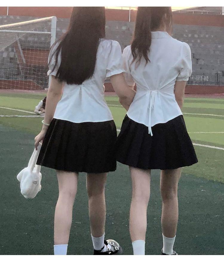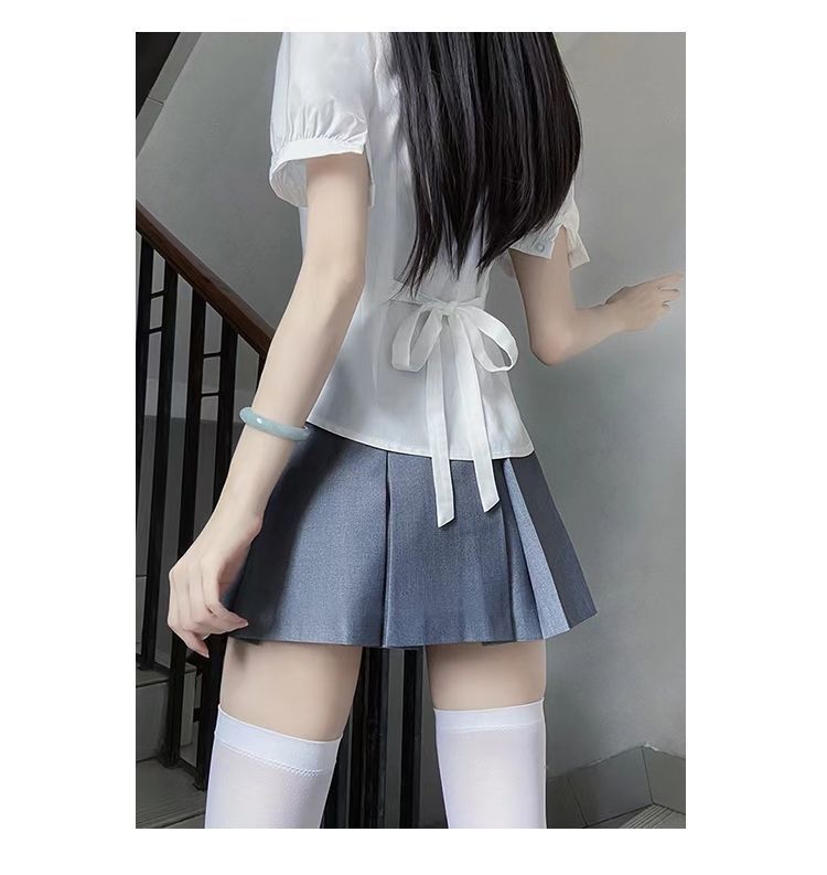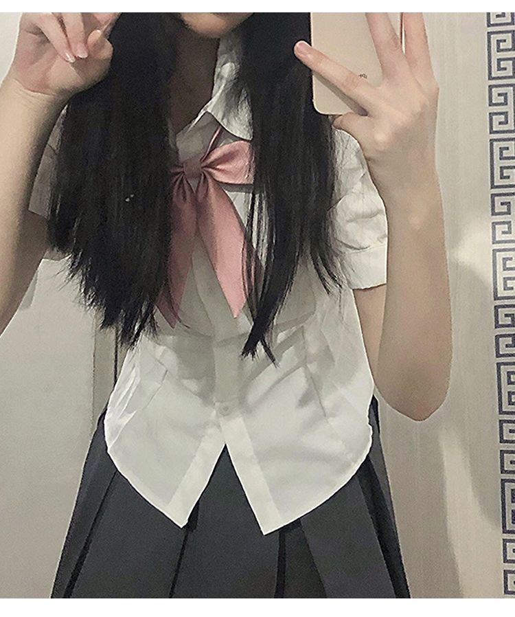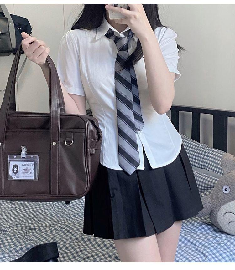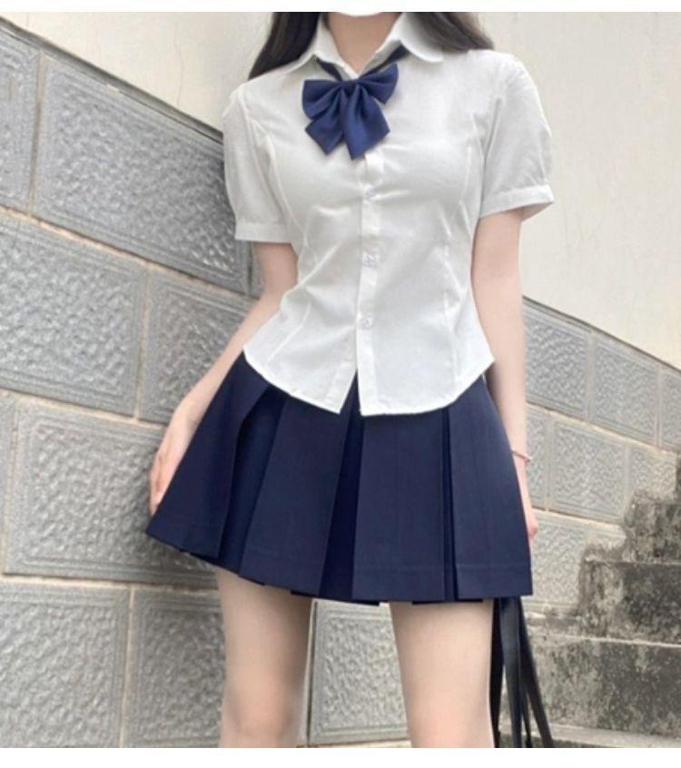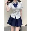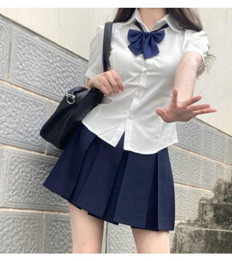 Jk Cintura Camisa Uniforme Top Manga Corta Original Genuino Verano Estilo Universitario Manga Burbuja Camisa Blanca traje