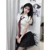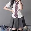 Suit waist short sleeves + gray pleated skirt with red striped tie