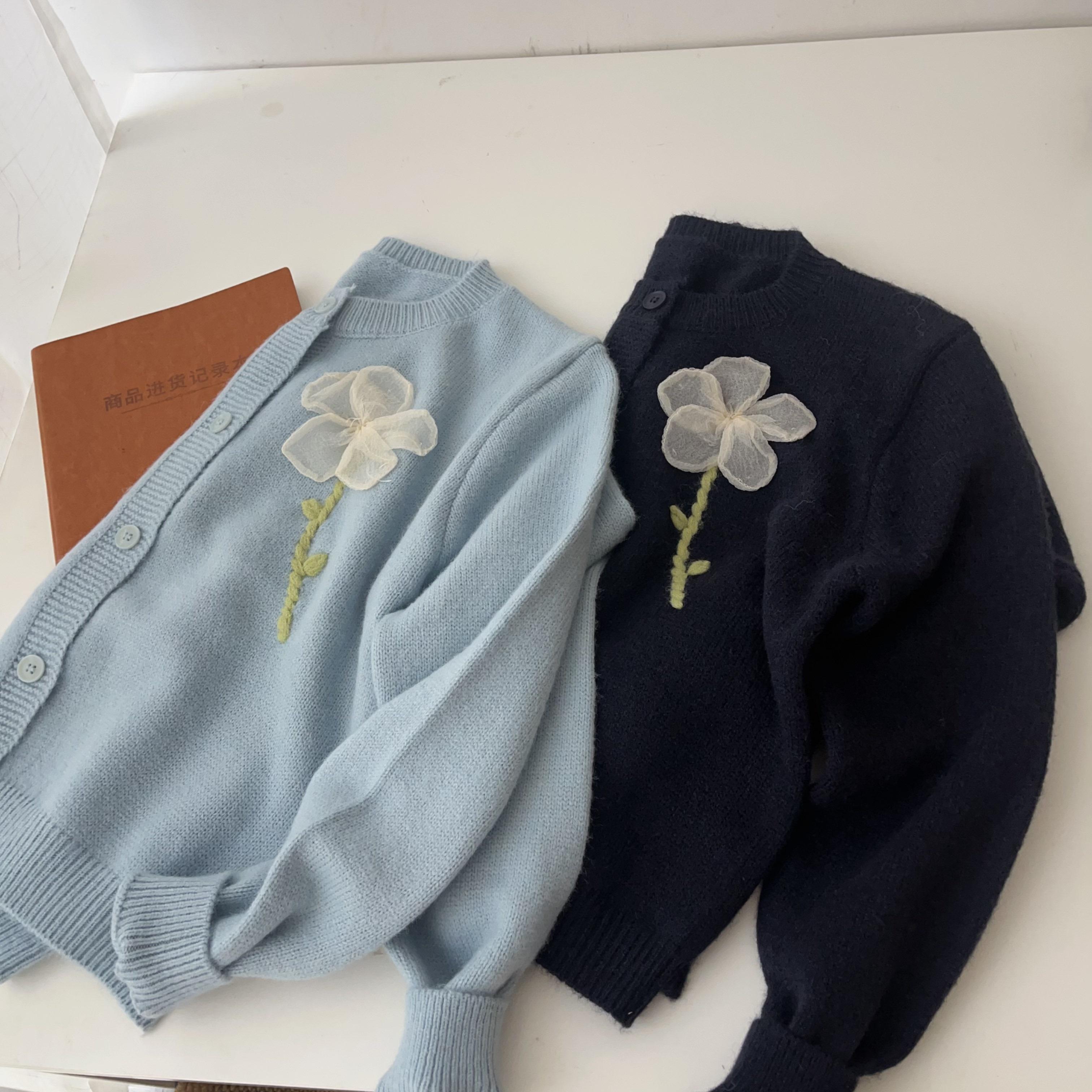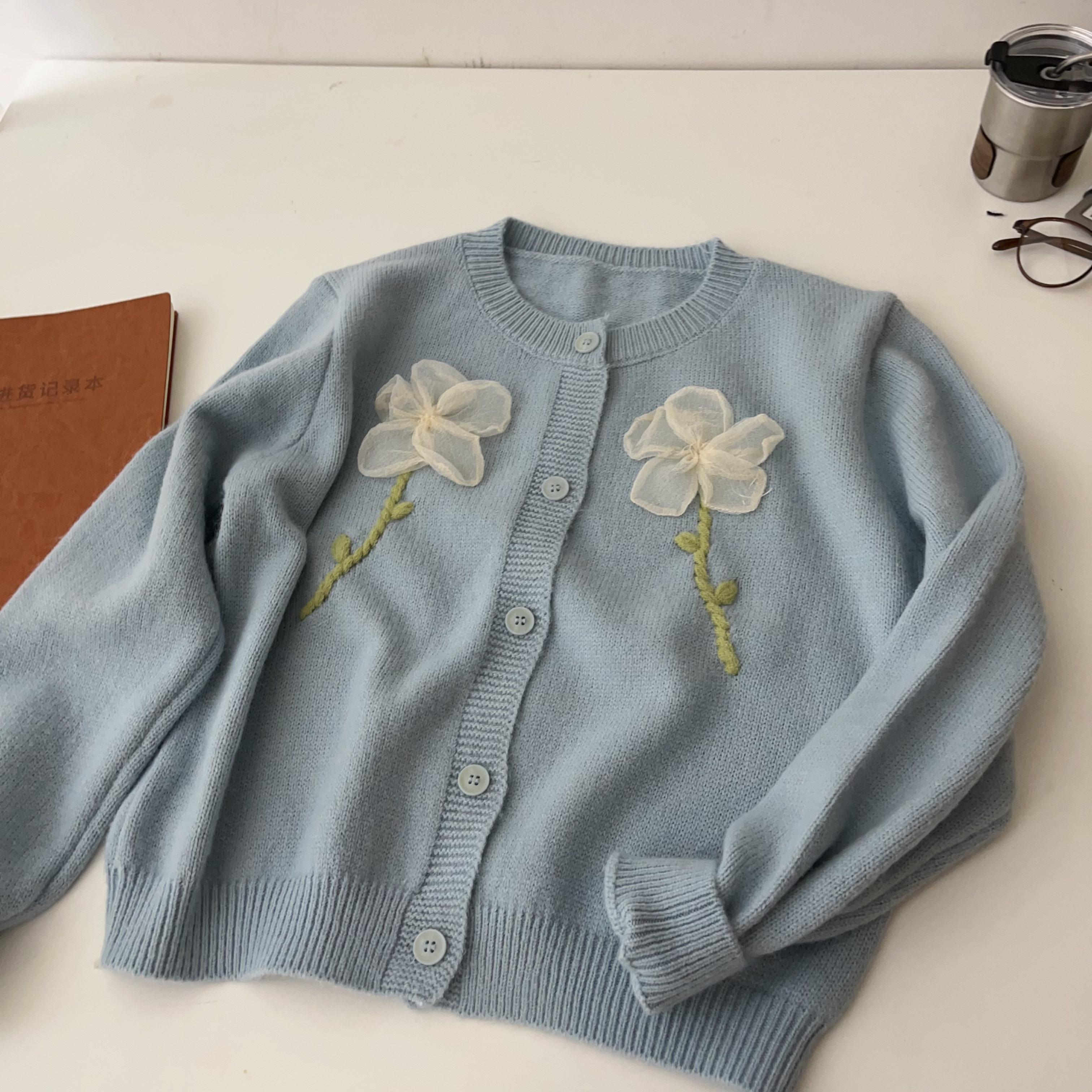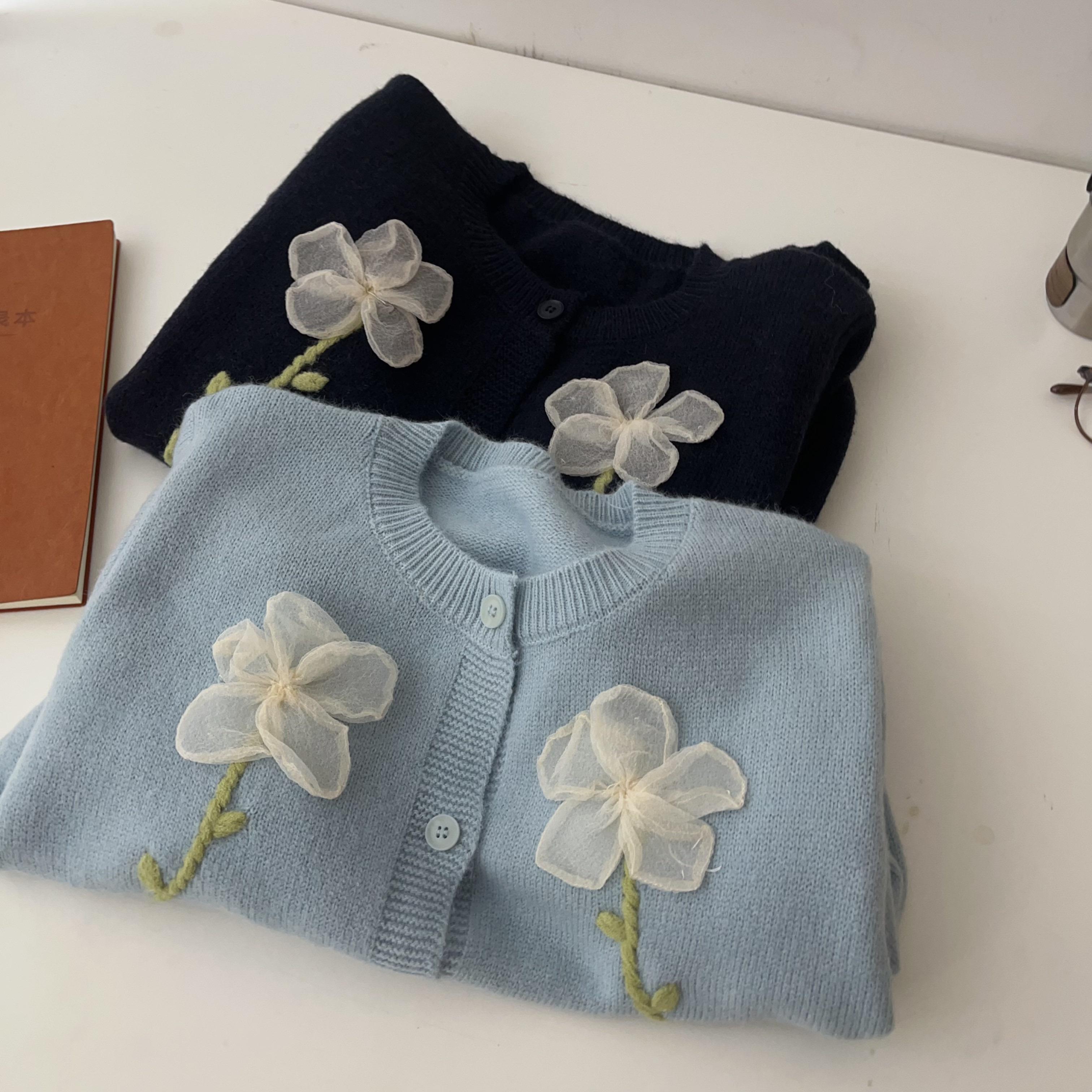 Cárdigan de Punto Simple con Flor 3D Estilo Coreano Otoño/Invierno 2025 para Mujer Suelto Casual Versátil Abrigo Superior