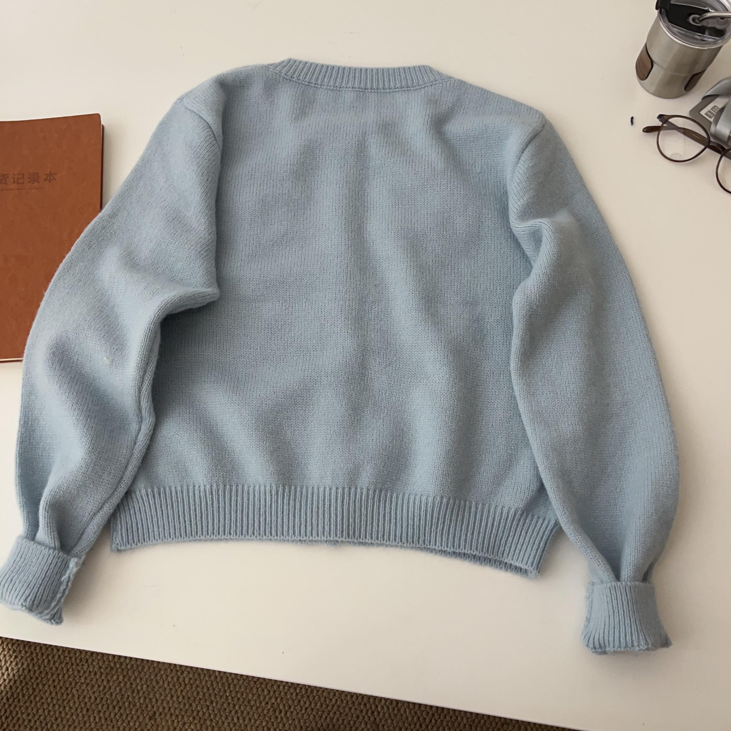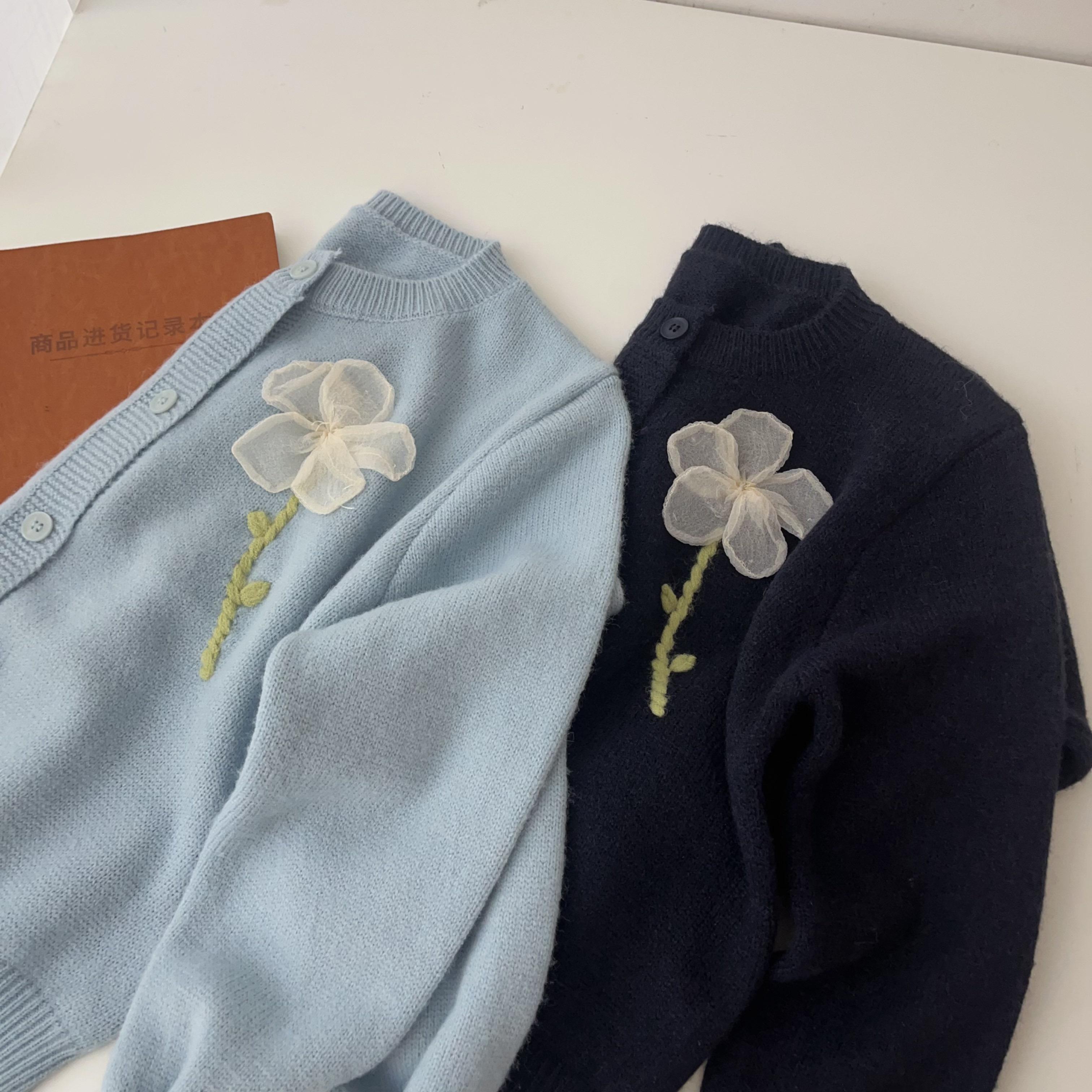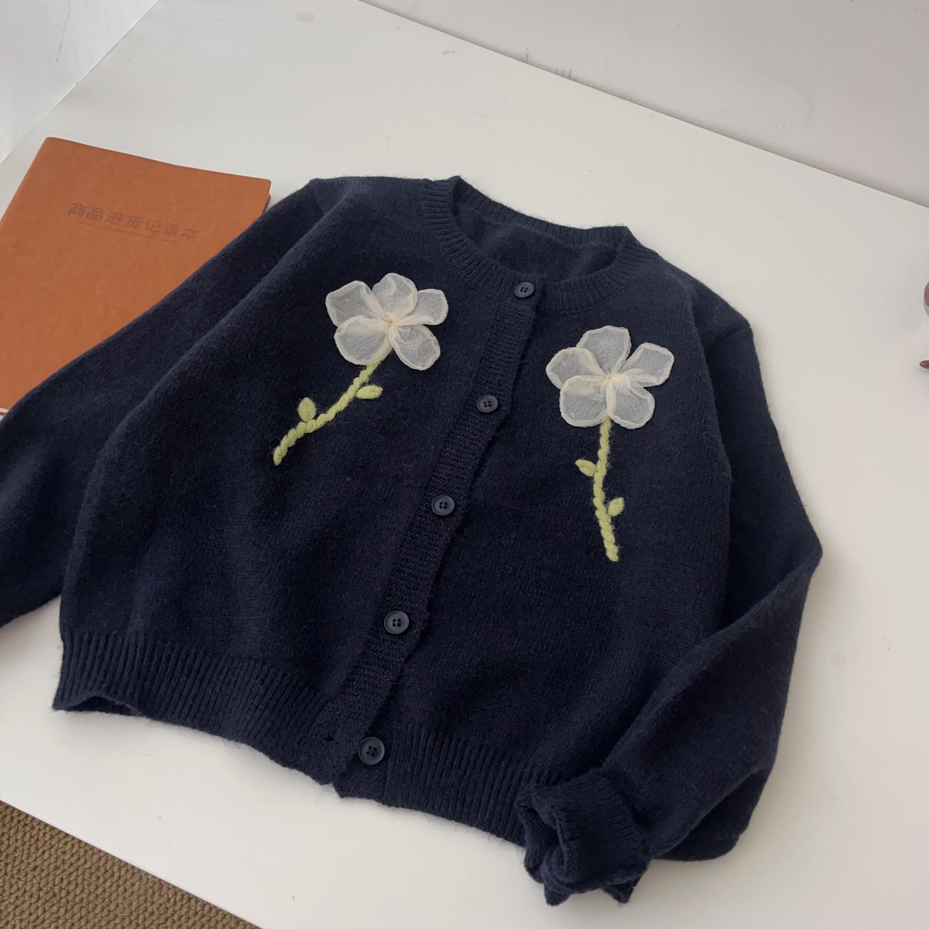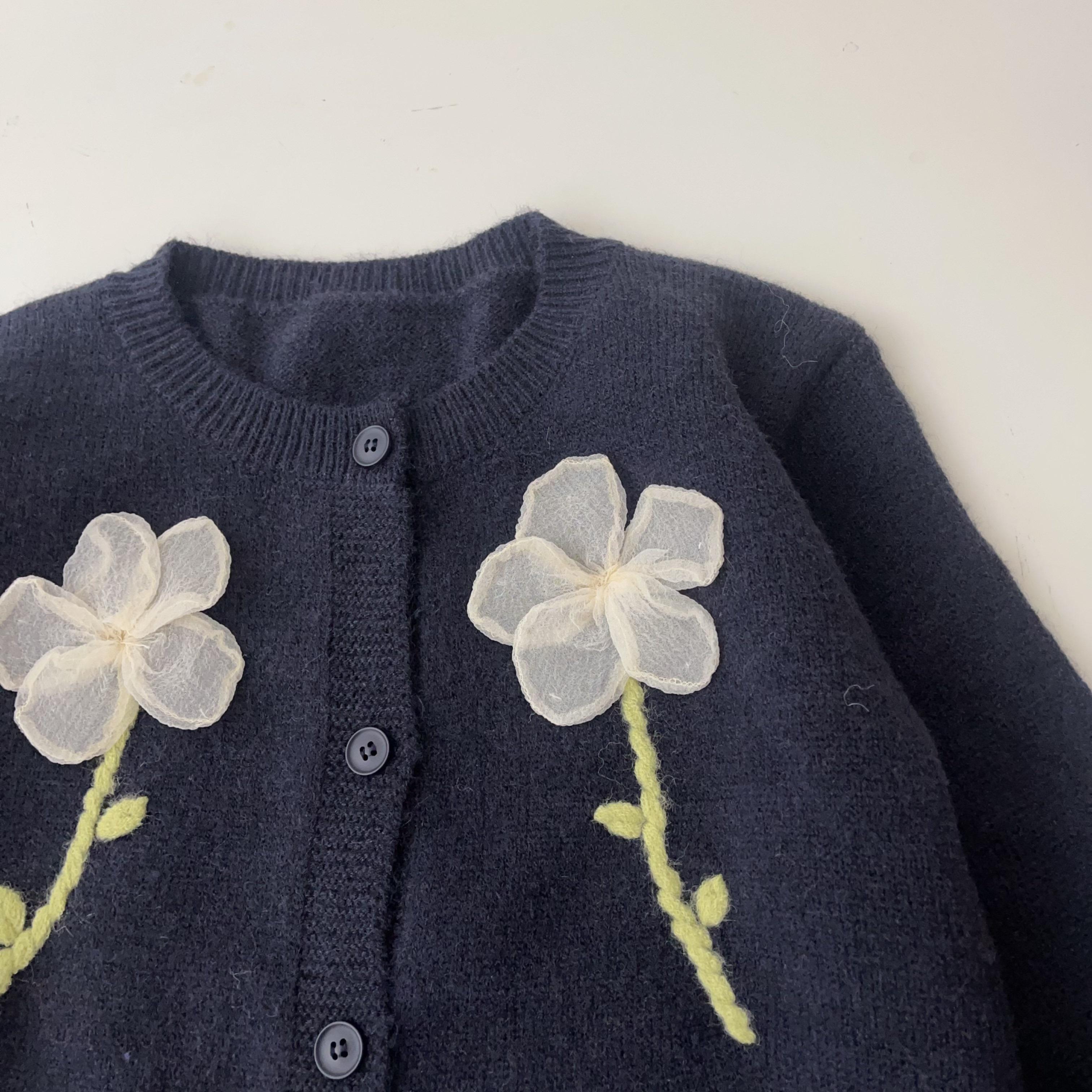 Cárdigan de Punto Simple con Flor 3D Estilo Coreano Otoño/Invierno 2025 para Mujer Suelto Casual Versátil Abrigo Superior