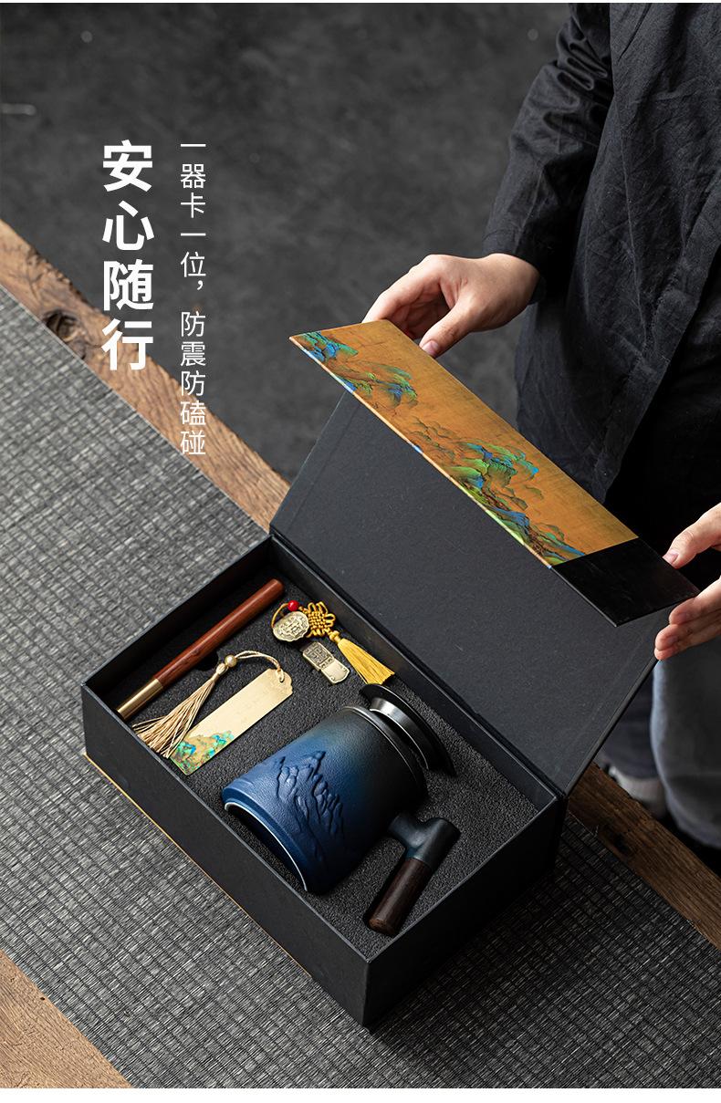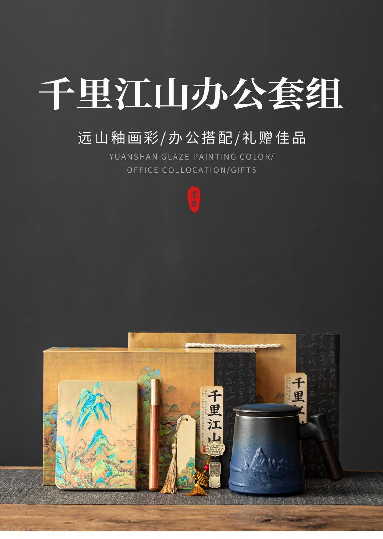 Qianli Jiangshan office Cup gift suit (gradient blue), Qianli Jiangshan office Cup + tea pot (gradient blue), ...