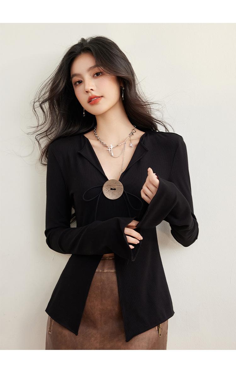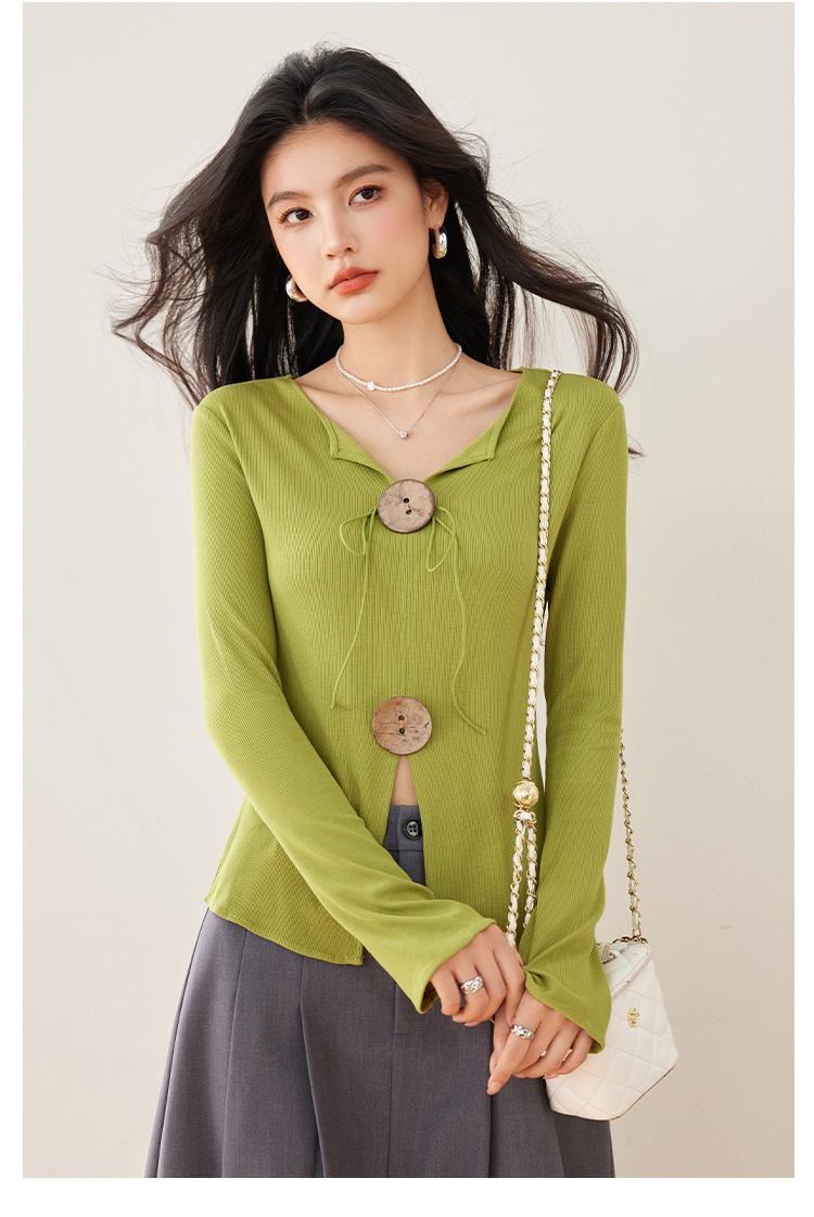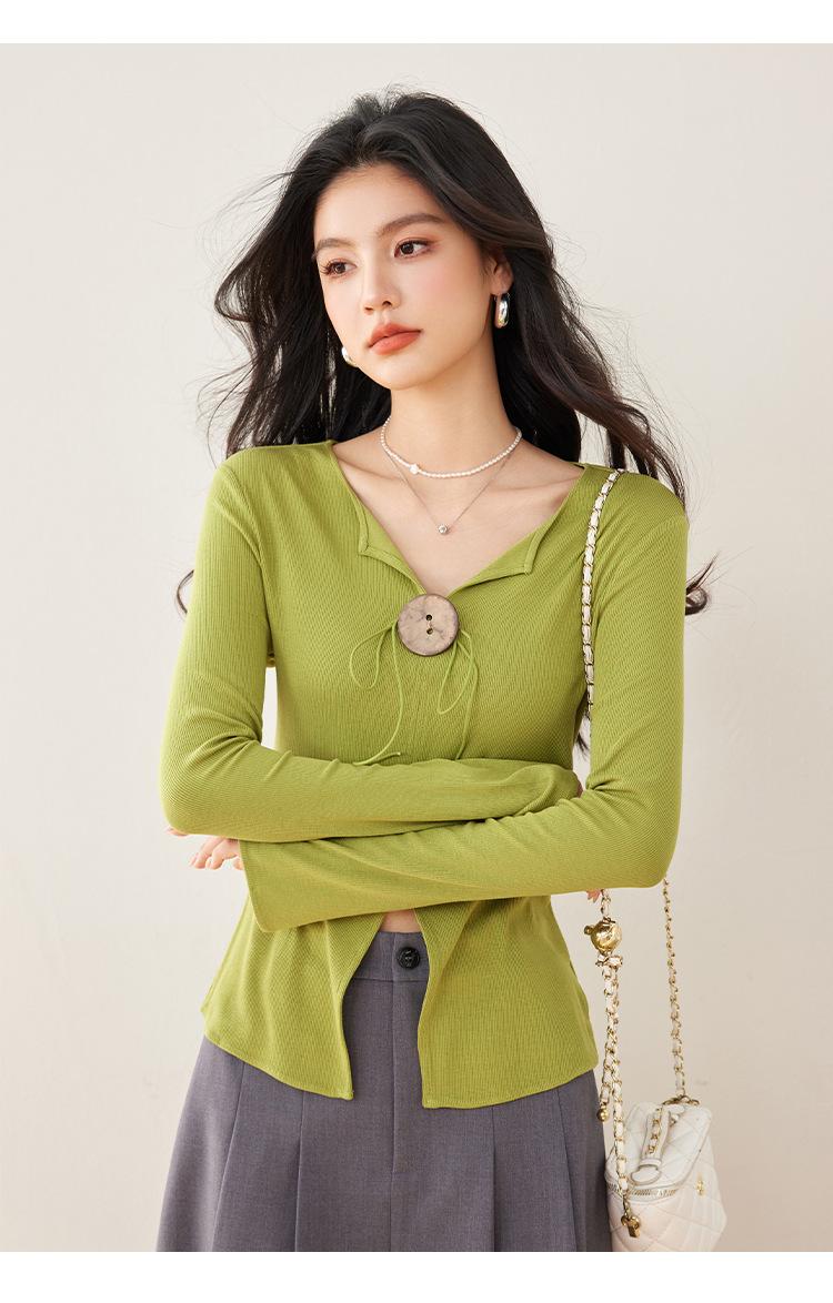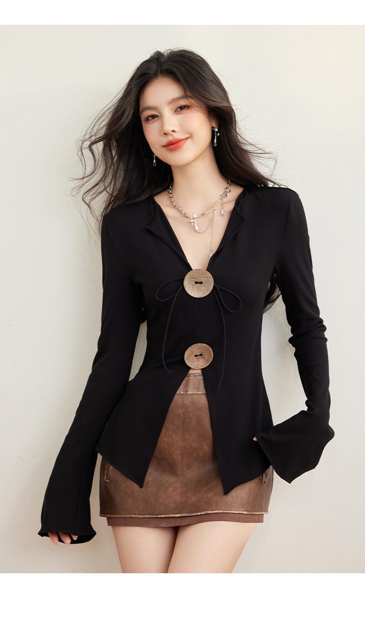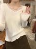 Suéter de Punto para Mujer con Sentido de Diseño de Moda Individual 2025 Cuello en V Adelgazante Retro Manga Larga Nicho Top de Alta Gama