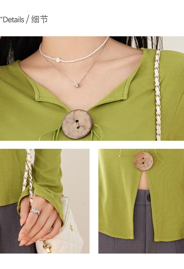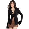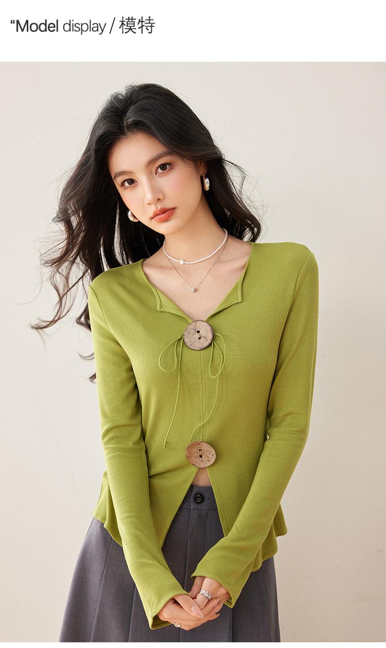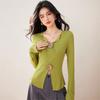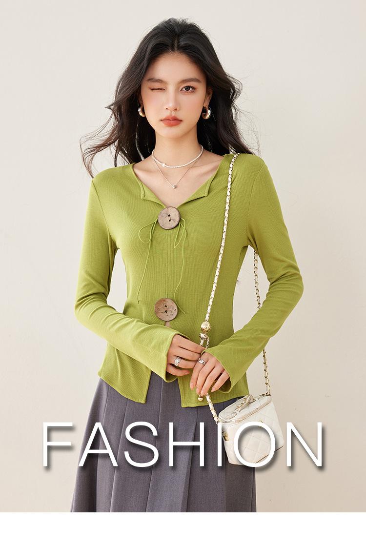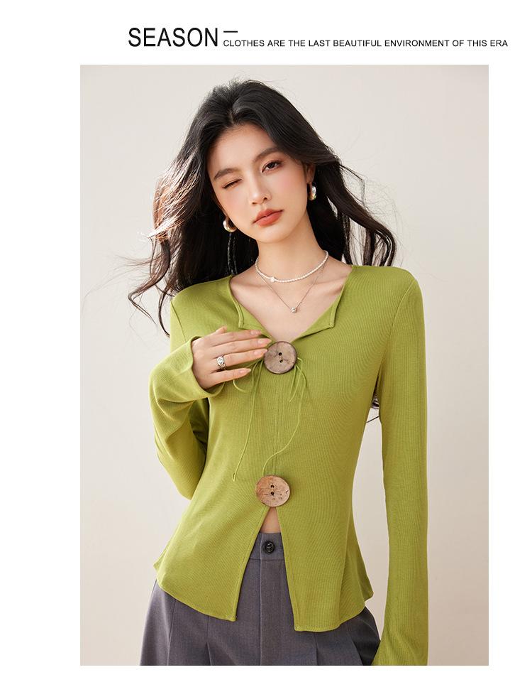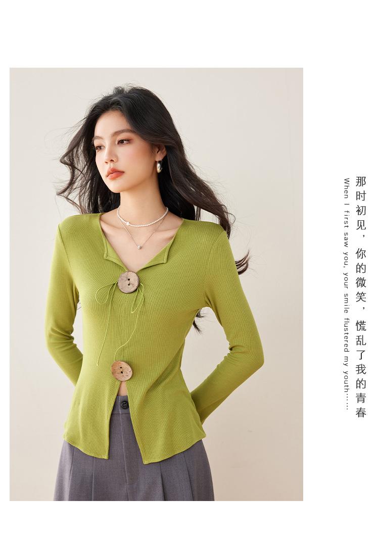 Suéter de Punto para Mujer con Sentido de Diseño de Moda Individual 2025 Cuello en V Adelgazante Retro Manga Larga Nicho Top de Alta Gama