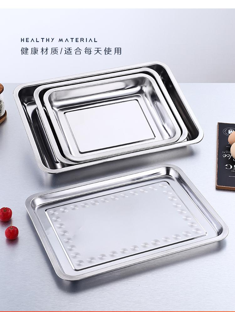 Plato Cuadrado de Acero Inoxidable Bandeja Rectangular Plato para Pescado Horneado Doméstico Plato para Vaporizar Plato para Dumplings Plato para Barbacoa Plato para Cena Plato Comercial