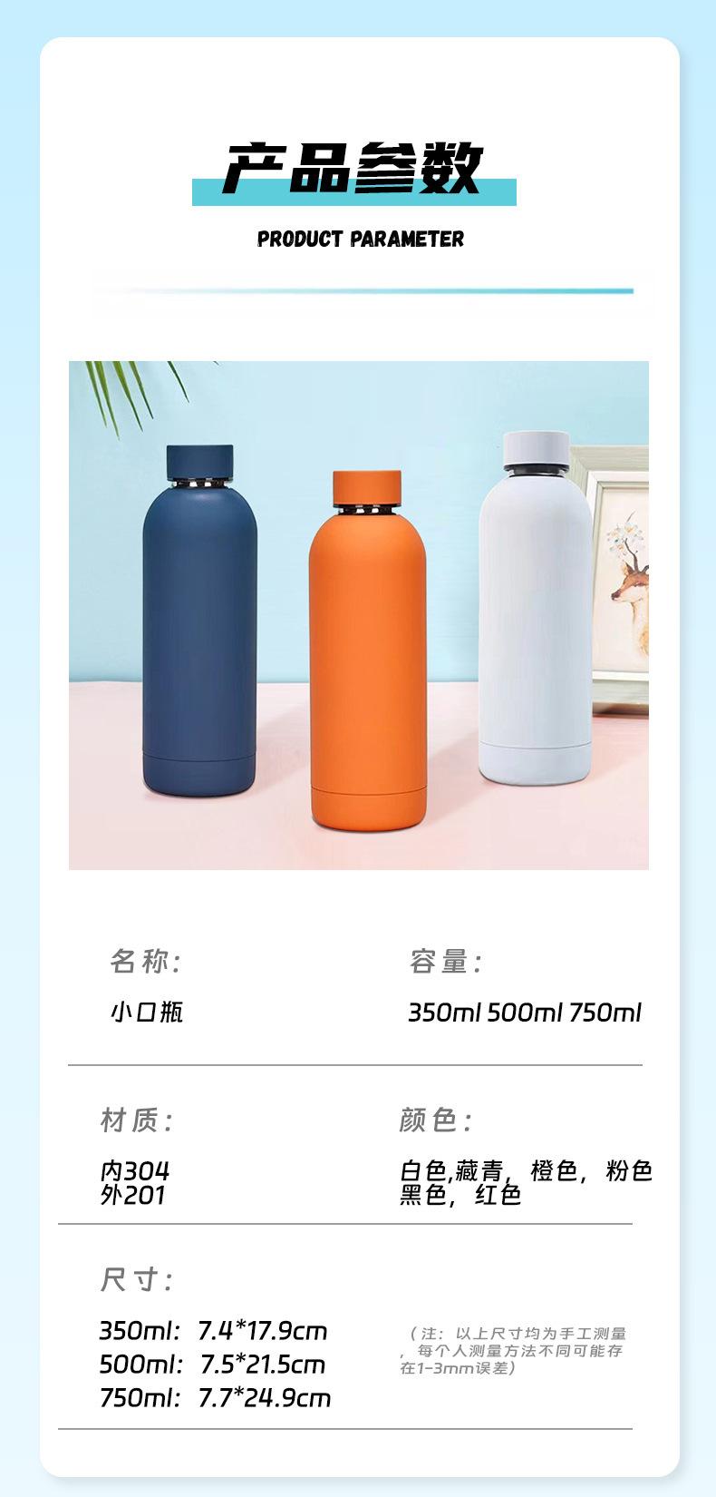 Acero Inoxidable 304 Botella de Boca Pequeña Vaso Termo Portátil para Beber Agua Deportes al Aire Libre Botella de Agua Estilo Simple Botella de Agua para Fitness