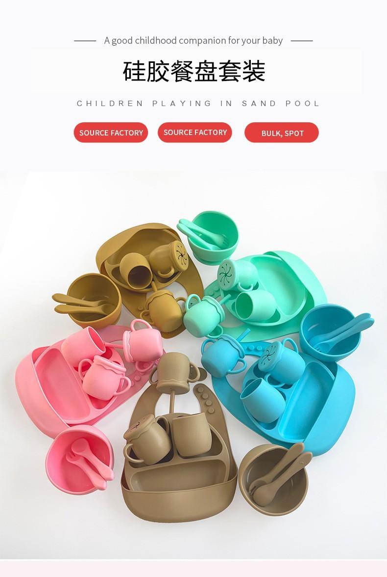 Nombre del producto: Plato infantil (con ventosa), tenedor y cuchara, babero, vaso de agua.
