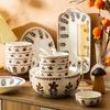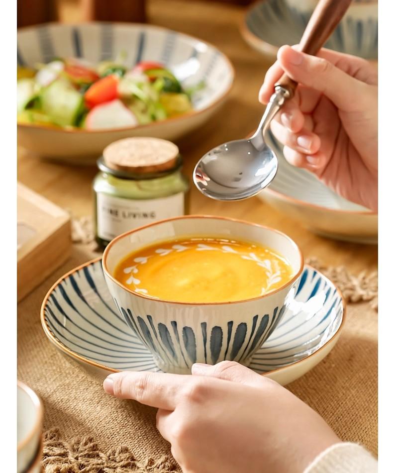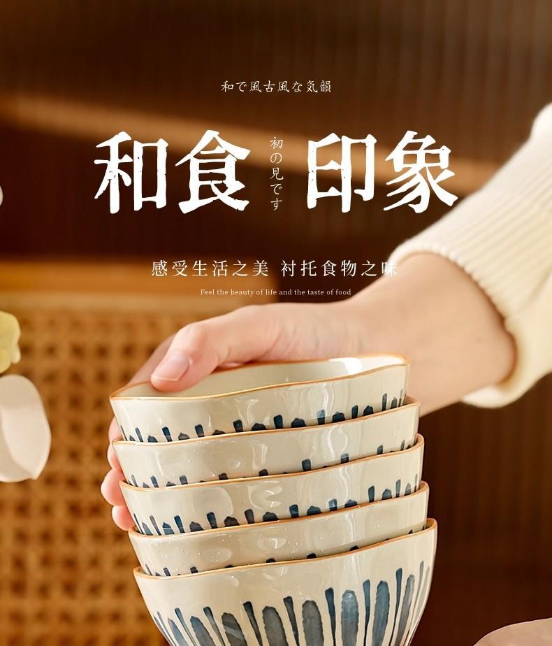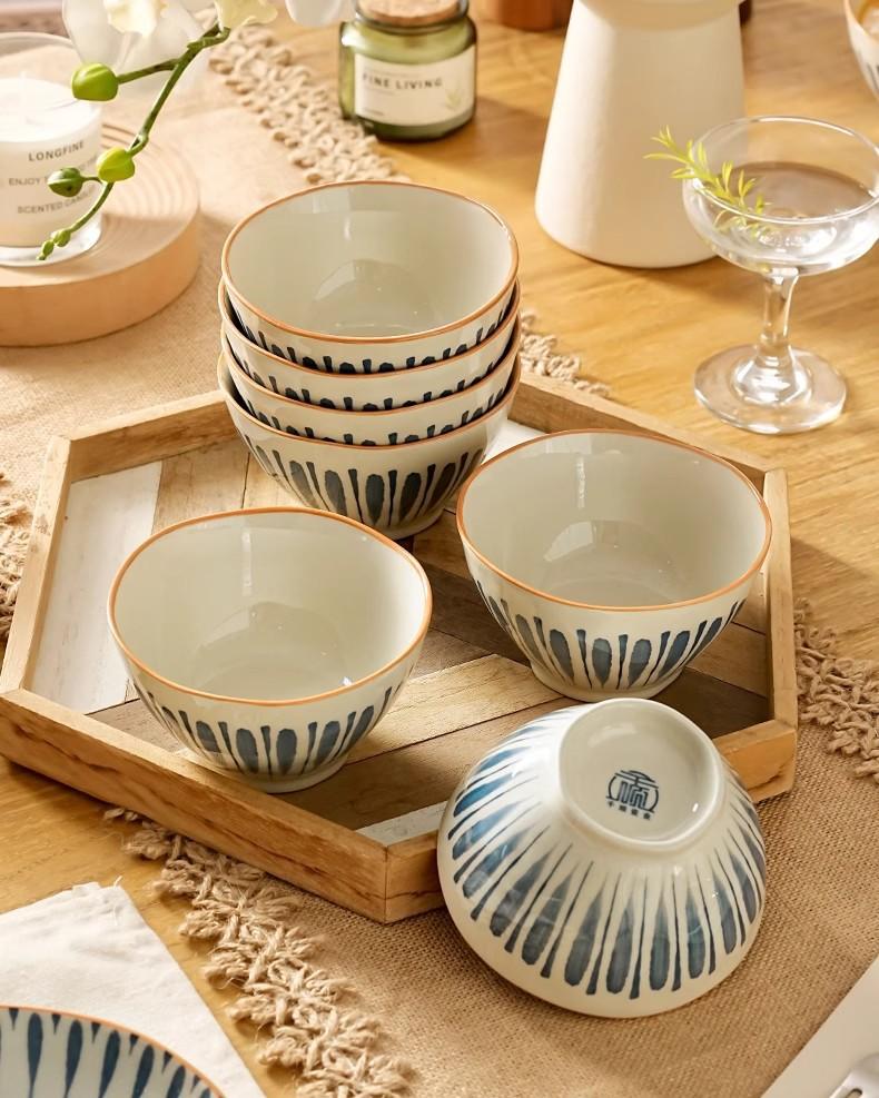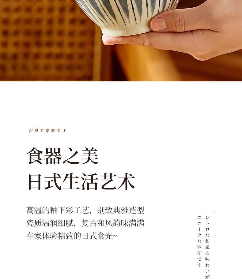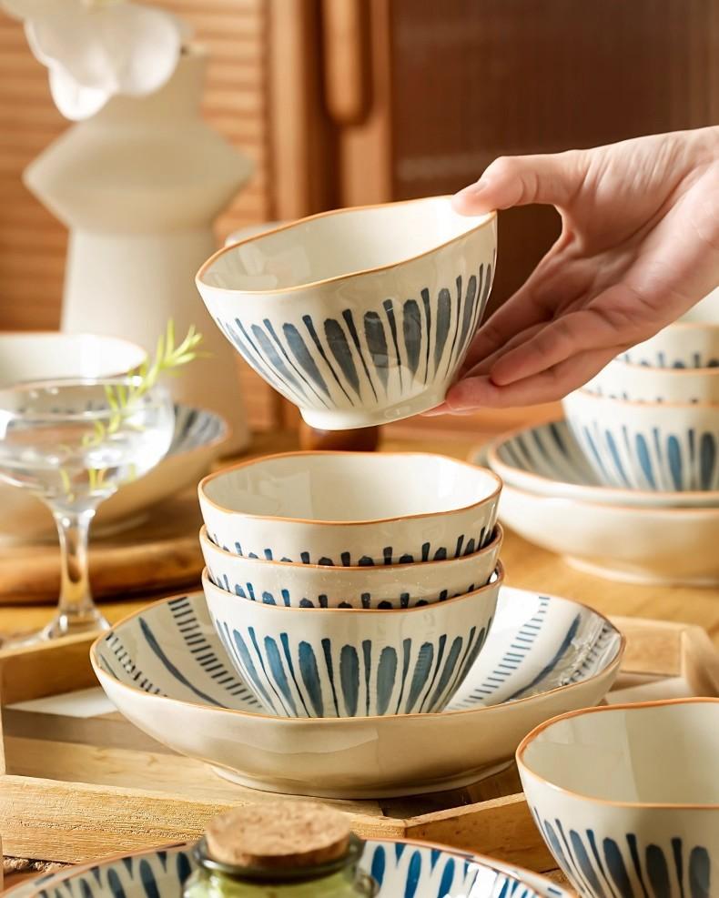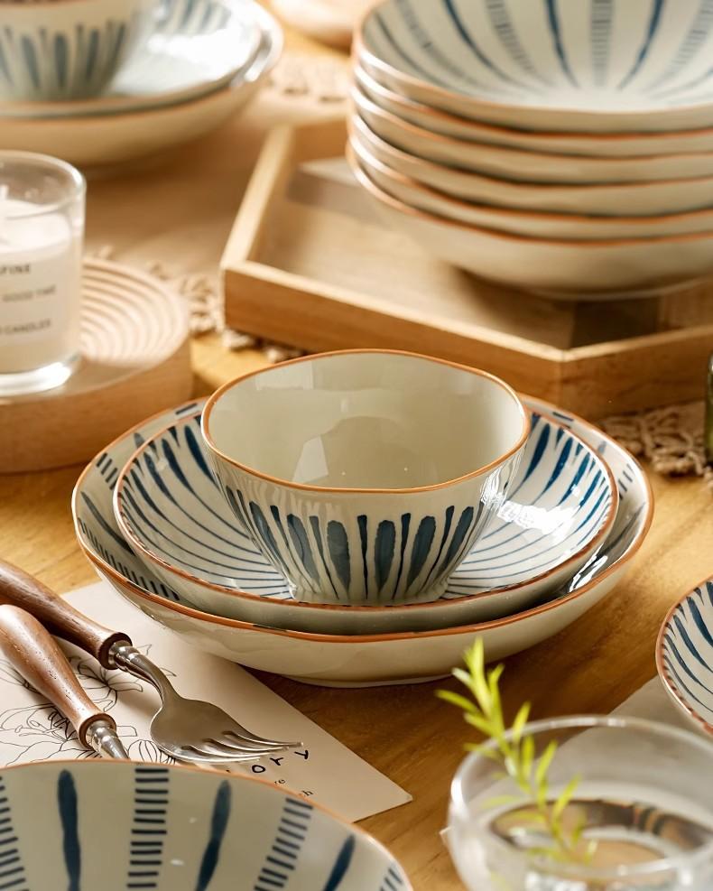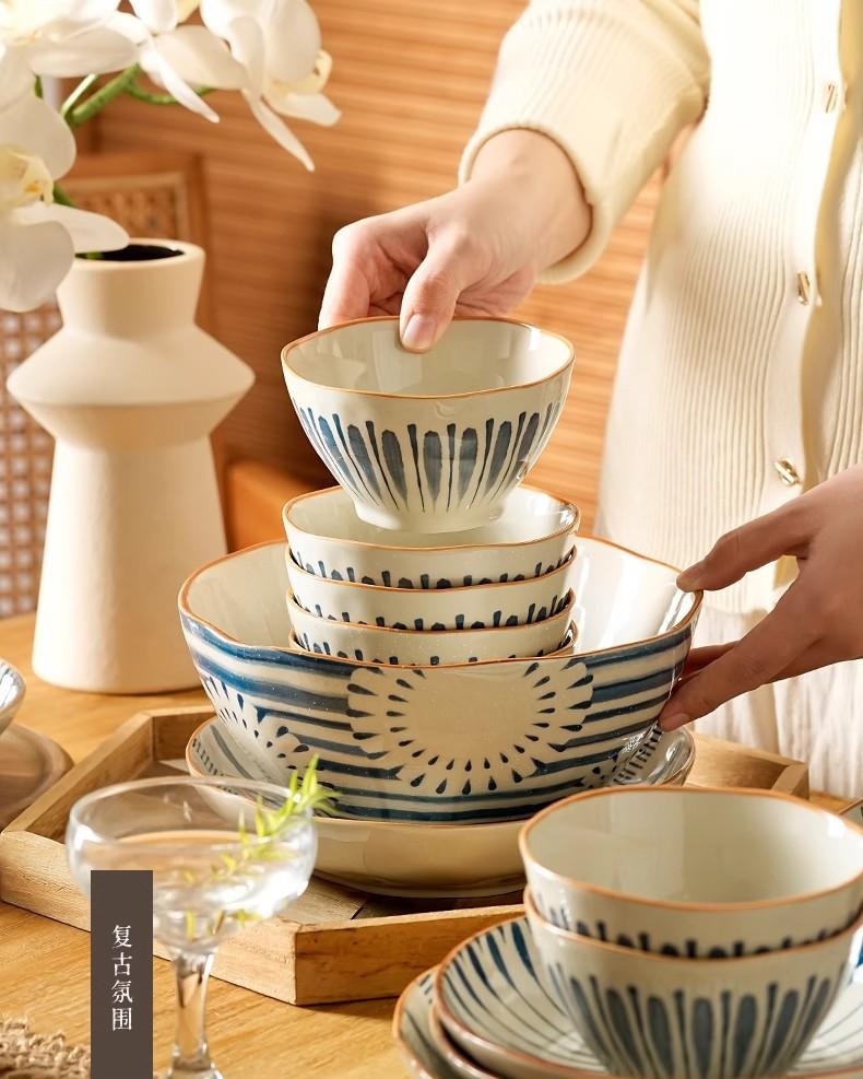 Set de Tazón y Plato de Cerámica Bajo Esmalte Japonés Tazón para Arroz Vajilla Personal Tazón para Fideos para el Hogar Tazón para Sopa Plato
